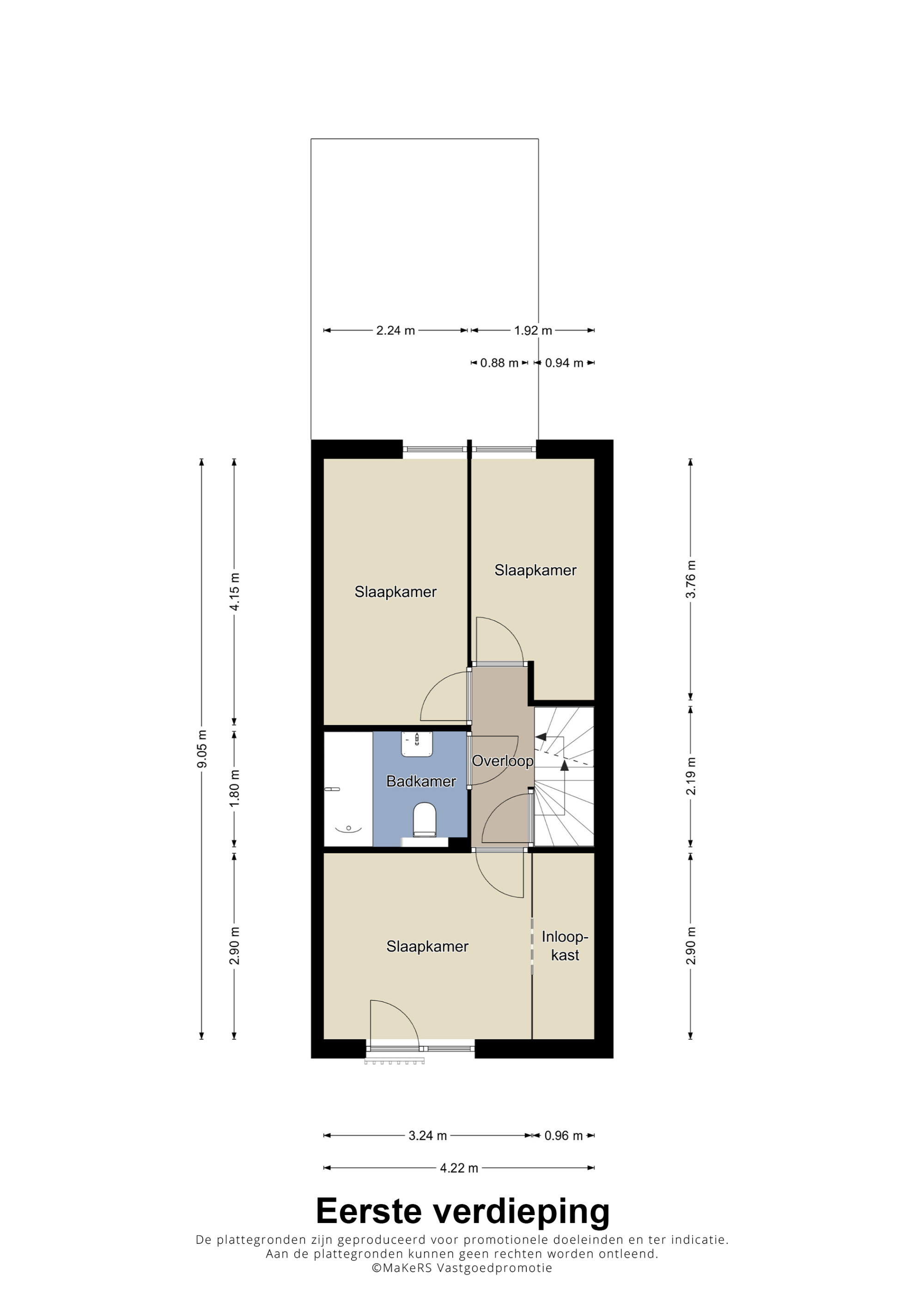Mogelijkheid tot het eenvoudig realiseren van een vierde slaapkamer.