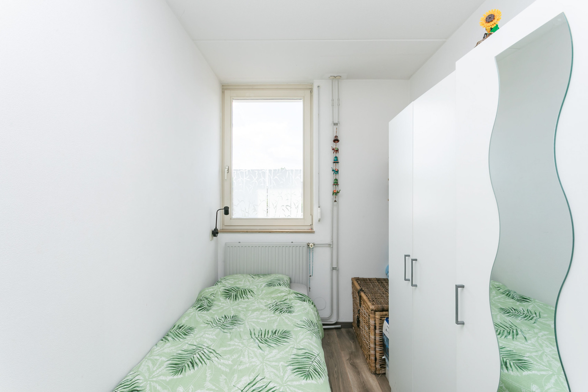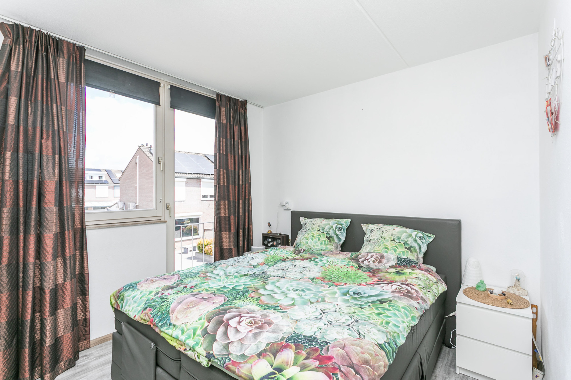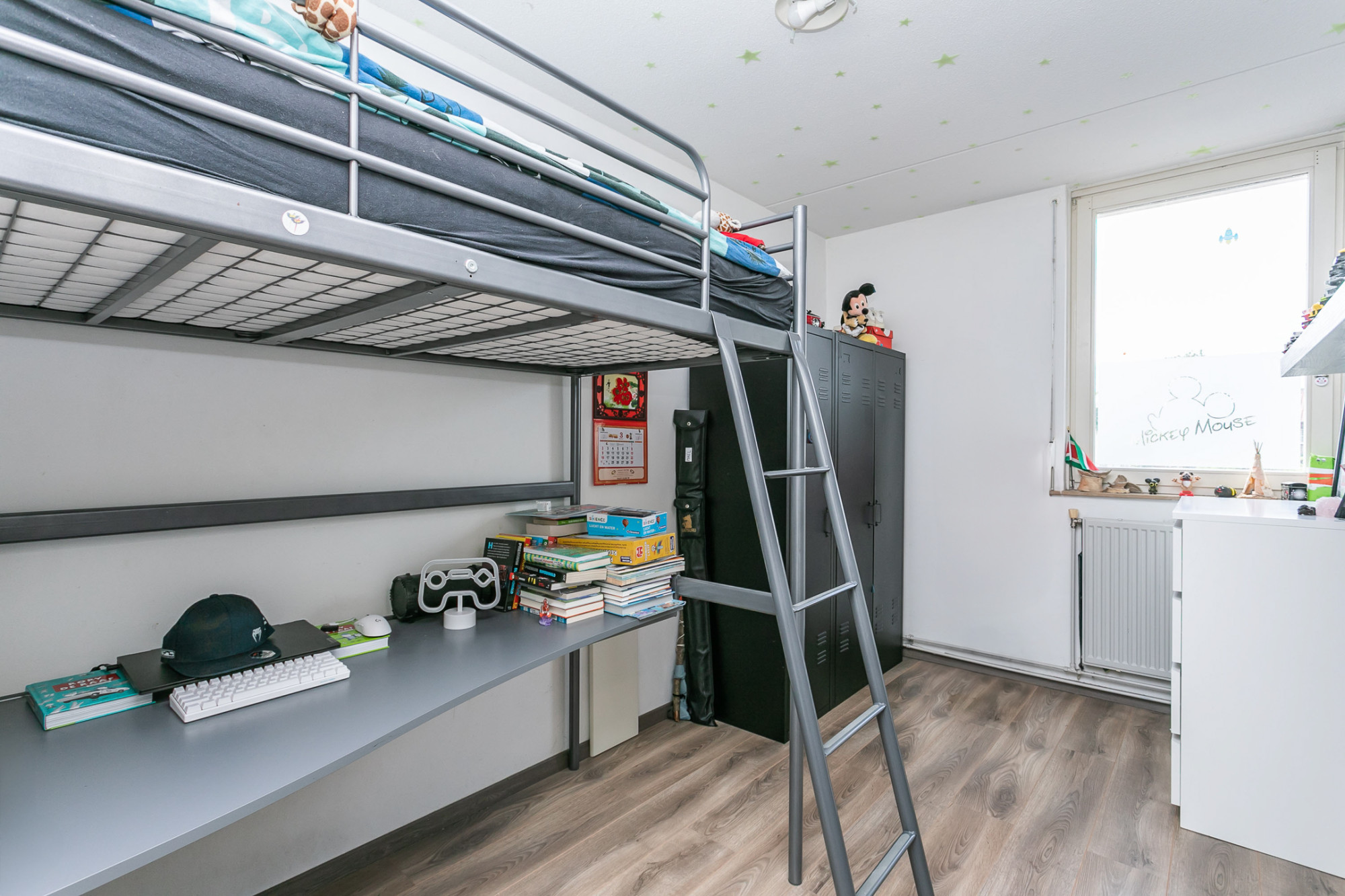 Een slaapkamer aan de linker achterzijde. De naastgelegen derde slaapkamer doet dienst als logeer-/kleedkamer. Beiden voorzien van een rolluik.