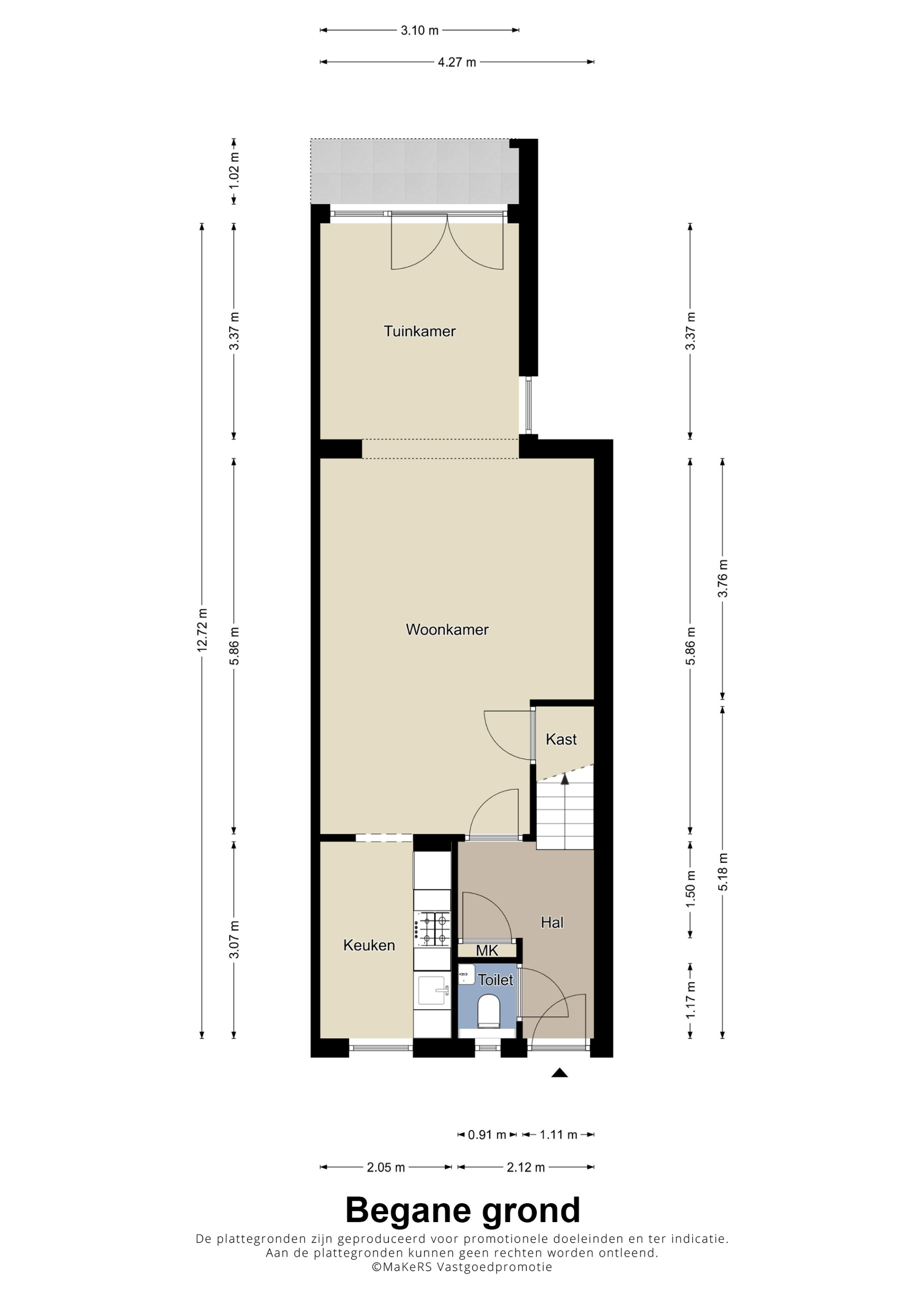 Alle door ons kantoor verstrekte informatie omtrent onroerende zaken, moet beschouwd worden als een uitnodiging om in onderhandeling te treden en is geheel vrijblijvend! Alle vermelde maten en afmetingen zijn slechts bij benadering. Een (eventueel) bijgevoegde plattegrond dient uitsluitend als globale indicatie/visualisatie. Aan deze beperkte informatie