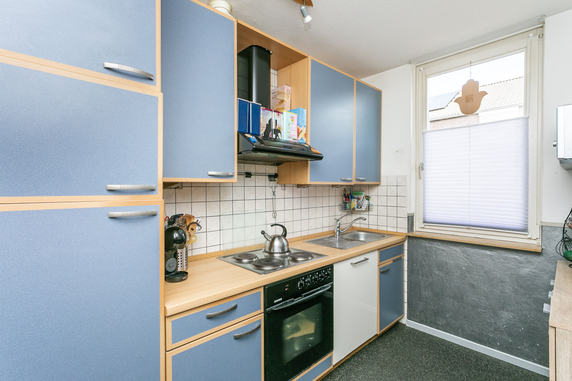 Aan de voorzijde bevindt zich de gesloten keuken, voorzien van een functionele inbouwkeuken. Het gastentoilet is gemoderniseerd en voorzien van een fonteintje.