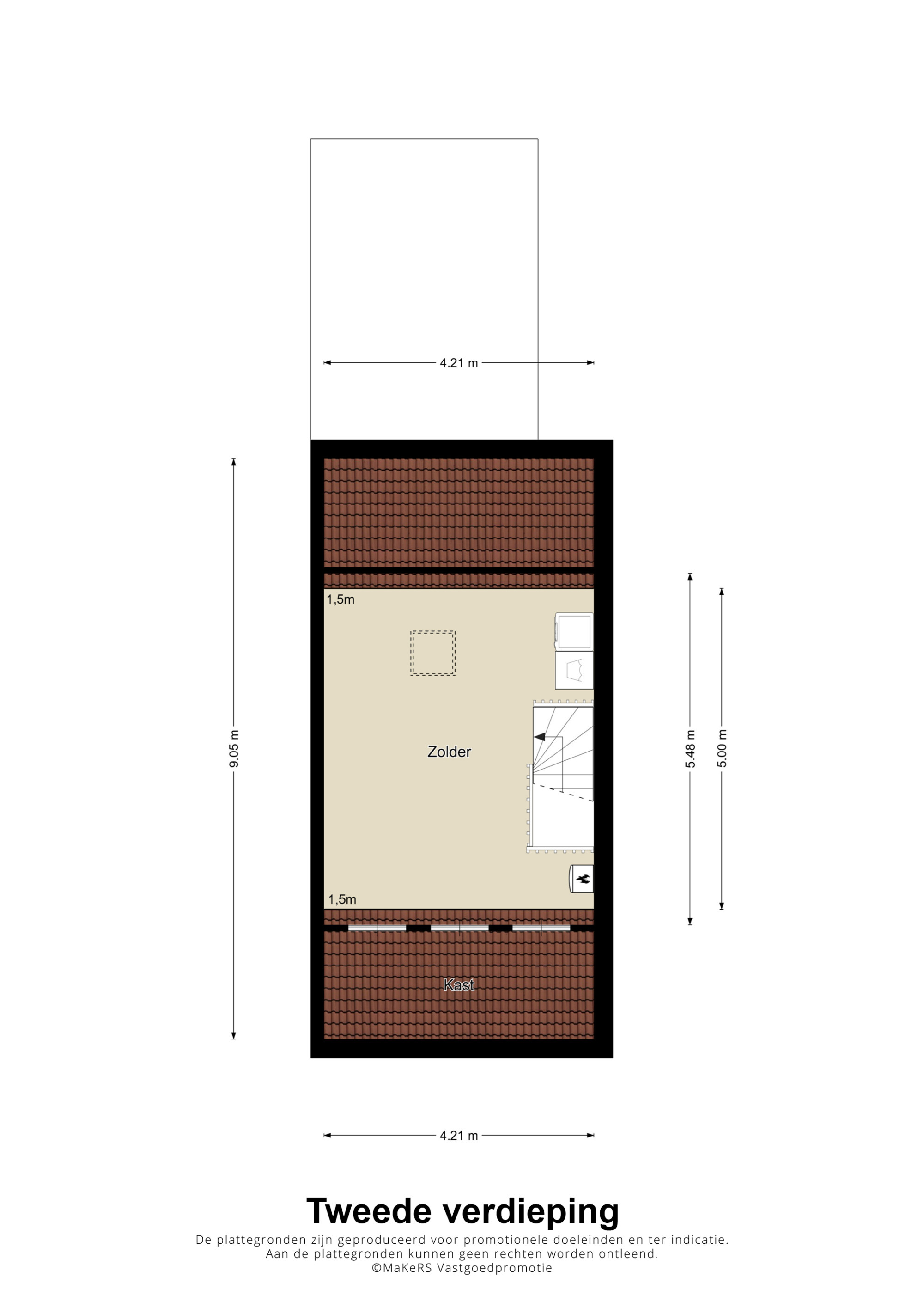Via een vaste trap is de zolderverdieping bereikbaar. Hier bevinden zich de witgoedaansluitingen en de ATAG CV-combiketel. Dankzij het dakraam is deze verdieping al goed bruikbaar en eenvoudig om te vormen tot een vierde slaapkamer.