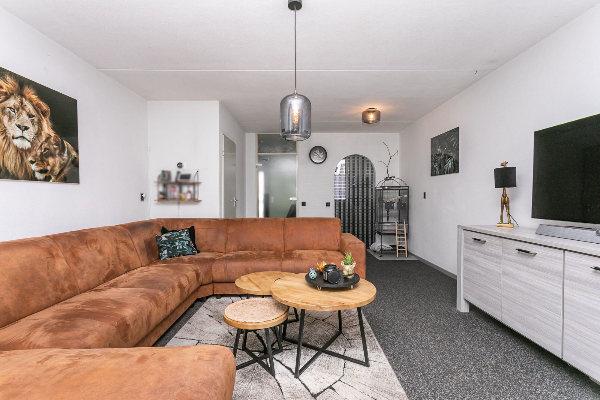 De woning beschikt over een ruime woonkamer met centraal geplaatste zithoek en voorzieningen voor audio-/visuele apparatuur.