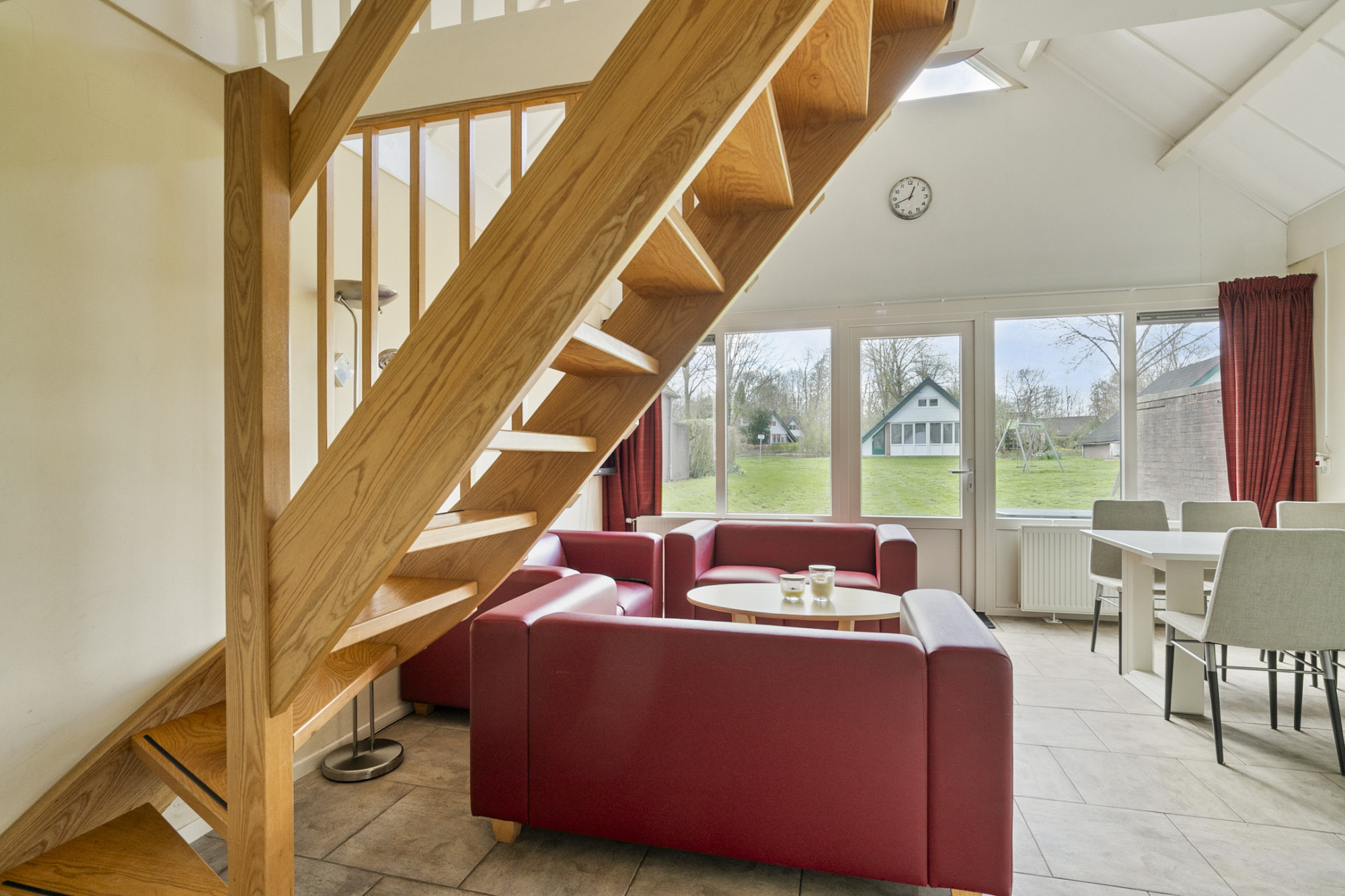 -woonkamer met directe toegang tot het terras aan de achterzijde van de woning.