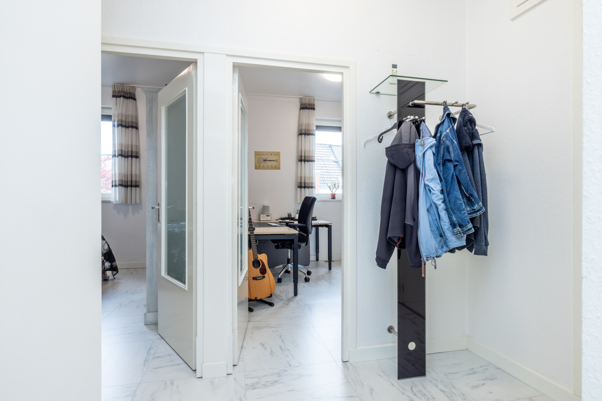 Vanuit de hal is er ook een vaste trap naar de ruime souterrain.