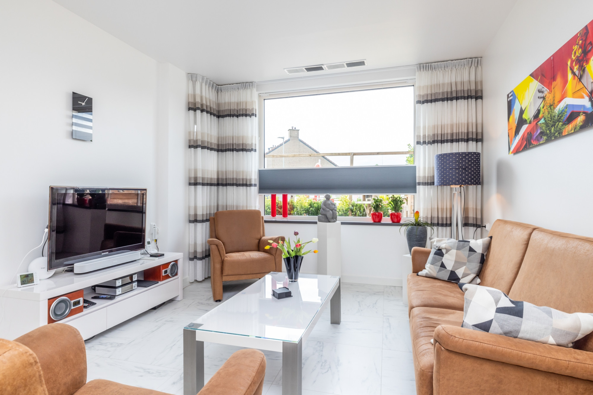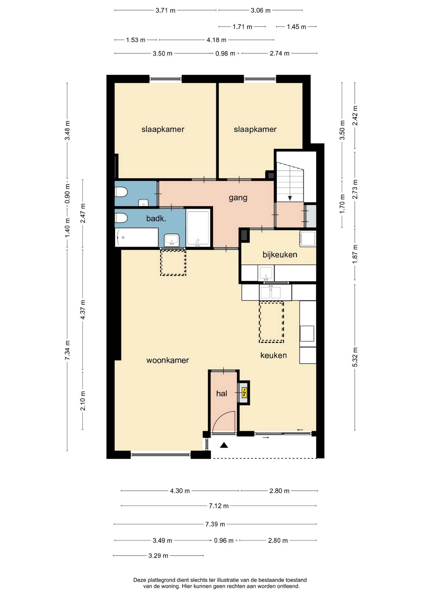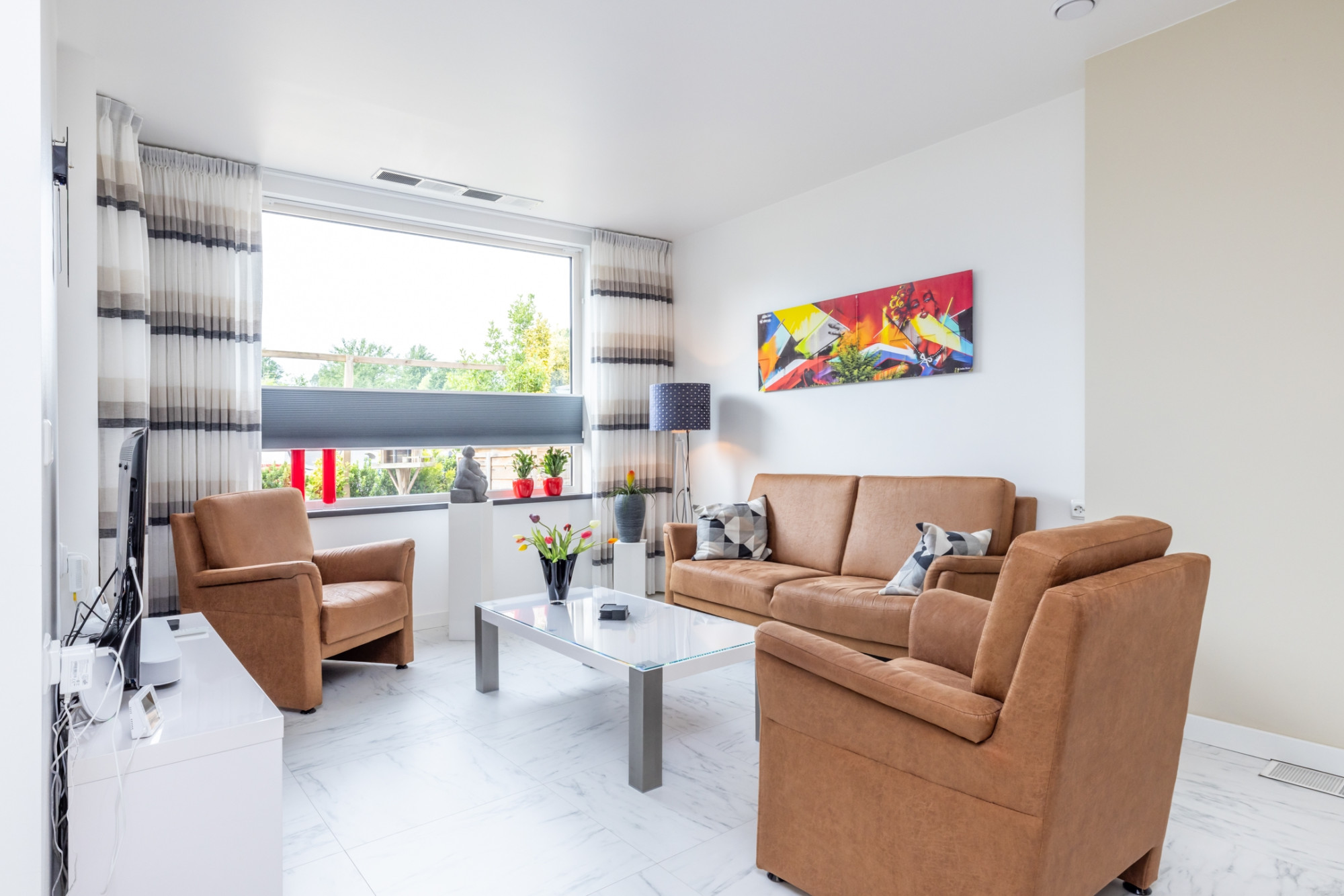 Entree/hal, toegang tot straat door middel van enkele deur. Deze ruimte heeft een meterkast. Ruime lichte woonkamer met een gelegen open moderne luxe keuken, voorzien van diverse inbouwapparatuur, met o.a. inductie kookplaat, koel vriescombinatie, afzuigkap en vaatwasser, voorzien van lichtkoepel. Via de tussenhal kom je in de overige gelegen ruimten terecht waaronder: de ruime bijkeuken, 2 slaapkamers en de moderne luxe badkamer, voorzien van inloopdouche, ligbad, staand toilet en wastafelmeubel. Hiernaast is nog een separate moderne toiletruimte, voorzien van staand toilet en fonteintje.