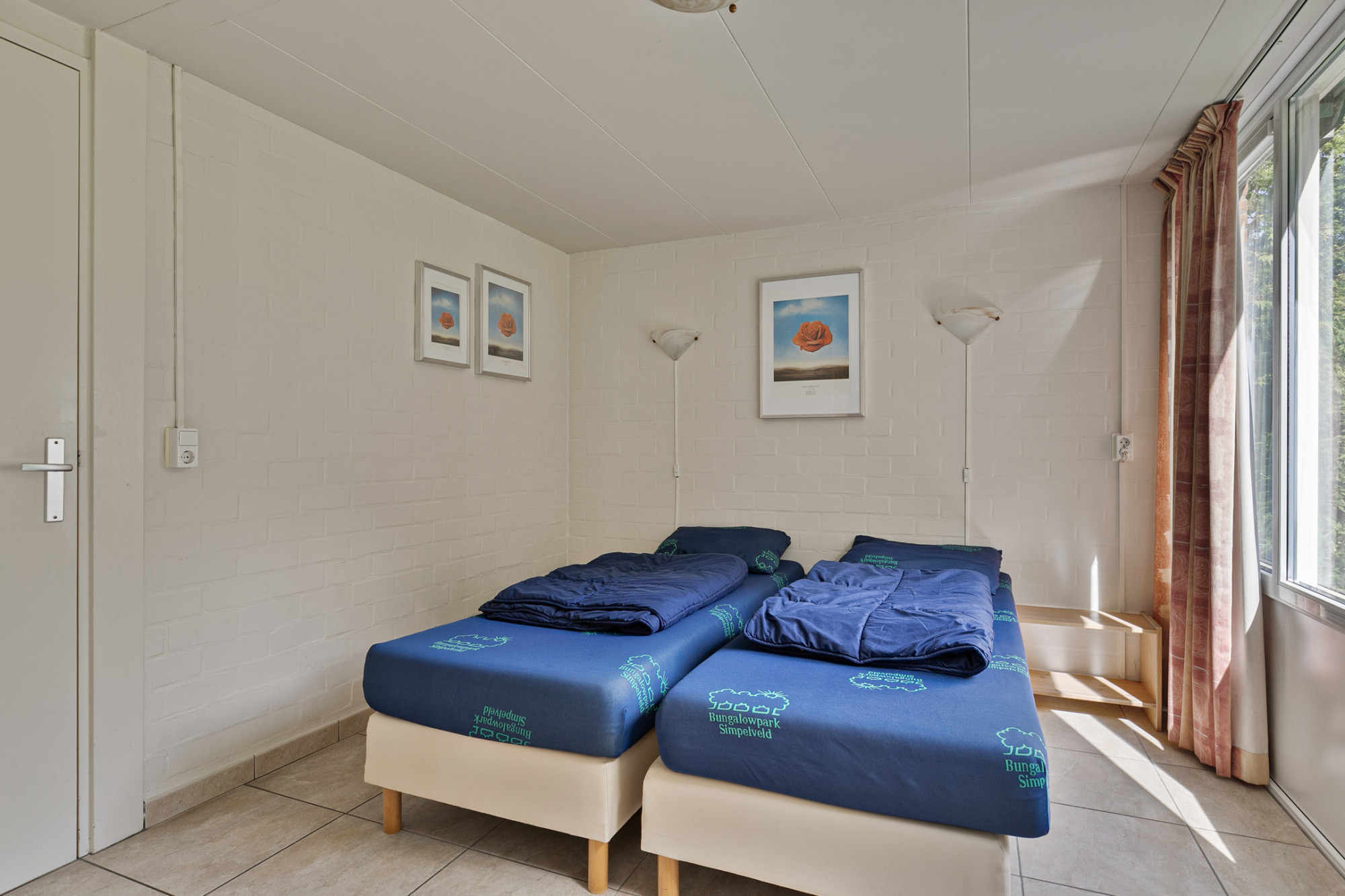 - Een slaapkamer met 2 eenpersoonsbedden en opbergkast.