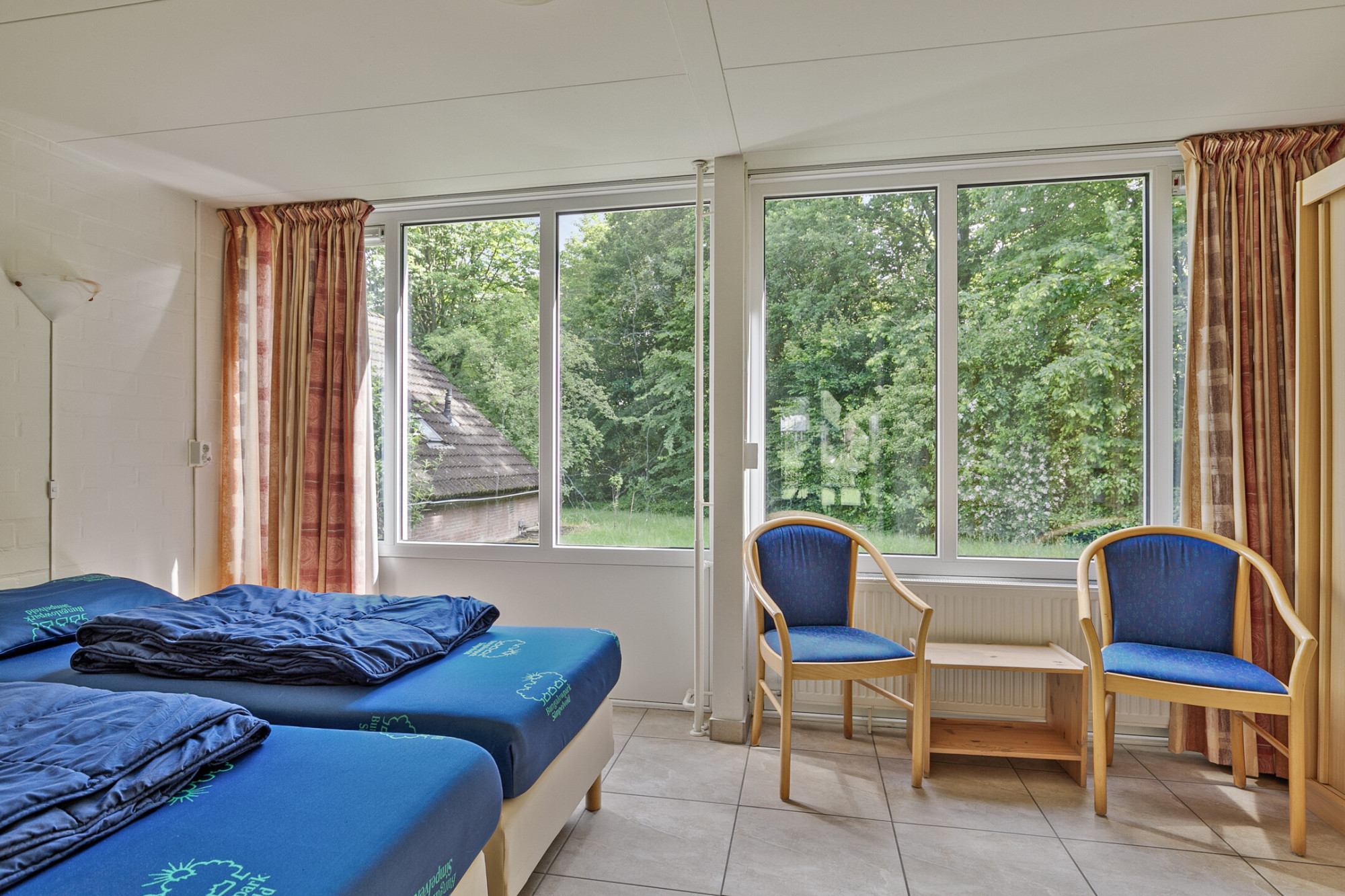- een grote ruime slaapkamer op de begane grond met 2 persoonsbed.