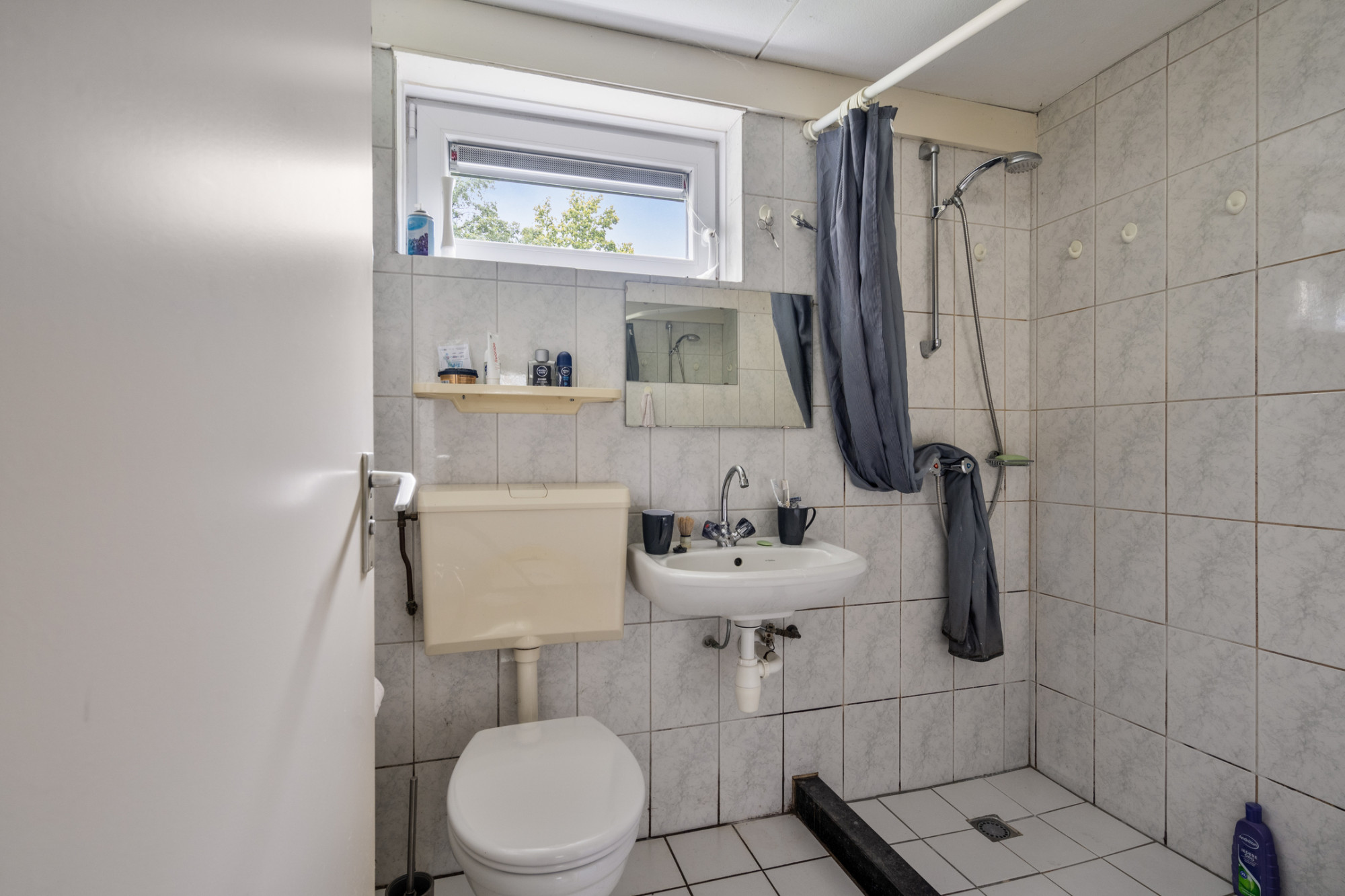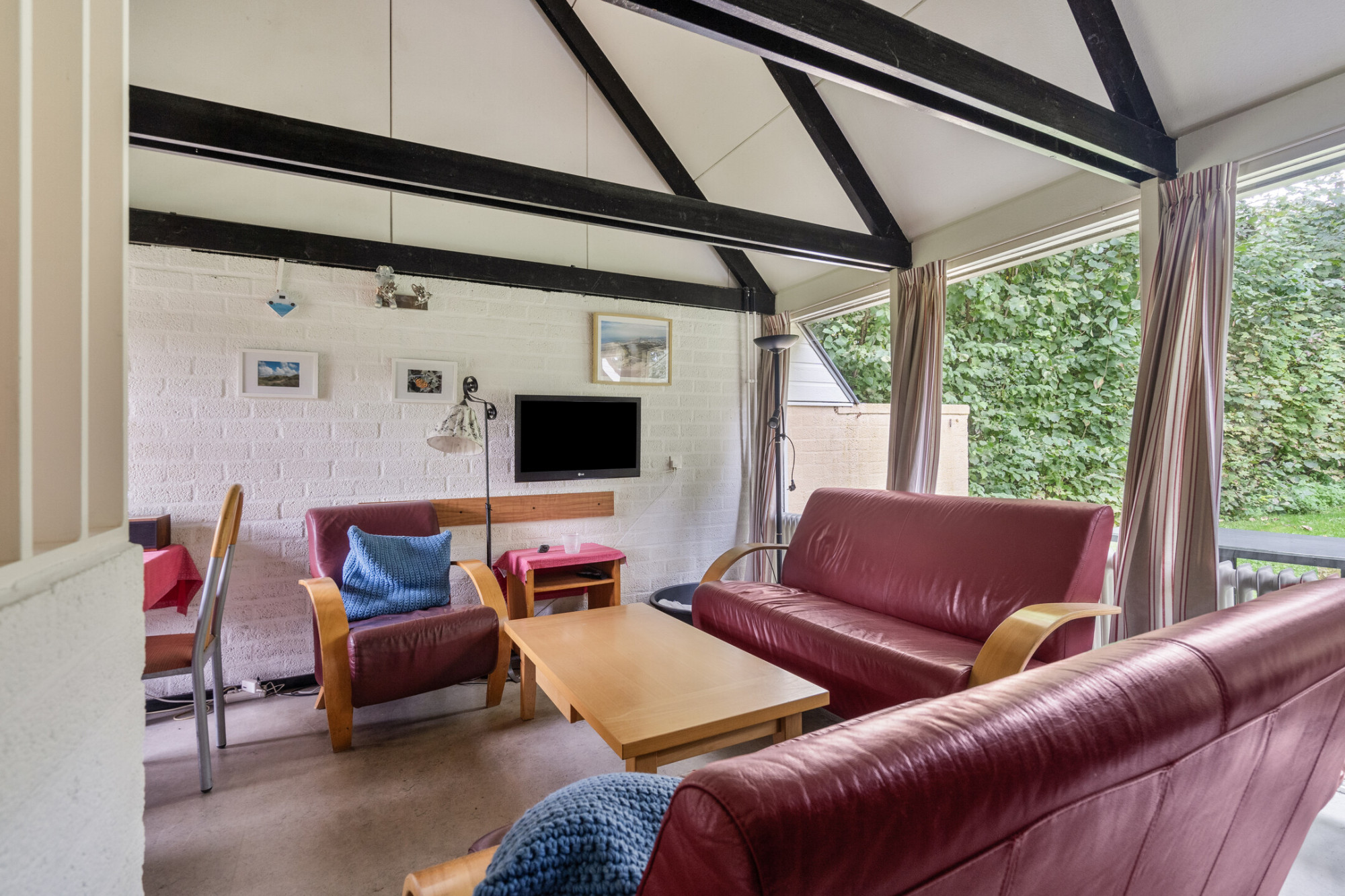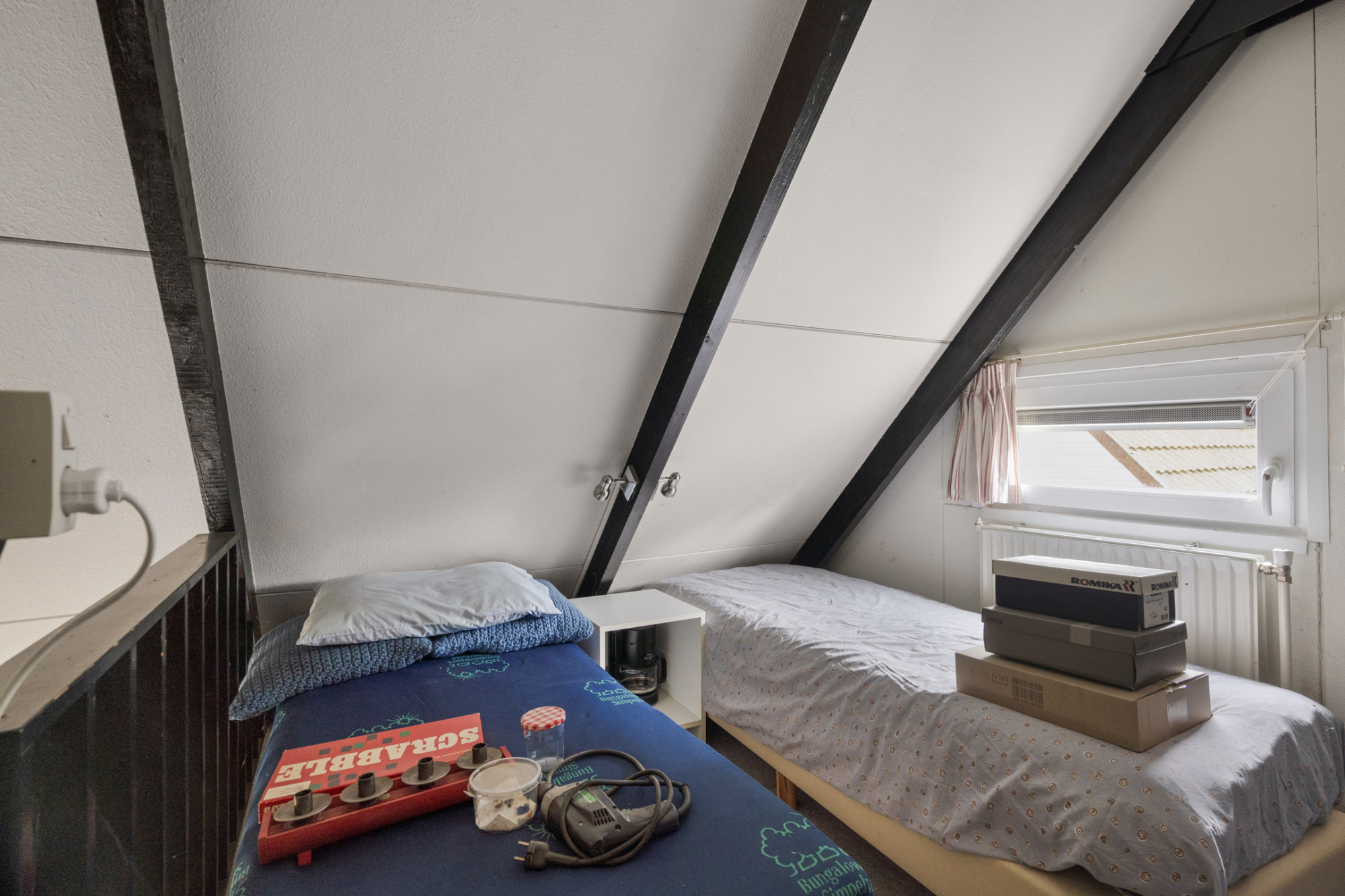 Vanuit de woonkamer heeft men zicht op het terras en de tuin, het terras is gelegen op het zuiden. Op de begane grond zijn 2 tweepersoons slaapkamers met aangrenzend de badkamer met o.a. douche, vaste wastafel en het toilet.