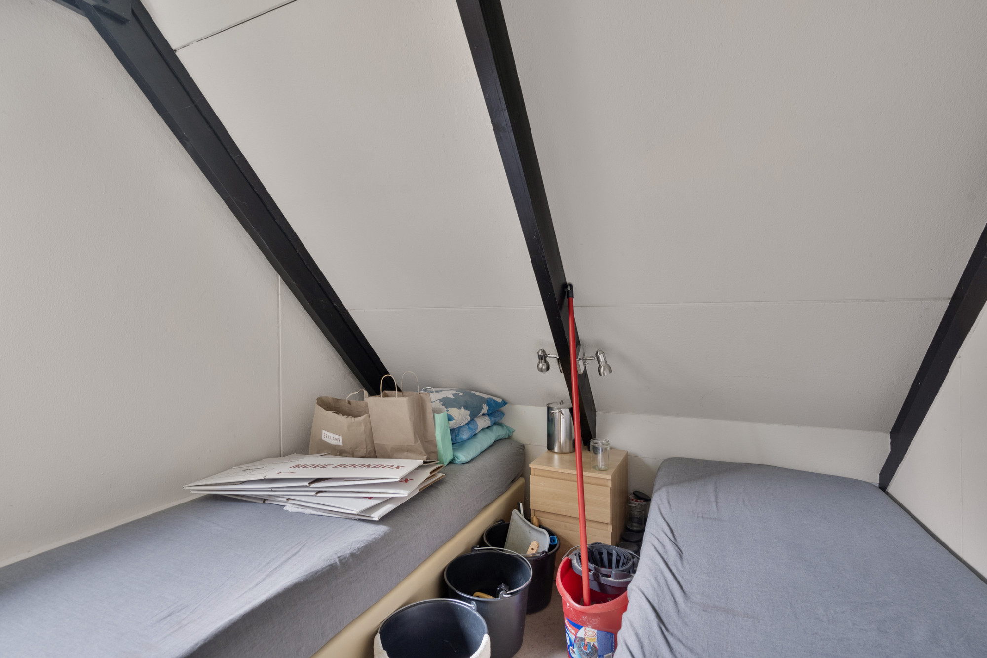 Op de eerste verdieping die te bereiken is via de nieuwe open trap in de woonkamer komt men op de overloop met een open ruime en daar bevinden zich nog een tweepersoonsslaapkamer.