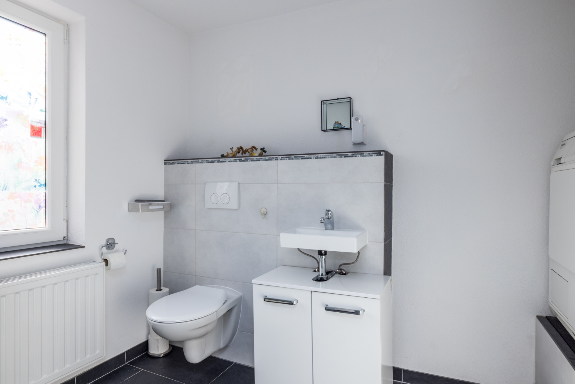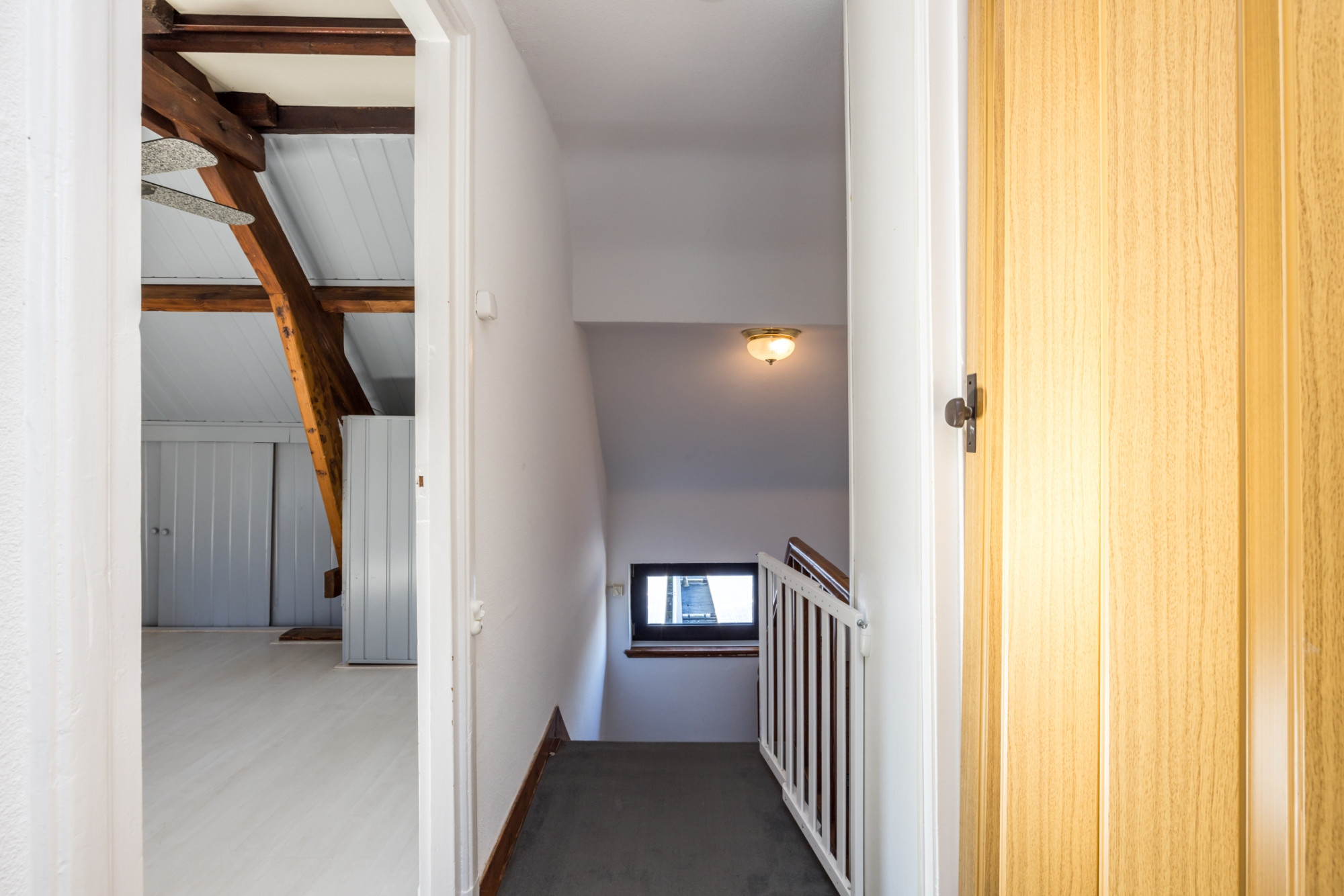 Overloop met toegang tot de 3 slaapkamers en separaat toilet met fonteintje.