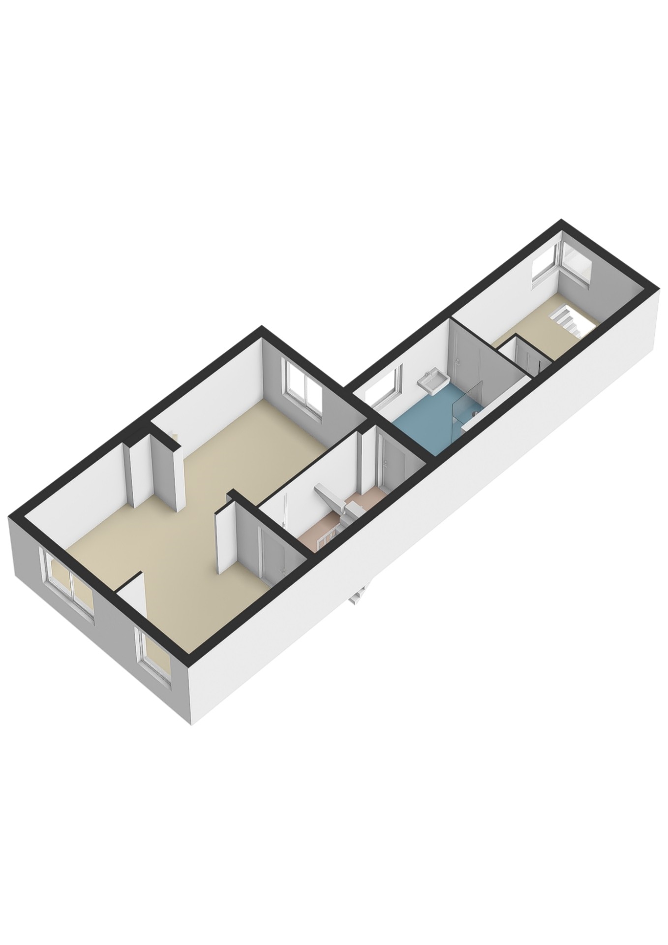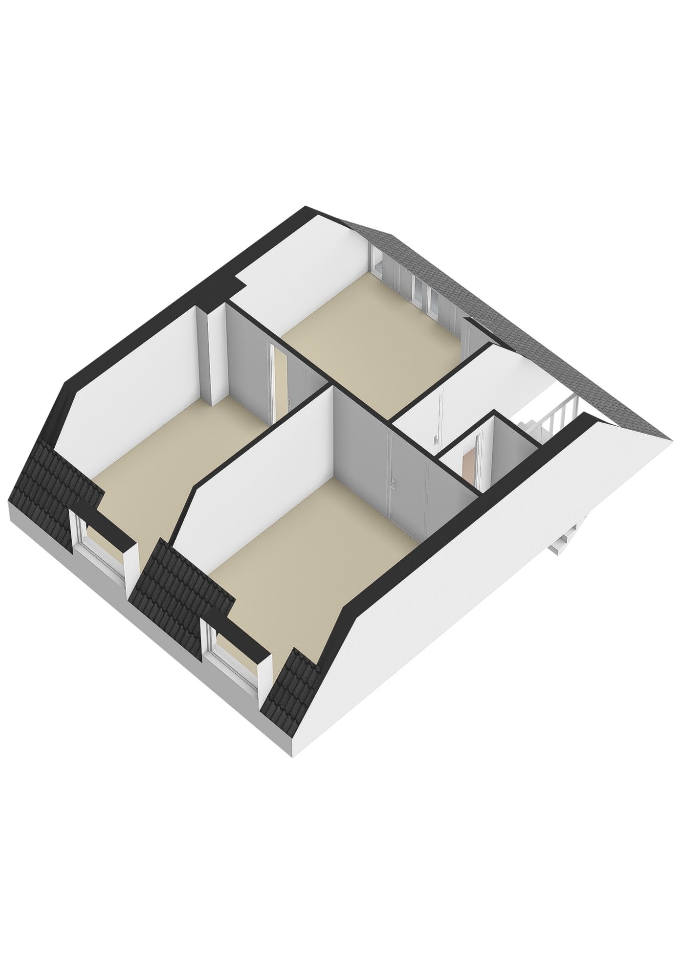 Overloop met toegang tot de 2/3 ruime slaapkamers en de betegelde badkamer welke is voorzien van een inloopdouche, hangcloset en wastafel. Achter de badkamer is een extra slaapkamer gelegen welke ook gebruikt kan worden als hobby ruimte of kantoor aan huis. Vanuit deze slaapkamer is de begaande grond met een vaste trap te bereiken. Deze leidt naar de tuinkamer.