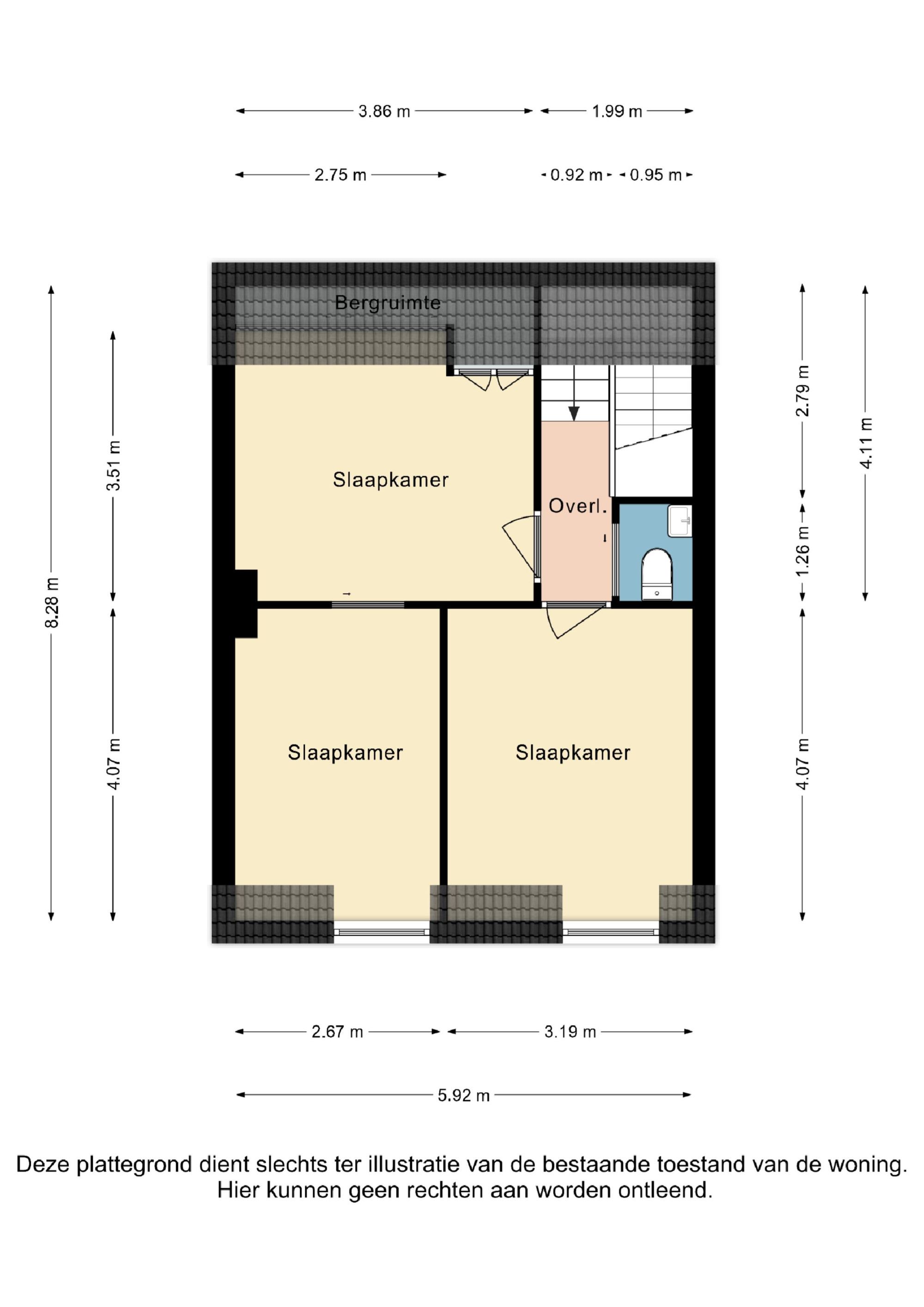 Via vlizo trap bereikbare ruime bergzolder.