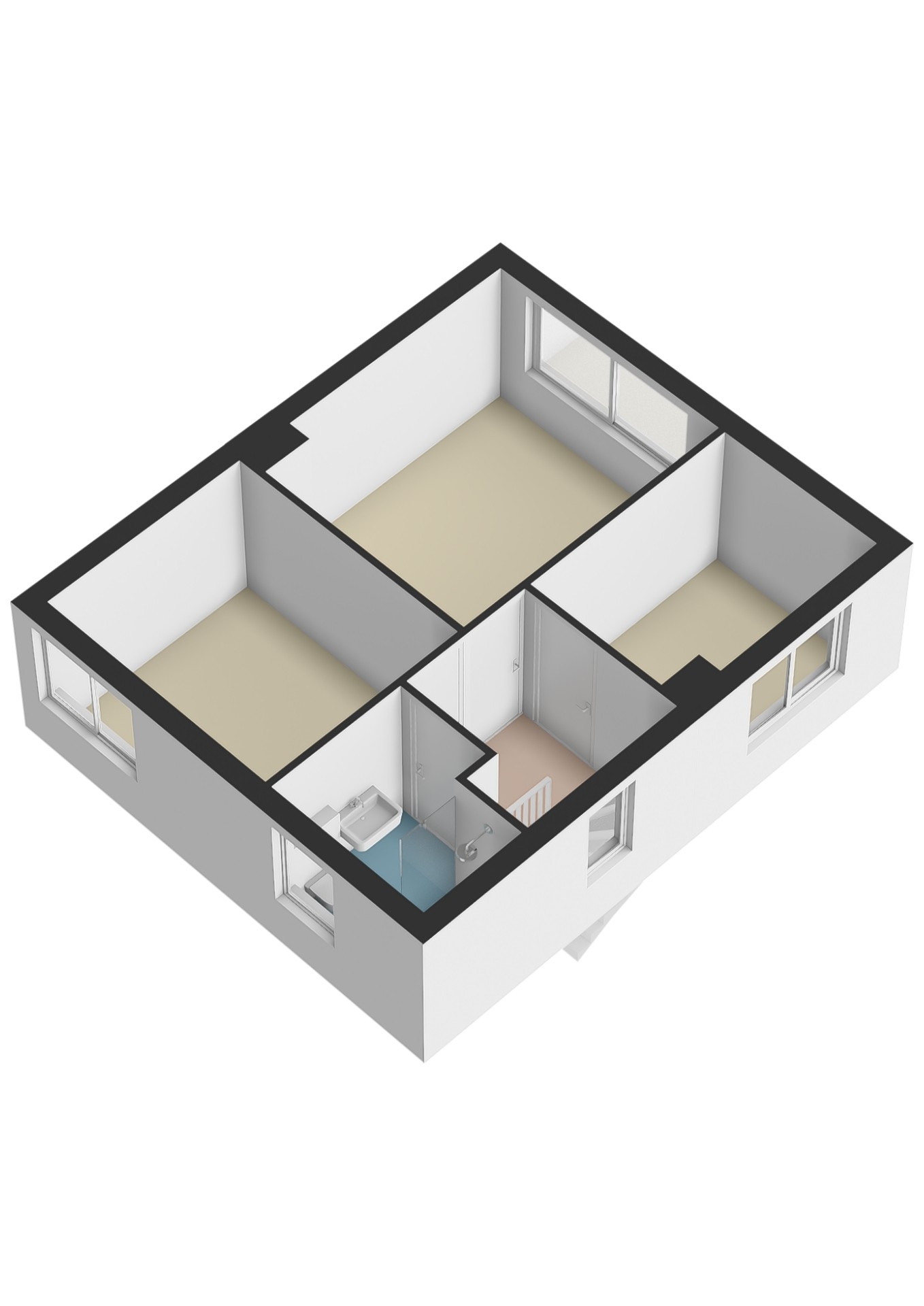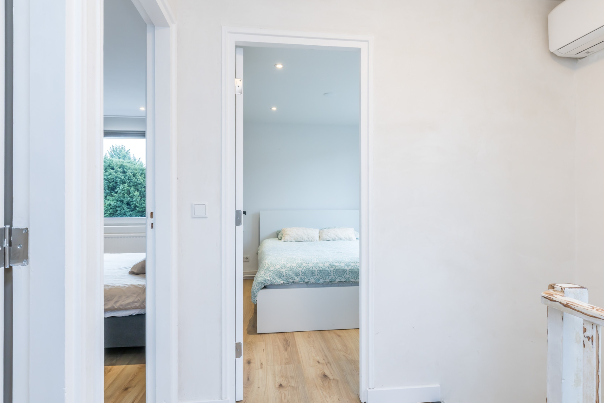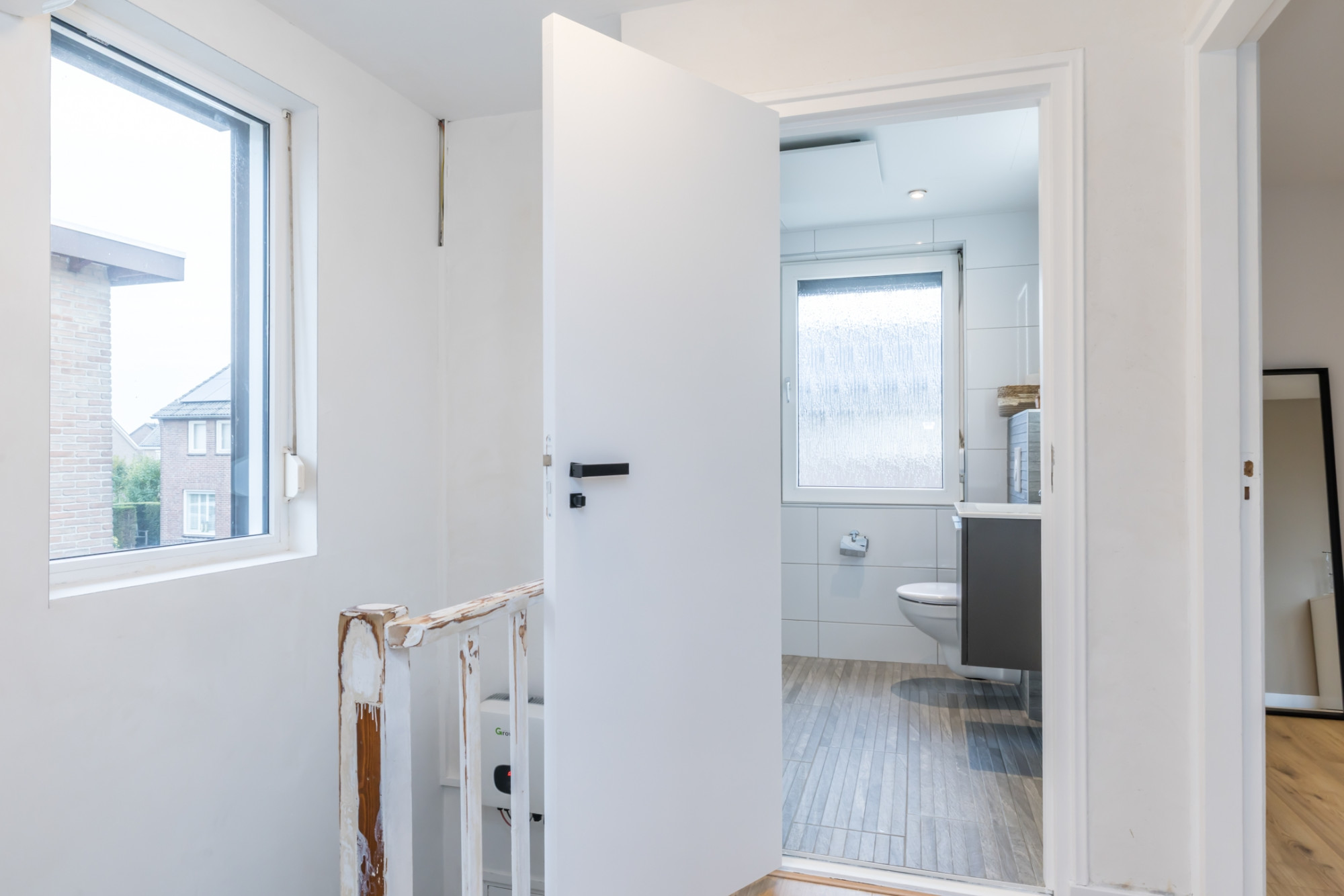 Overloop welke toegang geeft tot de 3 ruime slaapkamers en de betegelde badkamer welke voorzien is van inloopdouche, wastafel en een 2e toilet.