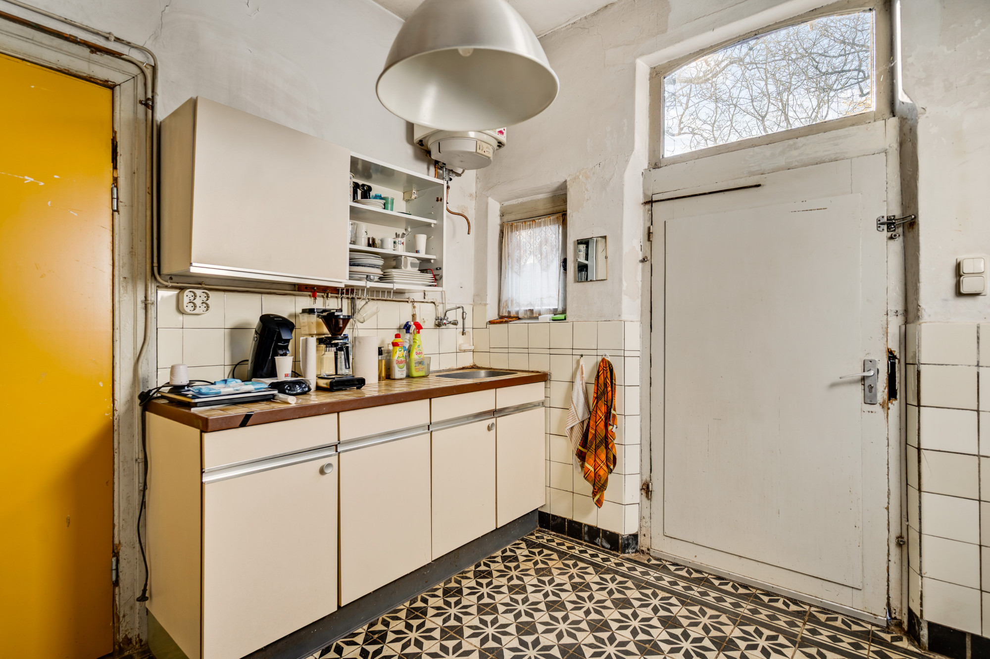 Kozijnen zijn uitgevoerd in hout met enkel glas. Warmwatervoorziening middels een elektrische boiler (Daalderop, type: 07.04.38.245).