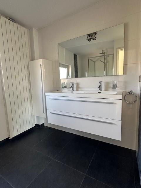 - Nieuwe, volledig betegelde badkamer met dubbele wastafel, spiegels, hoogglans badmeubel, douche, tweede toilet en designradiator.