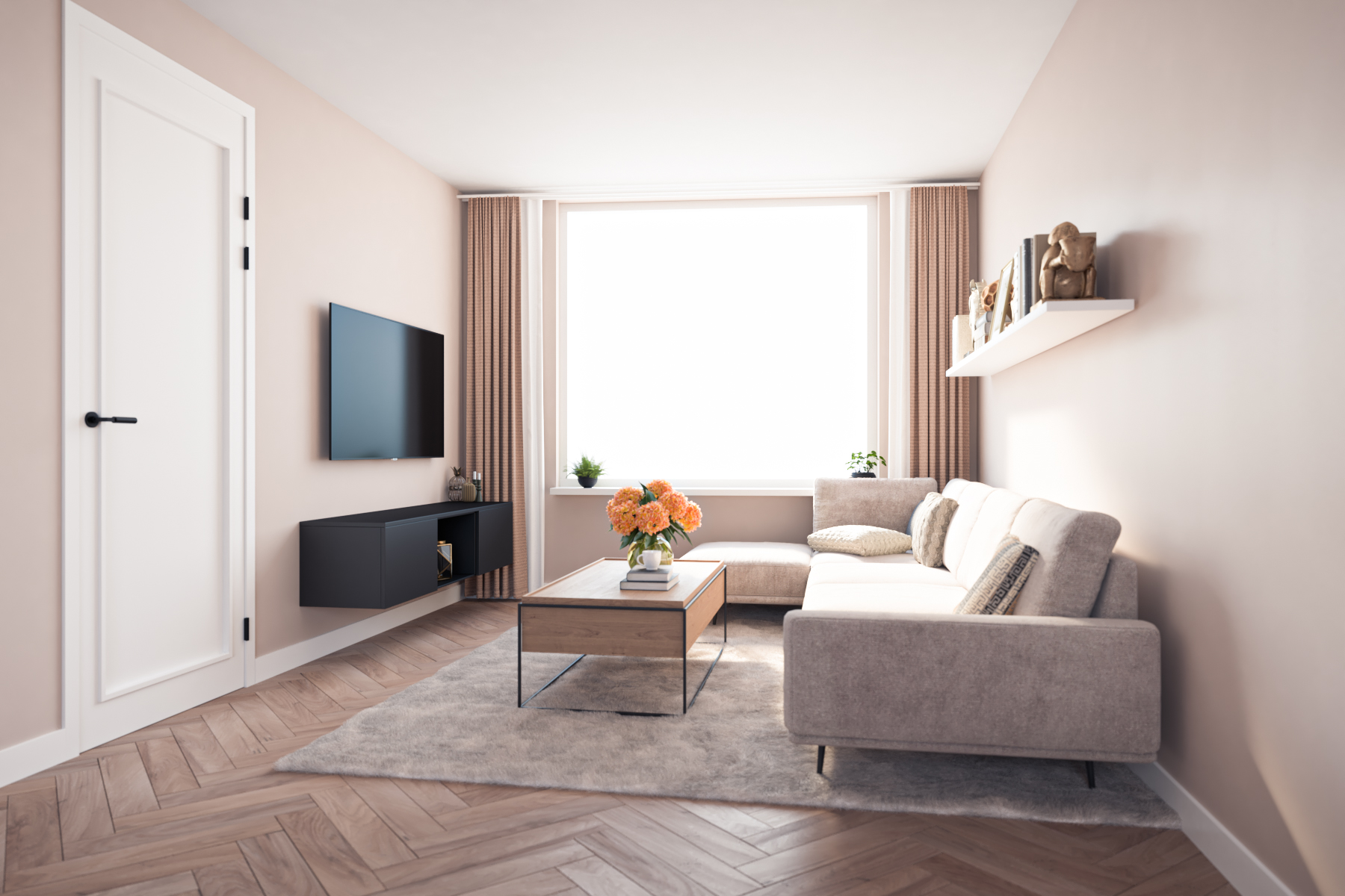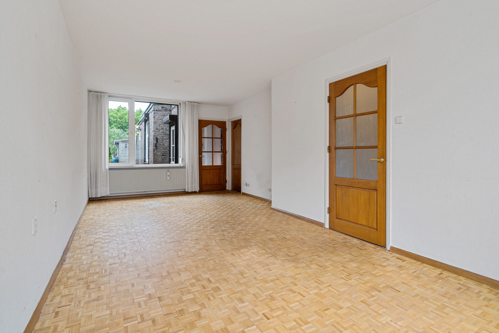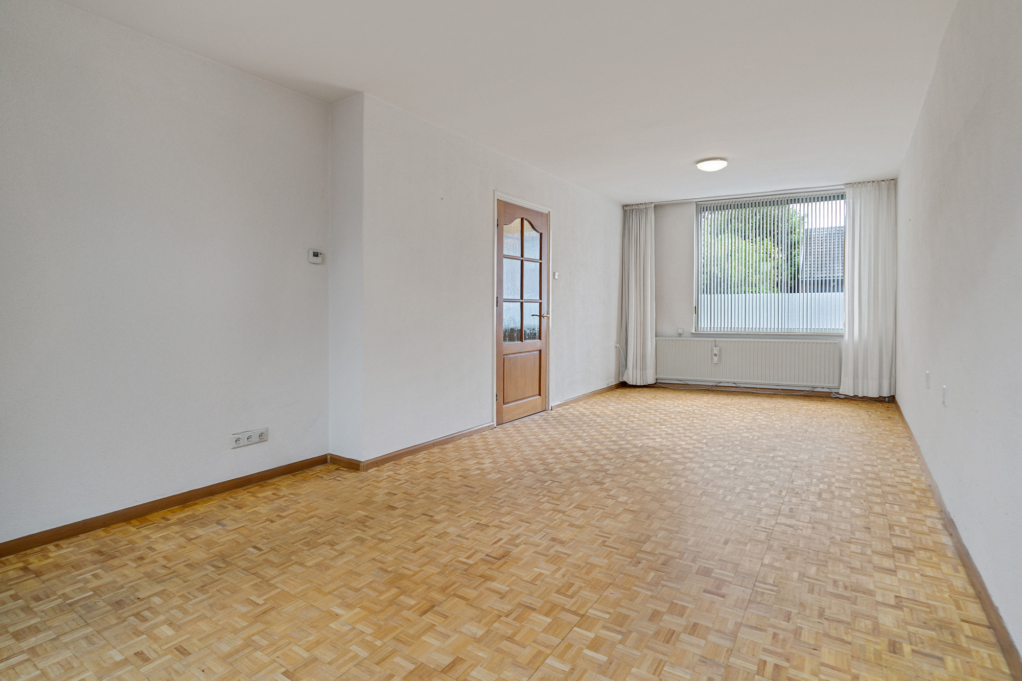 De woonkamer is voorzien van een raam aan de voorzijde met elektrisch rolluik; alle overige ramen in de woning zijn uitgerust met handbediende rolluiken. Vanuit de woonkamer heb je toegang tot de deur naar het souterrain en een deur naar de keuken.