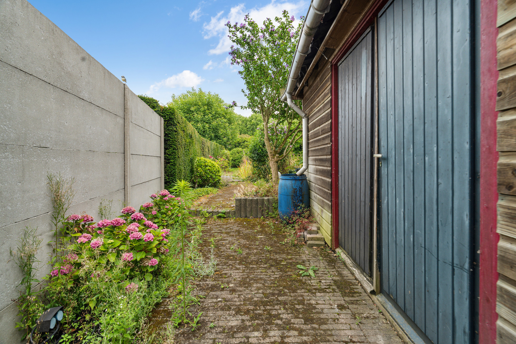 De lange achtertuin is deels betegeld en biedt daarnaast veel groen – een ideale combinatie van speelruimte, zonplek en natuurlijke sfeer. Je vindt hier twee ruime bergingen, ideaal voor fietsen, gereedschap of tuinspullen. Dankzij de diepte van het perceel geniet je hier van rust, privacy en volop mogelijkheden om de tuin naar eigen wens in te richten.