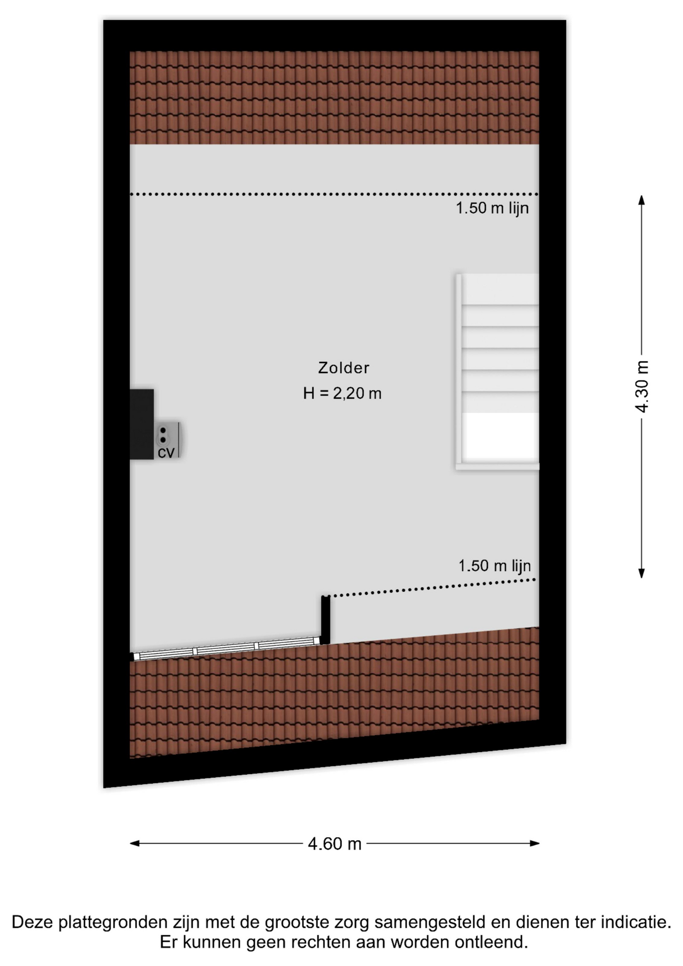 De zolderverdieping is bereikbaar via een vaste trap en biedt volop mogelijkheden. Hier bevindt zich ook de CV-ketel (AWB). Deze ruimte is perfect als bergzolder, extra slaapkamer of werkkamer.