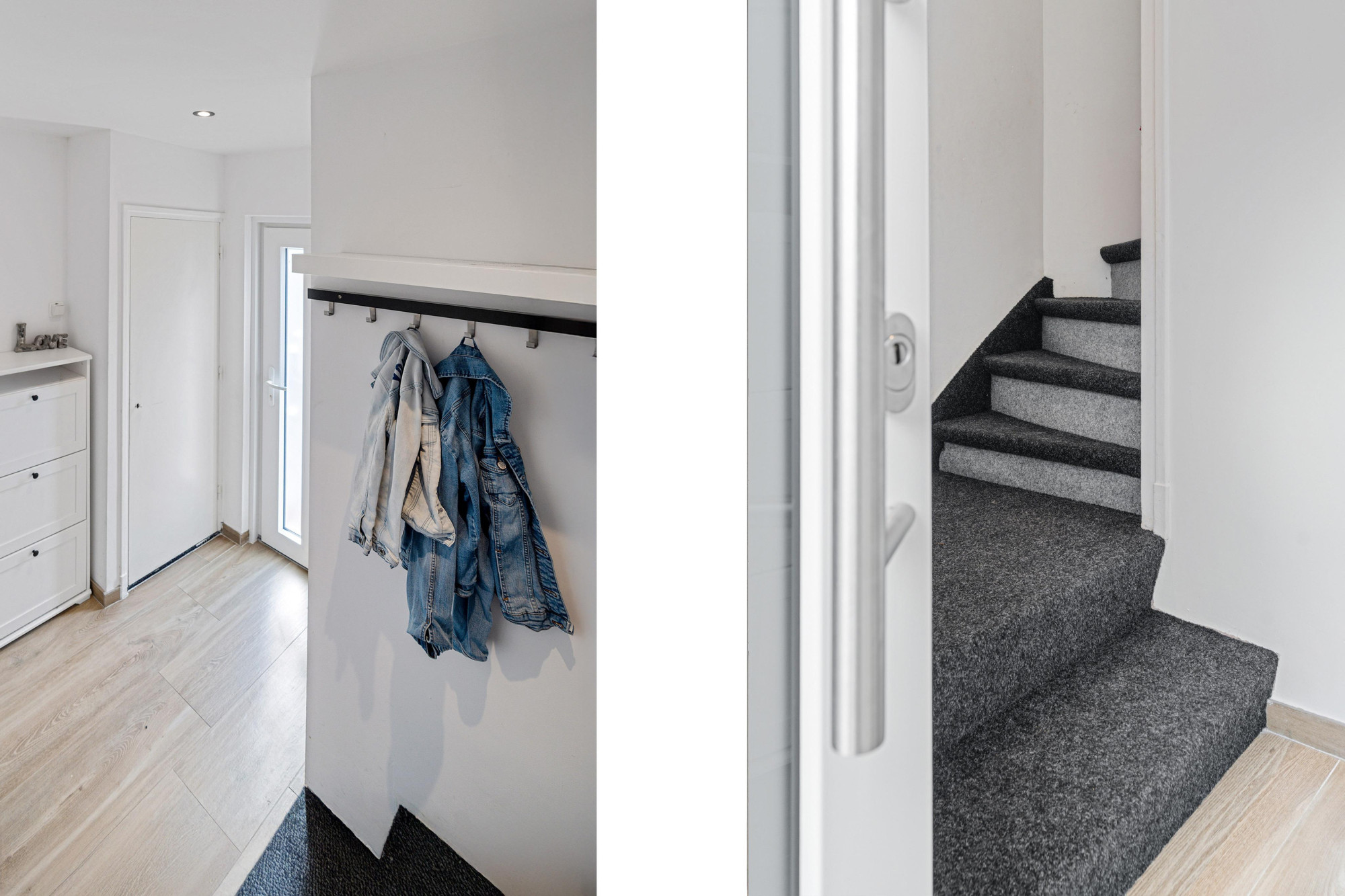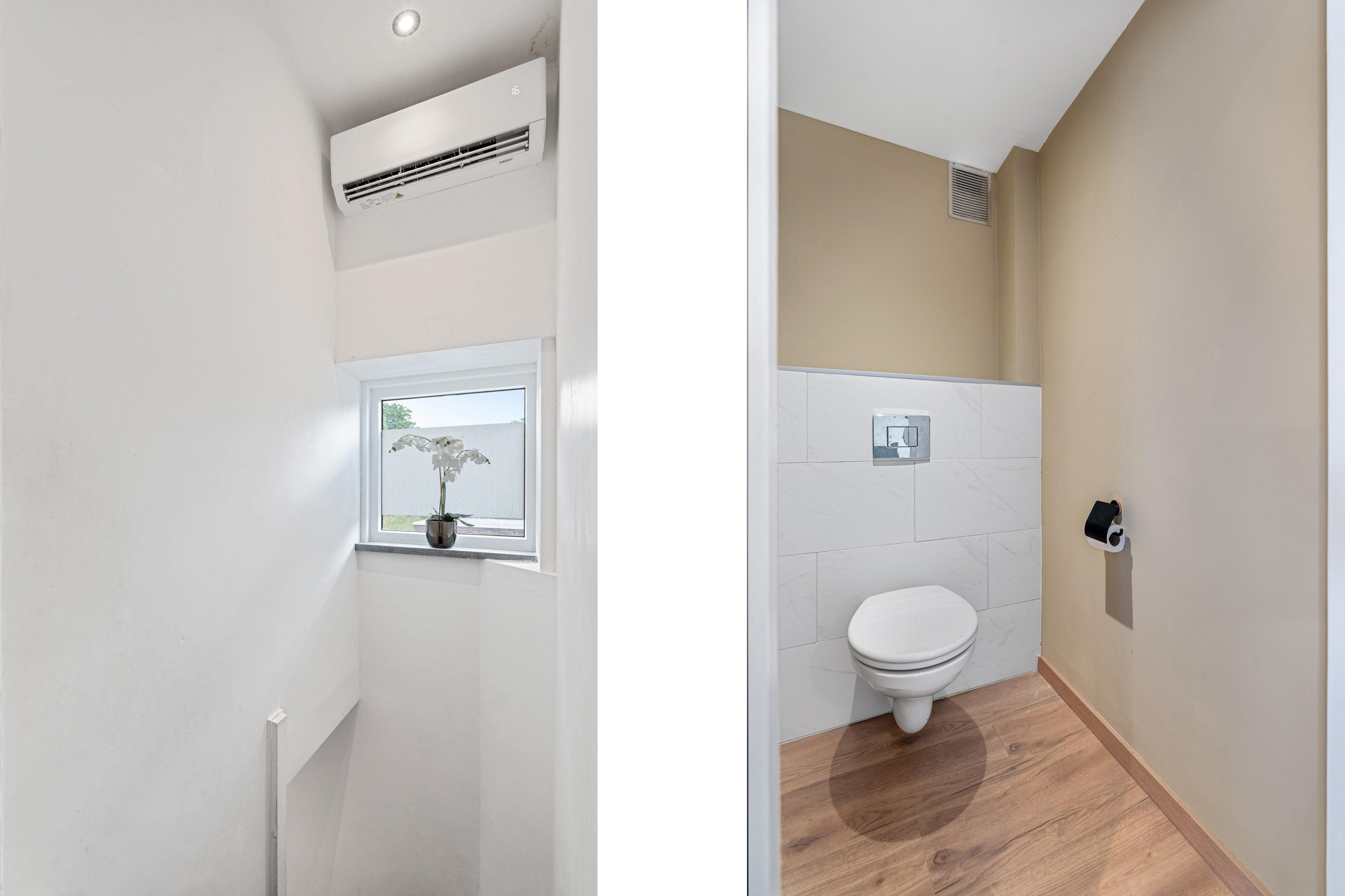 Via de verzorgde entree bereik je de meterkast en het moderne, zwevende toilet.