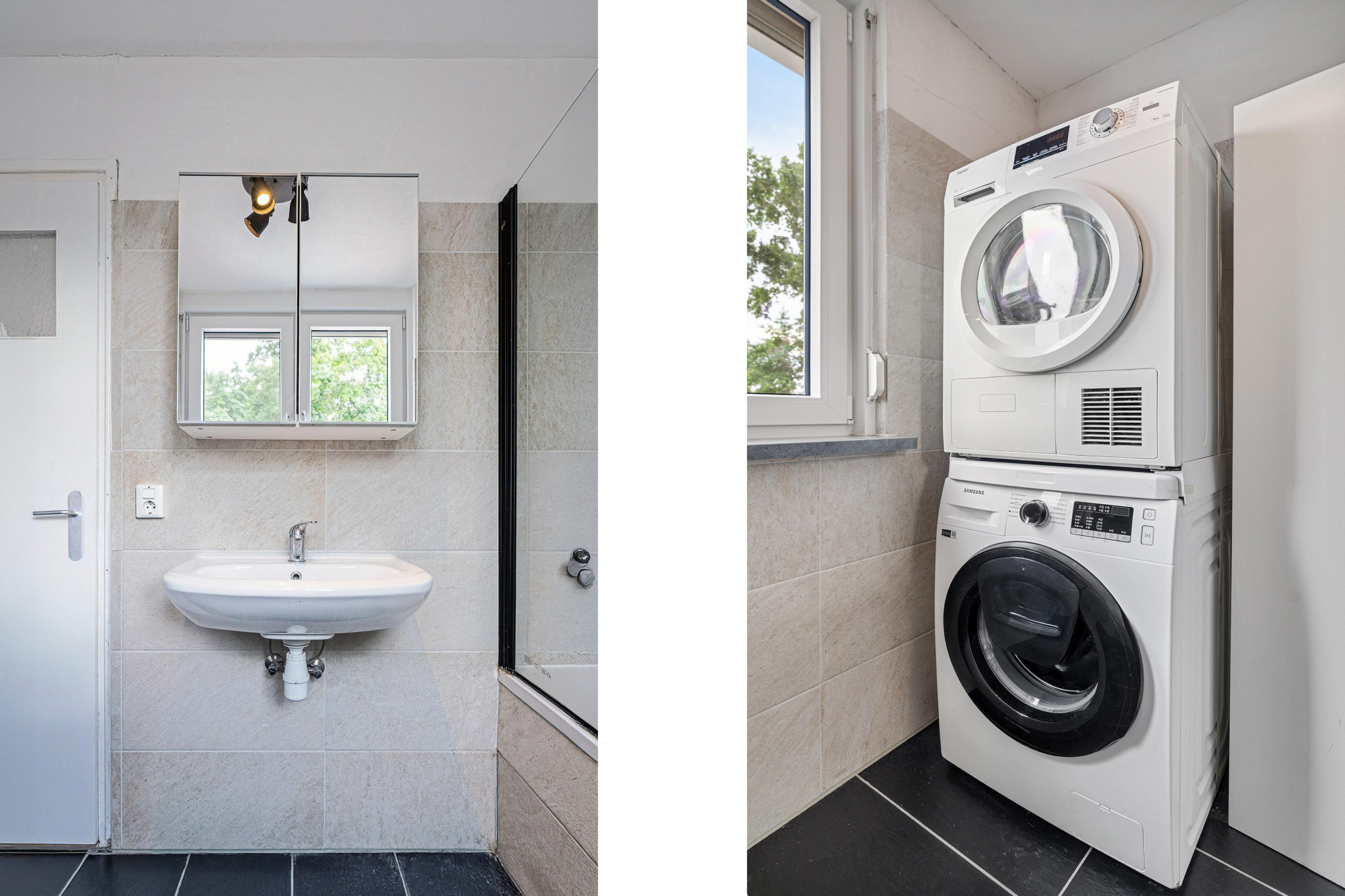 De BADKAMER (2.37m x 1.78m) is functioneel en compleet, voorzien van een ligbad/douchecombinatie, wastafel en aansluitingen voor wasmachine en droger.