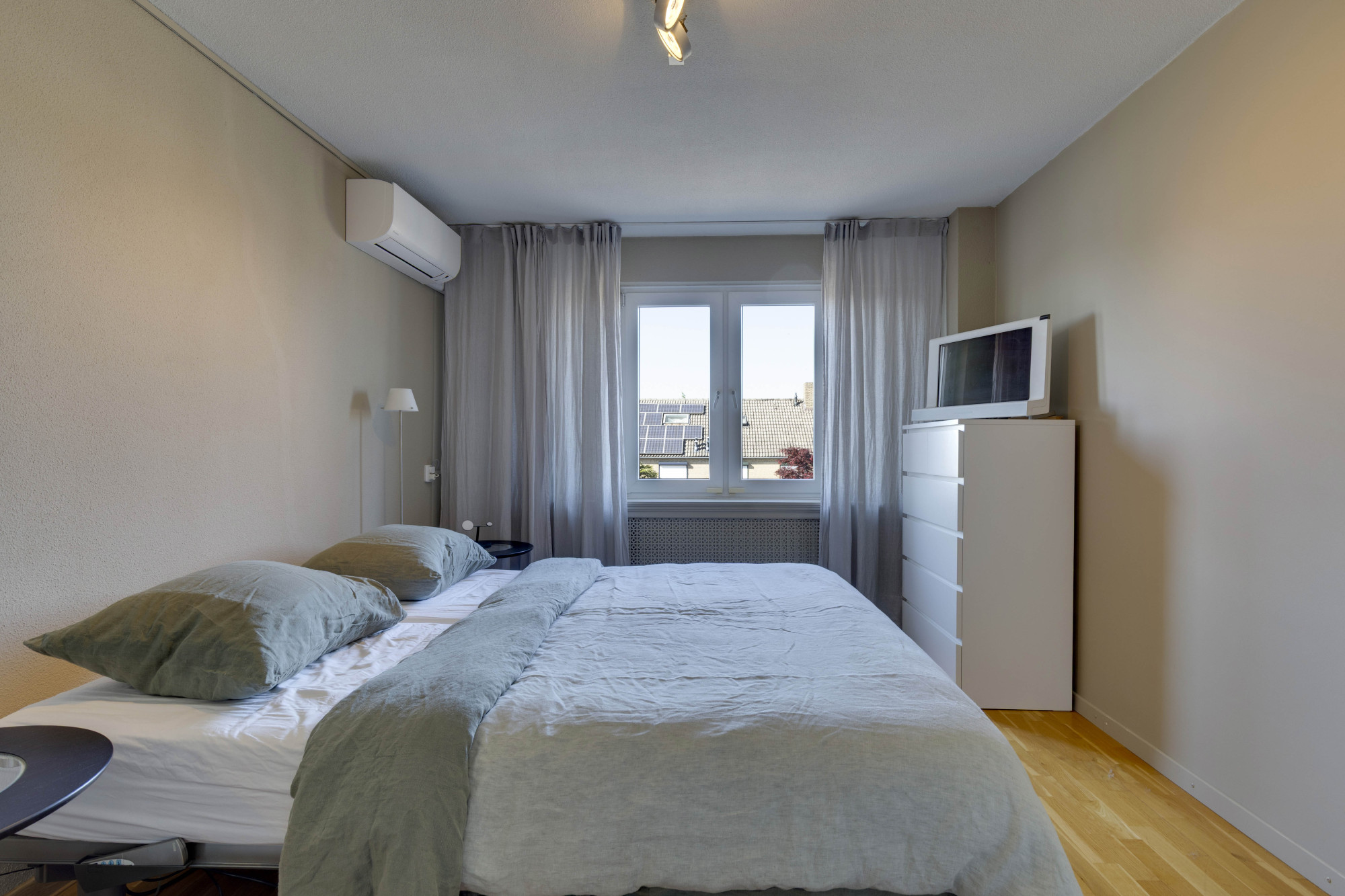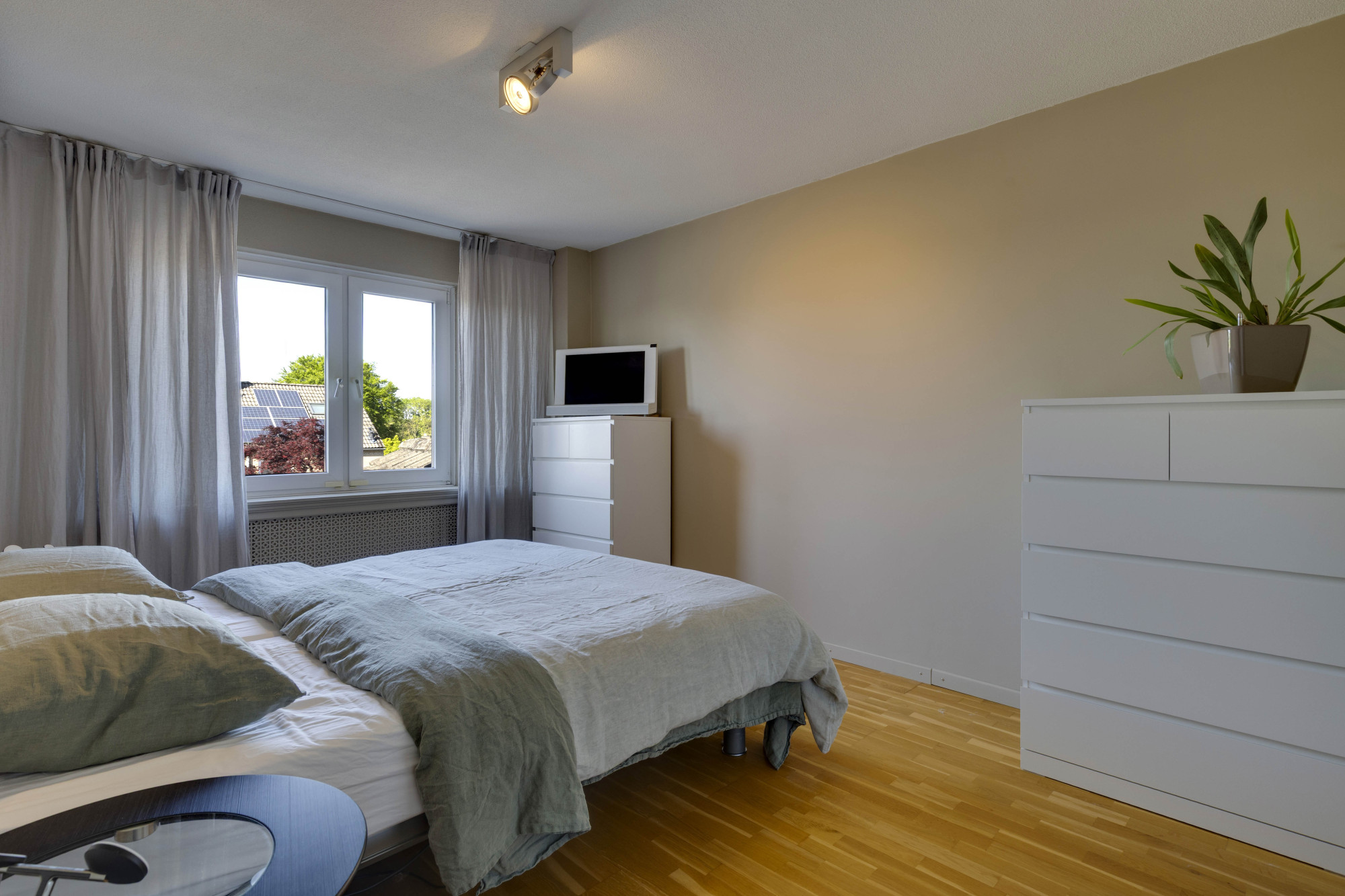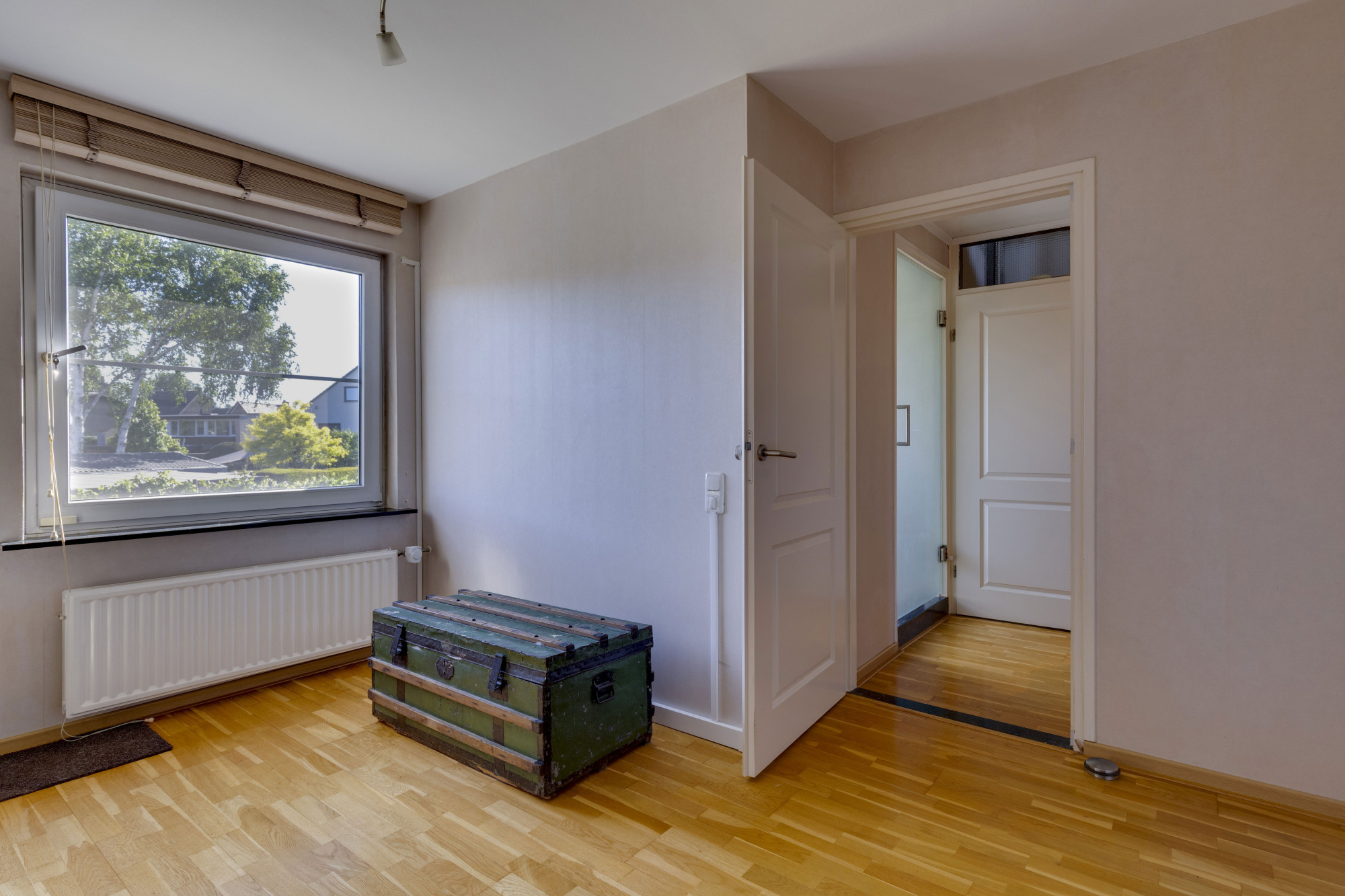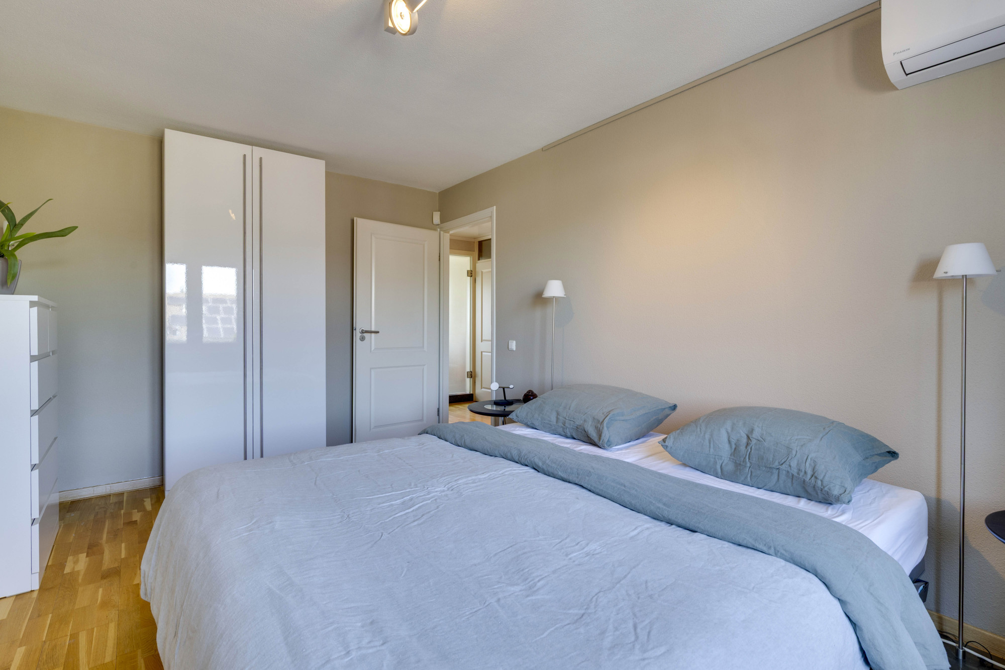 Middels glazen deur te bereiken riante vierde slaapkamer met airconditioning en bergruimte.