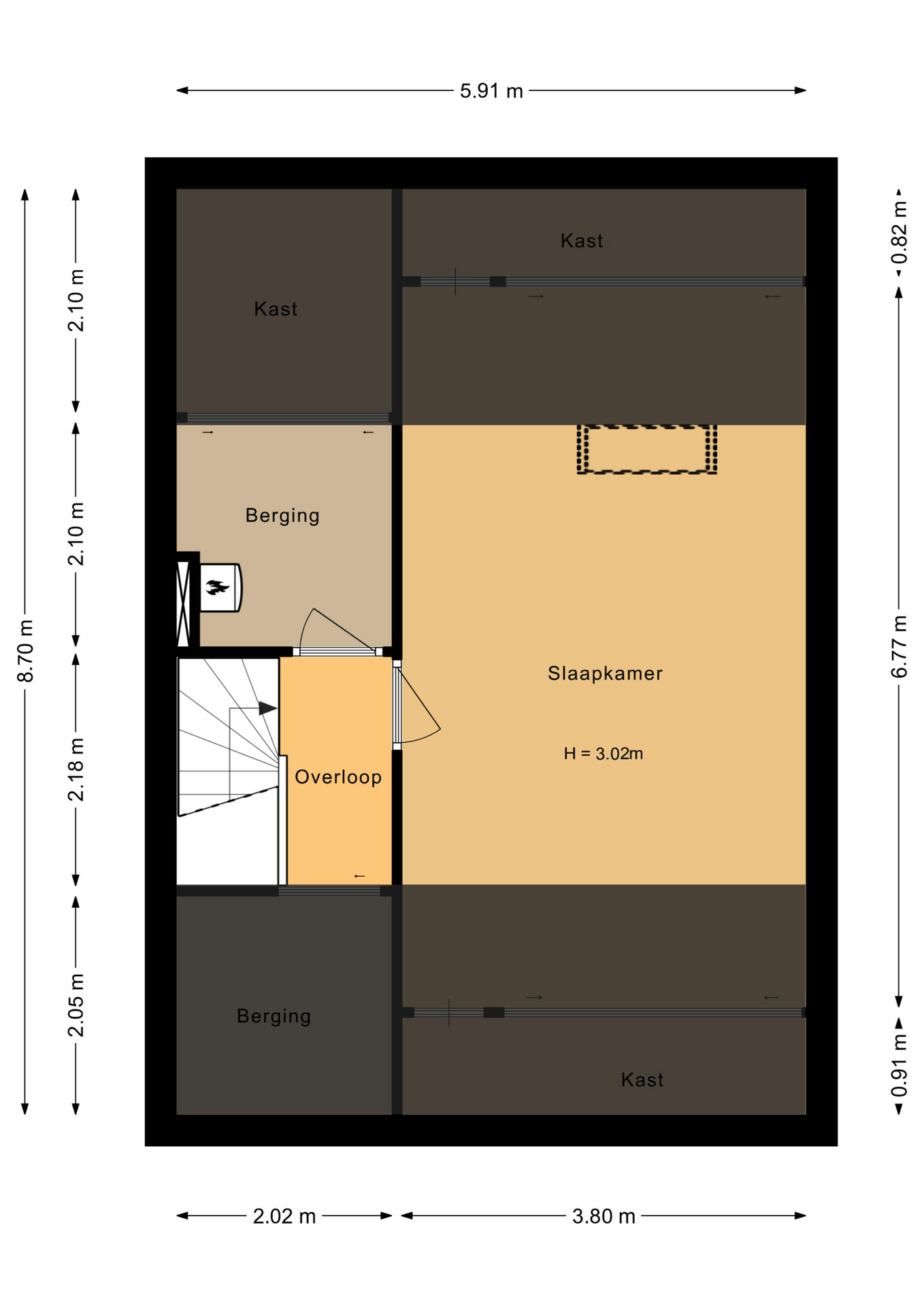 Middels vaste trap te bereiken zolderverdieping met overloop en berging, alwaar standplaats