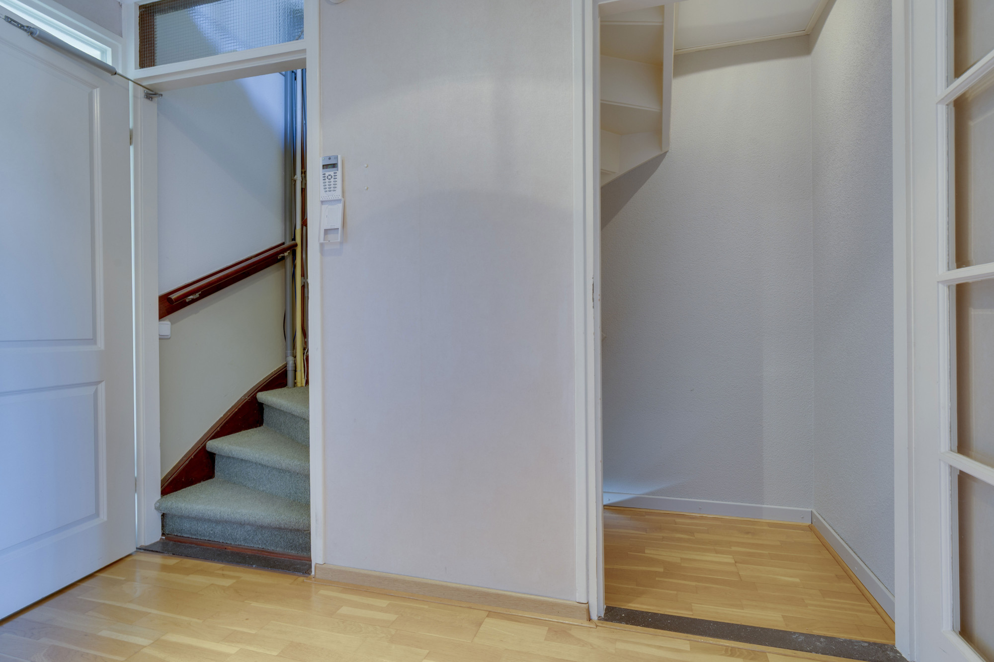 Bijkeuken met witgoedaansluiting en extra bergruimte.