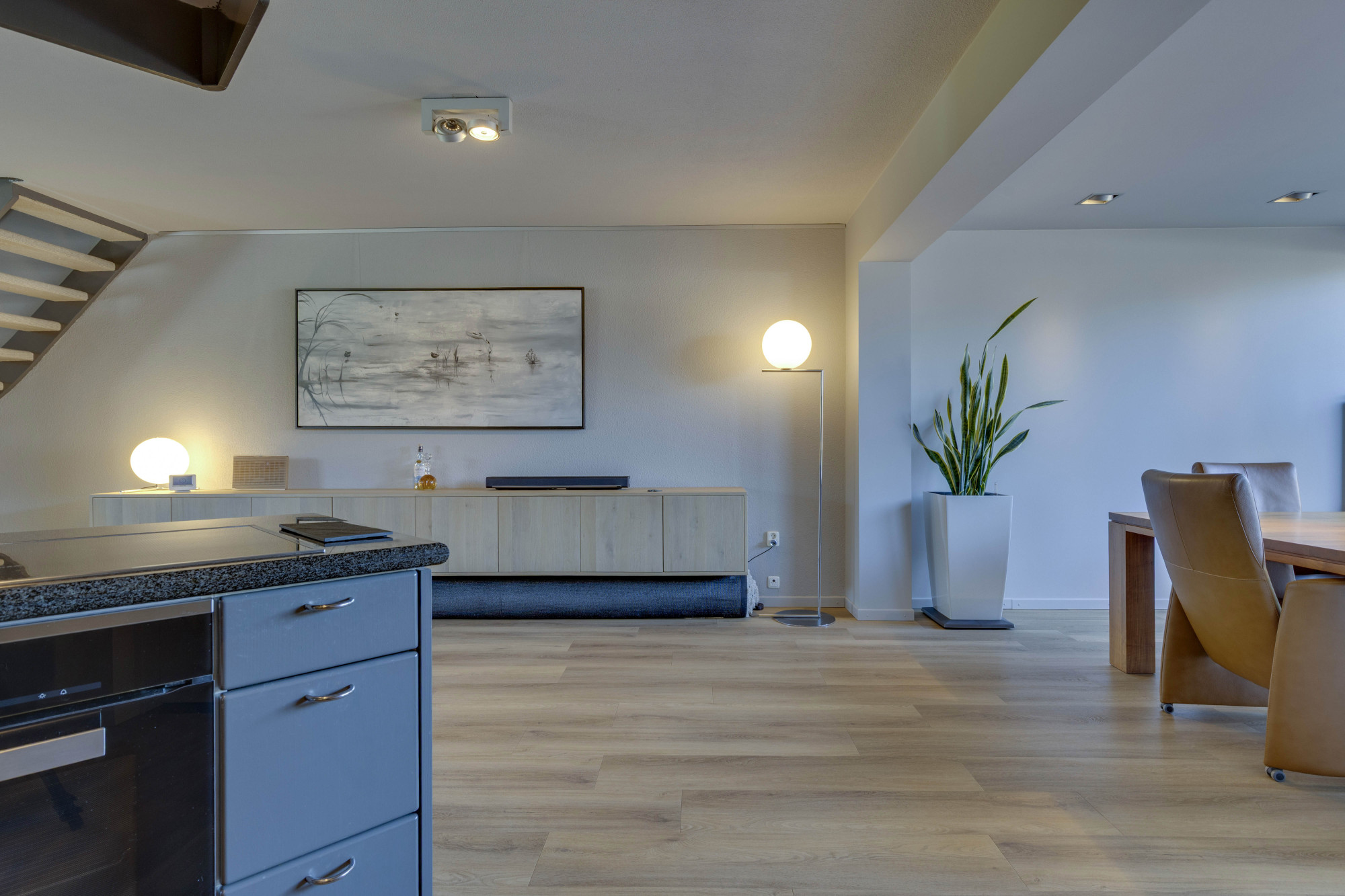 Riante, sfeervolle woonkamer met pvc-vloer en comfortabele vloerverwarming