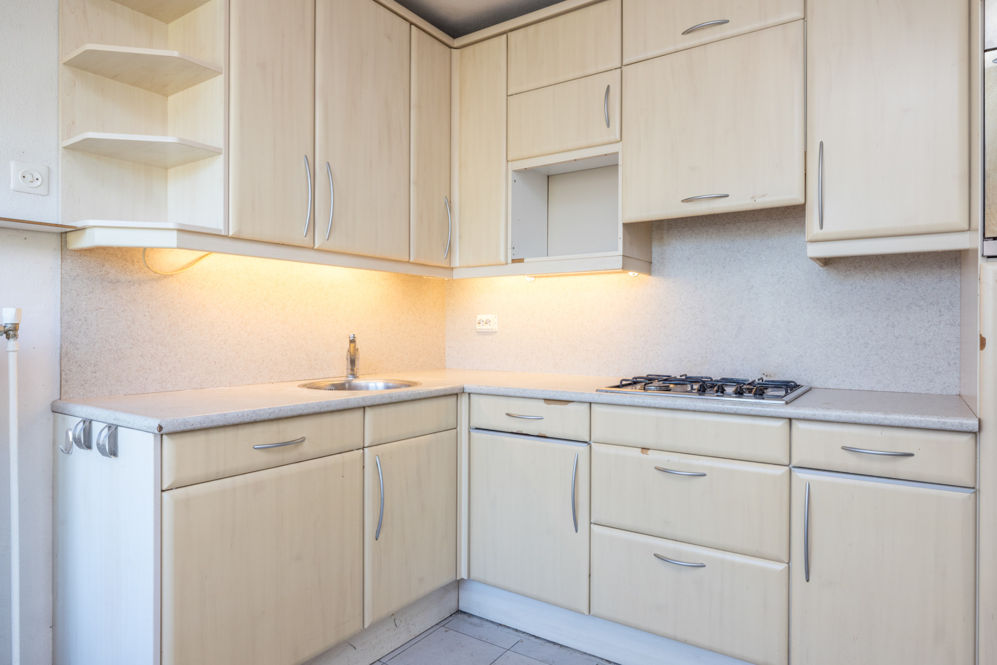 • gesloten keuken met keukenblok voorzien van gaskookplaat, afzuigkap en koelkast
