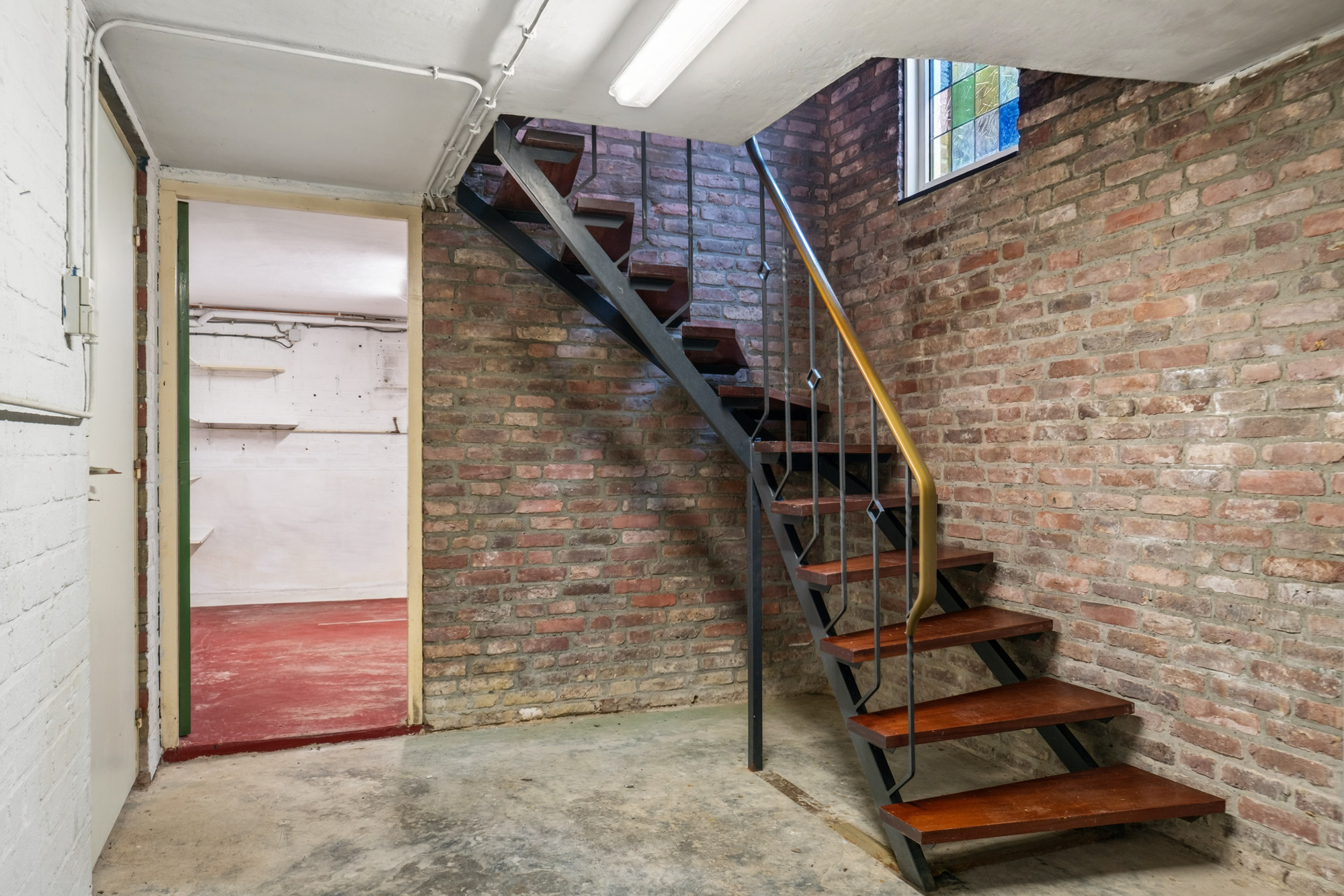Via de overloop in het souterrain bereik je de garage en de kelderruimte. De garage biedt directe toegang tot de oprit en leidt tevens naar de cv-ruimte waar de cv-ketel zich bevindt. Ideaal voor extra opslag, hobbyruimte of het droog en veilig stallen van fietsen en auto.