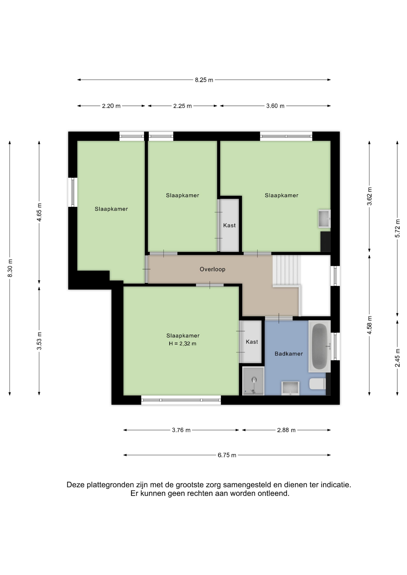 Alle door ons kantoor verstrekte informatie omtrent onroerende zaken, moet beschouwd worden als een uitnodiging om in onderhandeling te treden, en is geheel vrijblijvend! Alle vermelde maten en afmetingen zijn slechts bij benadering. Aan deze beperkte info kunnen geen rechten worden ontleend. Indien in enige documentatie of op enige website informatie staat die niet overeen komt met de werkelijkheid, dan geldt de feitelijke situatie waarin de woning zich bevindt, zoals koper deze tijdens de bezichtiging heeft kunnen waarnemen, en wordt de woning in deze feitelijke situatie/staat verkocht. Een (eventueel) bijgevoegde plattegrond dient uitsluitend als globale indicatie/visualisatie. Hieraan kunnen uitdrukkelijk geen rechten worden ontleend.