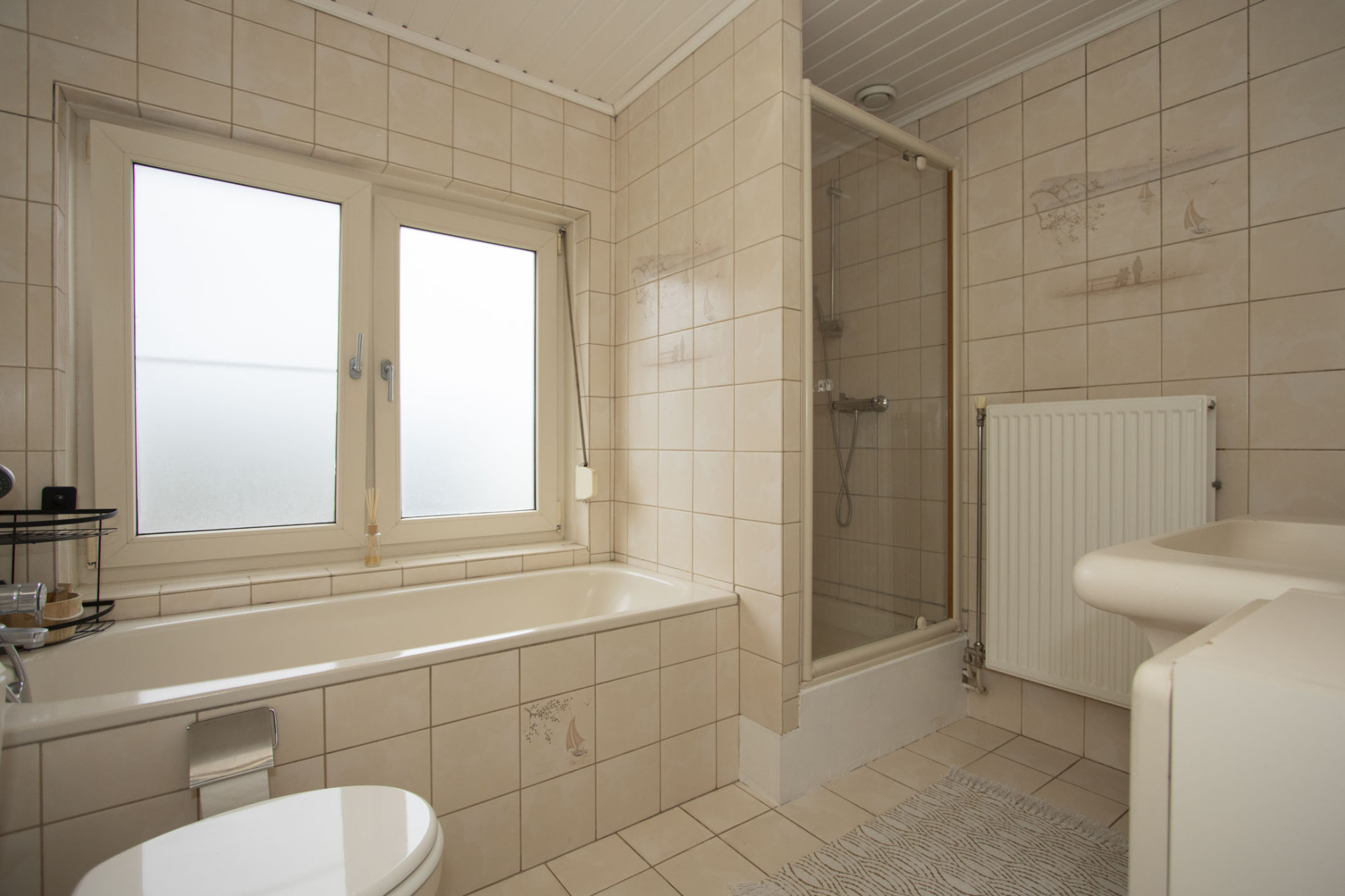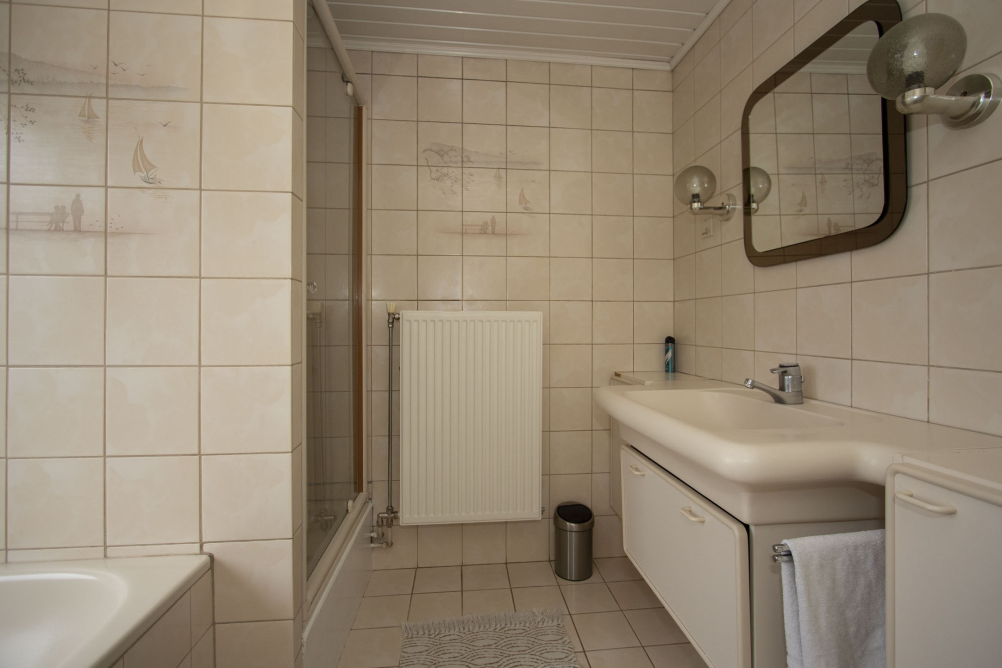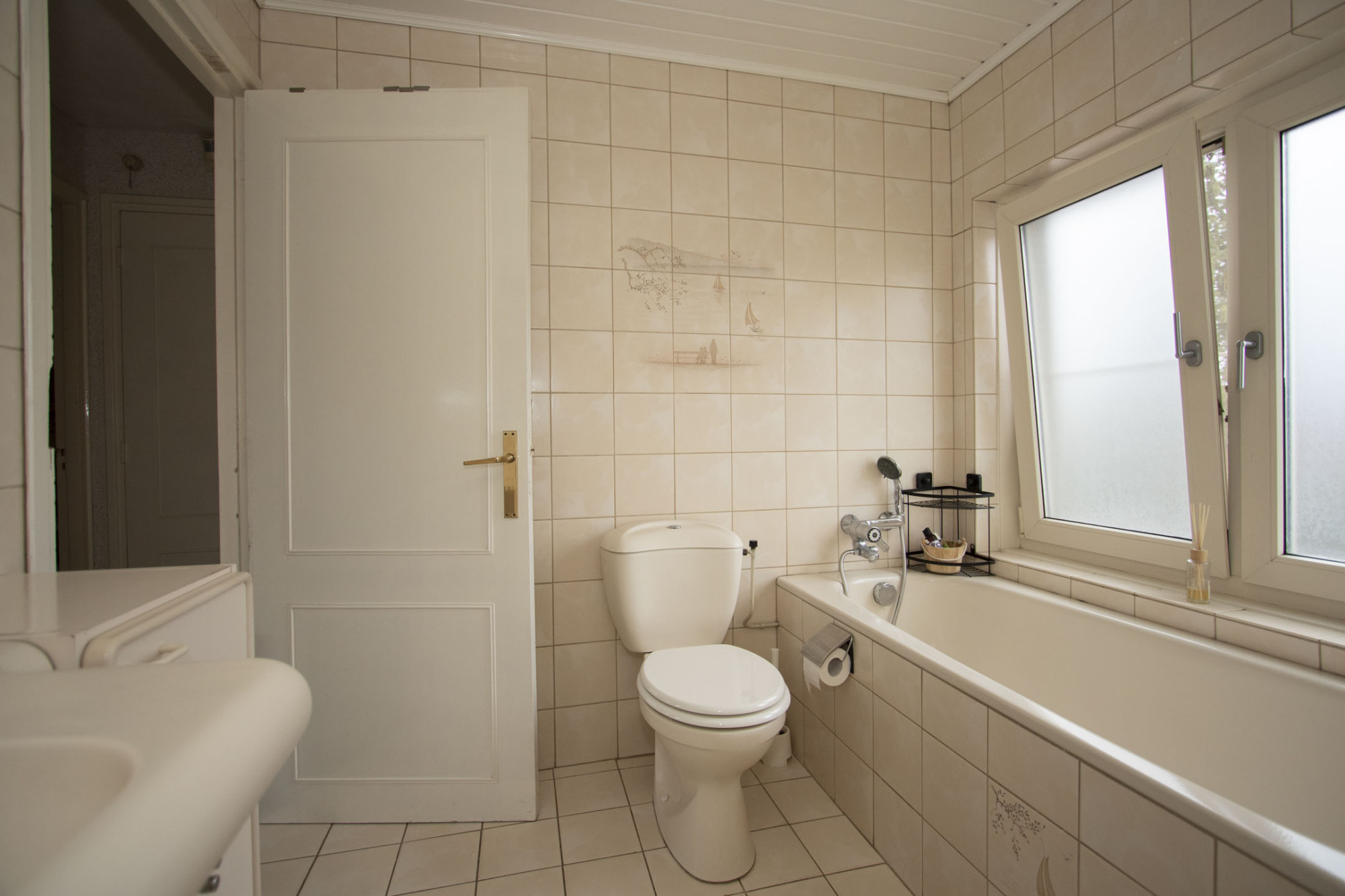 Op de eerste verdieping bevinden zich drie slaapkamers, allemaal van goed formaat. De badkamer is compleet en functioneel, voorzien van de nodige gemakken voor het gezin met o.a. een ligbad en aparte douche. Verder is er via een muurkast in één van de slaapkamers toegang tot een bergzolder, handig voor het opbergen van seizoensspullen of andere items die je niet dagelijks nodig hebt.