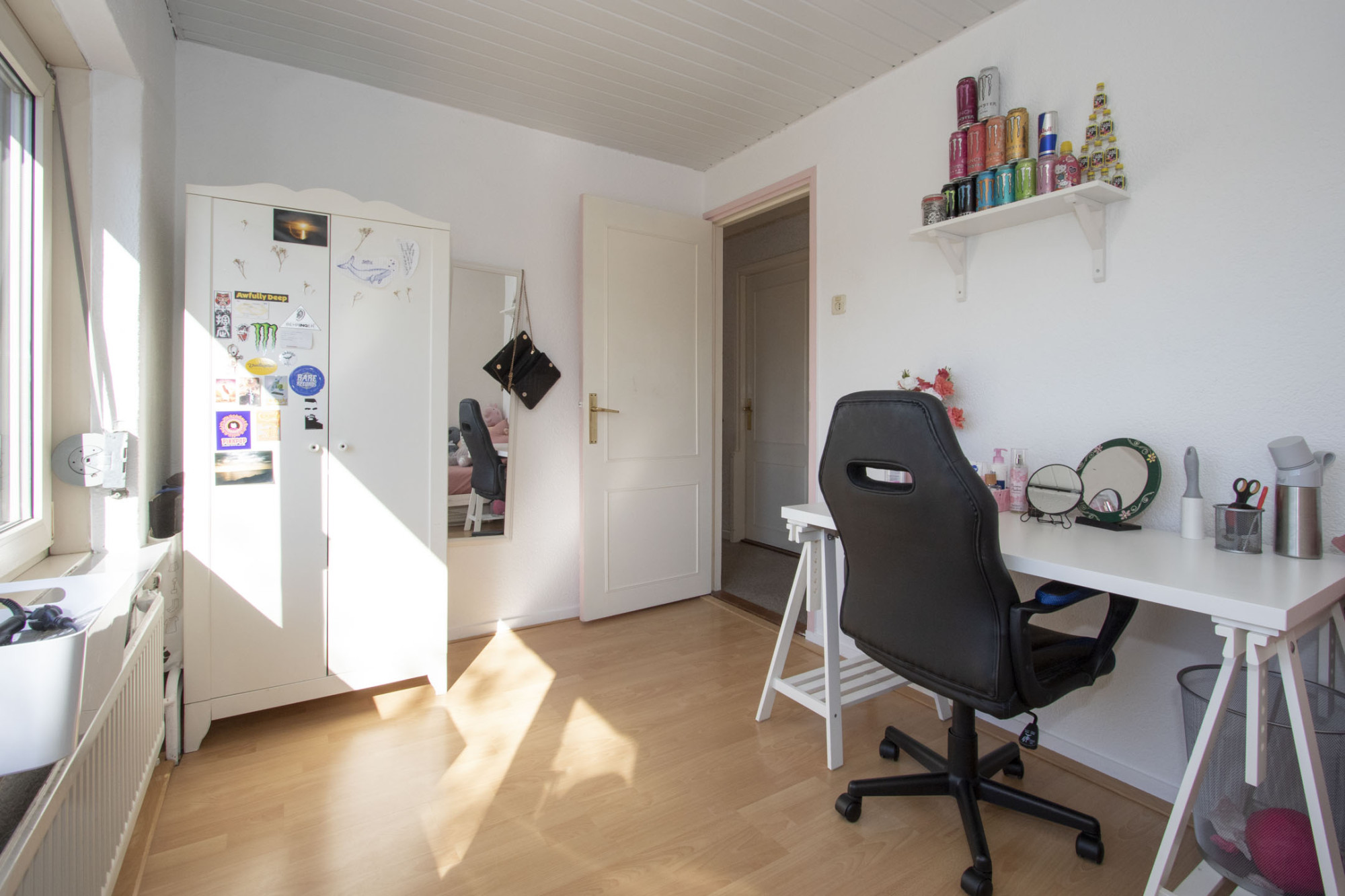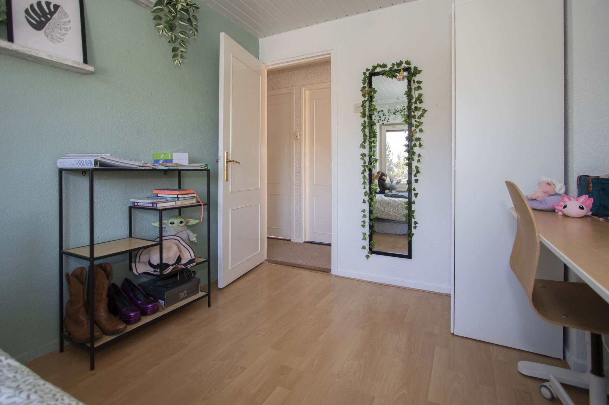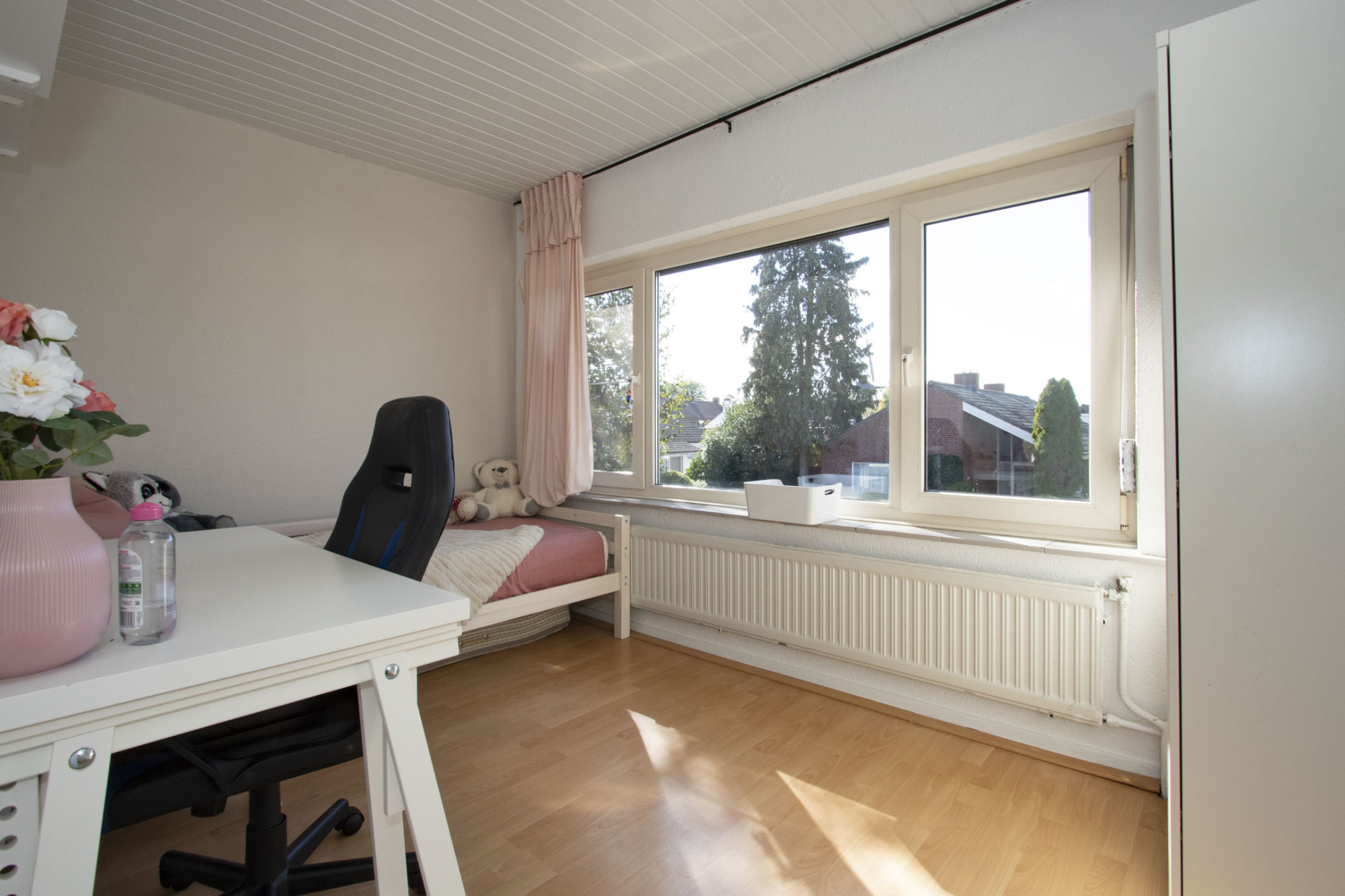 Op de eerste verdieping bevinden zich drie slaapkamers, allemaal van goed formaat. De badkamer is compleet en functioneel, voorzien van de nodige gemakken voor het gezin met o.a. een ligbad en aparte douche. Verder is er via een muurkast in één van de slaapkamers toegang tot een bergzolder, handig voor het opbergen van seizoensspullen of andere items die je niet dagelijks nodig hebt.