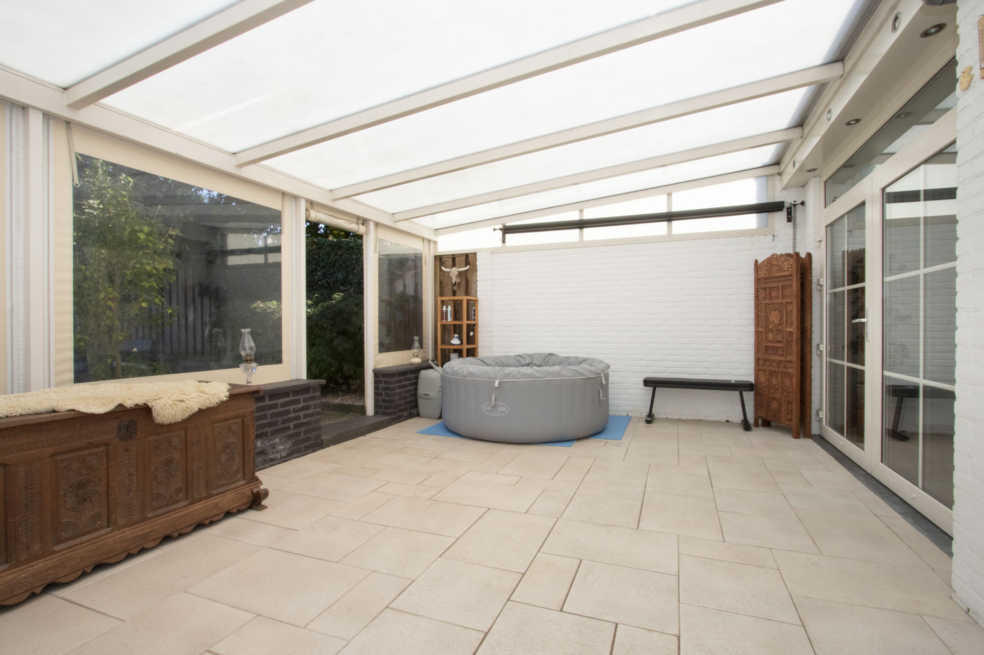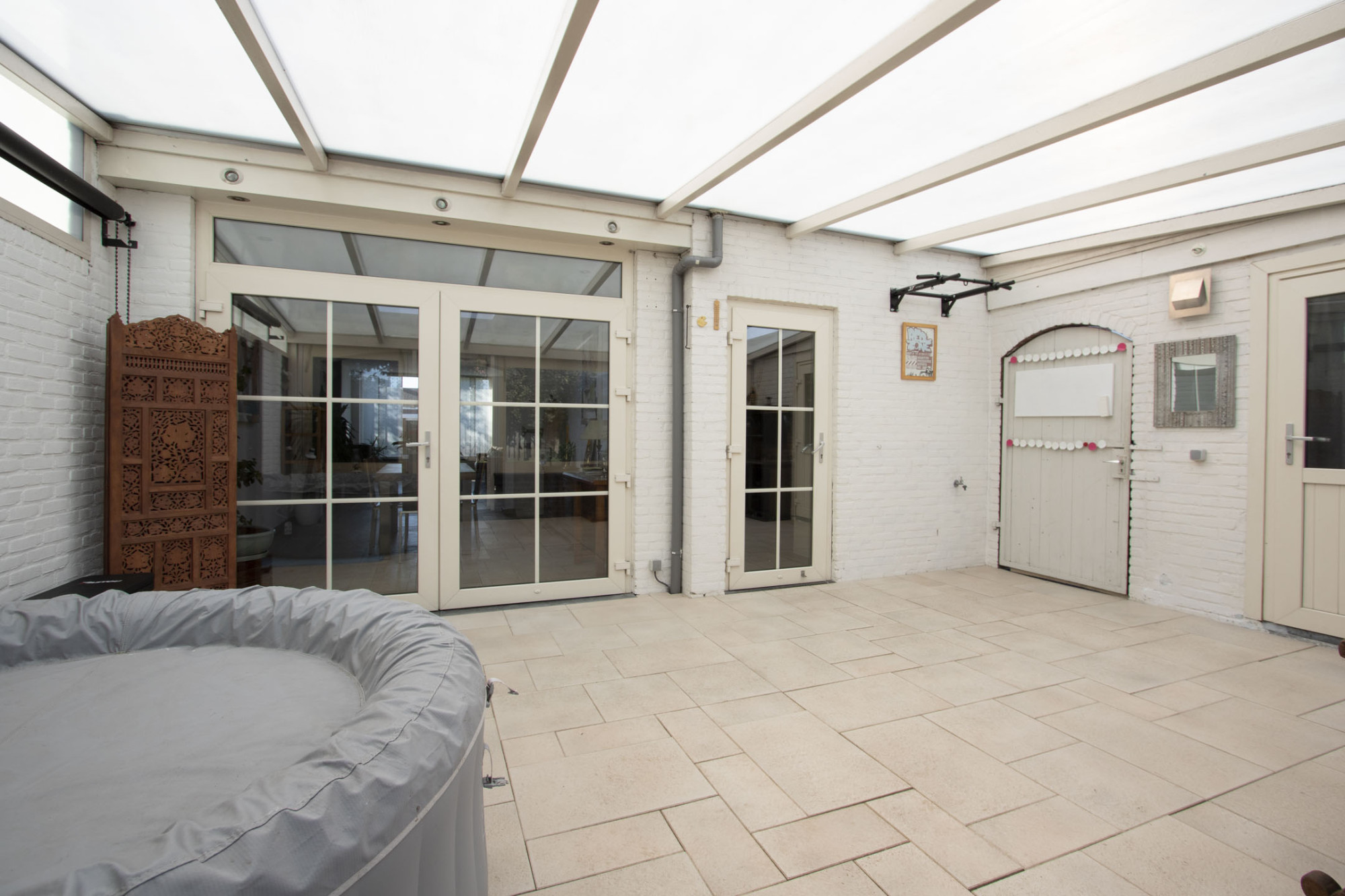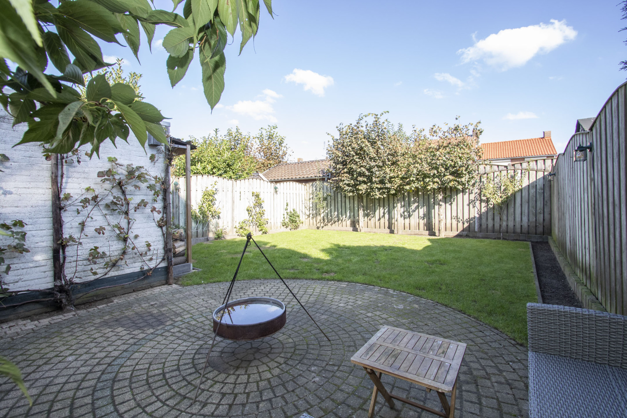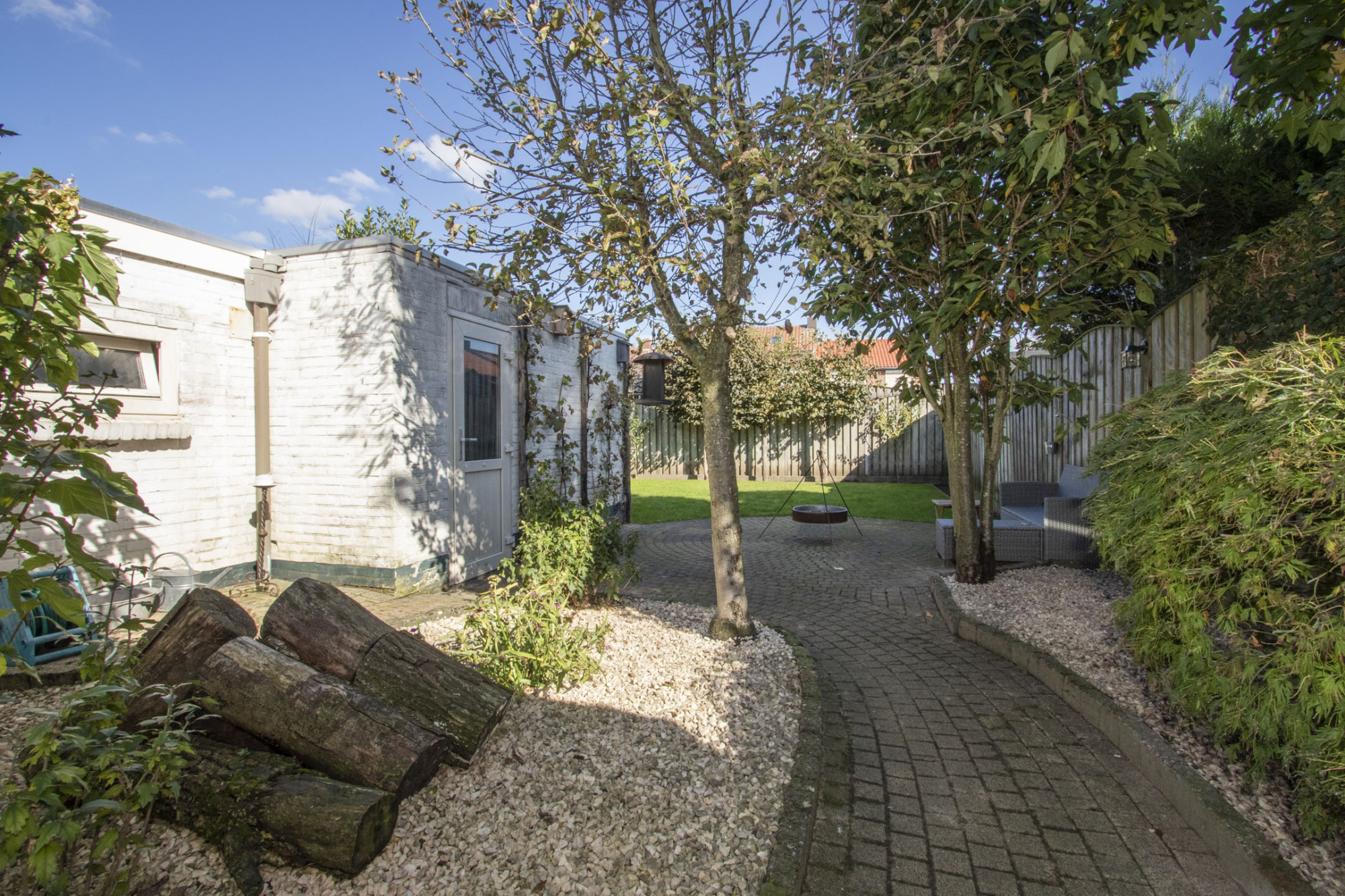 Een van de grote pluspunten van deze woning is de diepe, mooi aangelegde achtertuin met grote overkapping. Deze tuin biedt volop mogelijkheden om te genieten van het buitenleven. De overkapping, direct aan de woning, maakt het mogelijk om het hele jaar door beschut buiten te zitten. Of je nu wilt ontspannen, eten of spelen, deze tuin biedt de perfecte setting.
