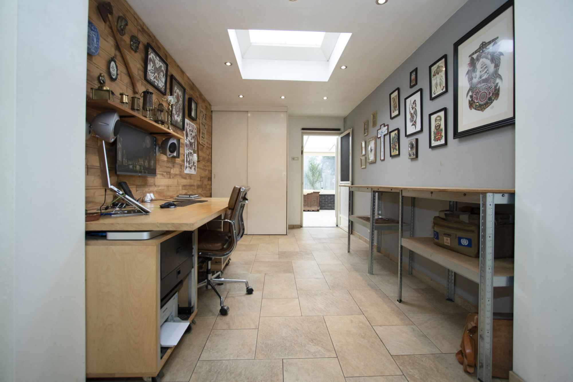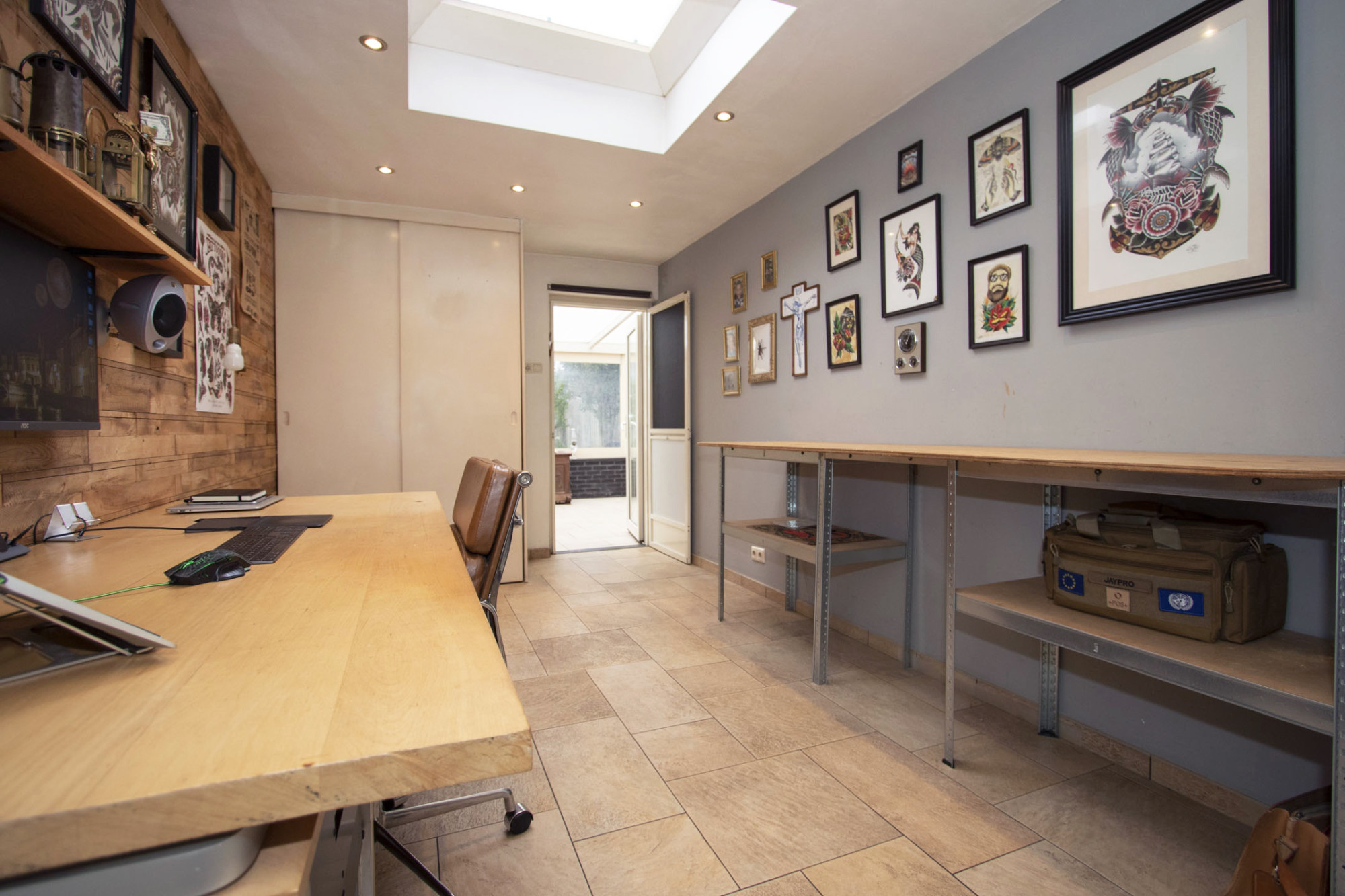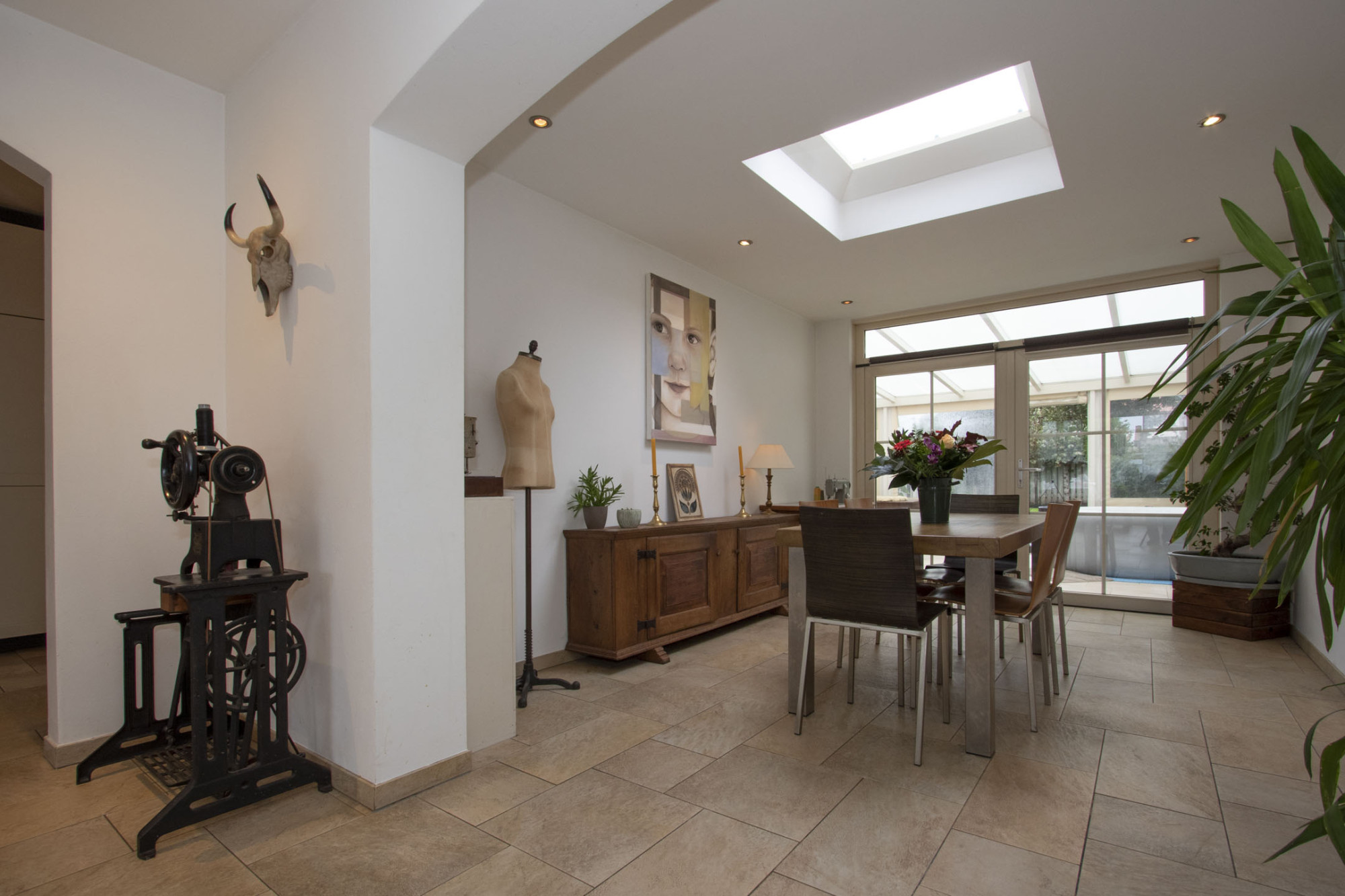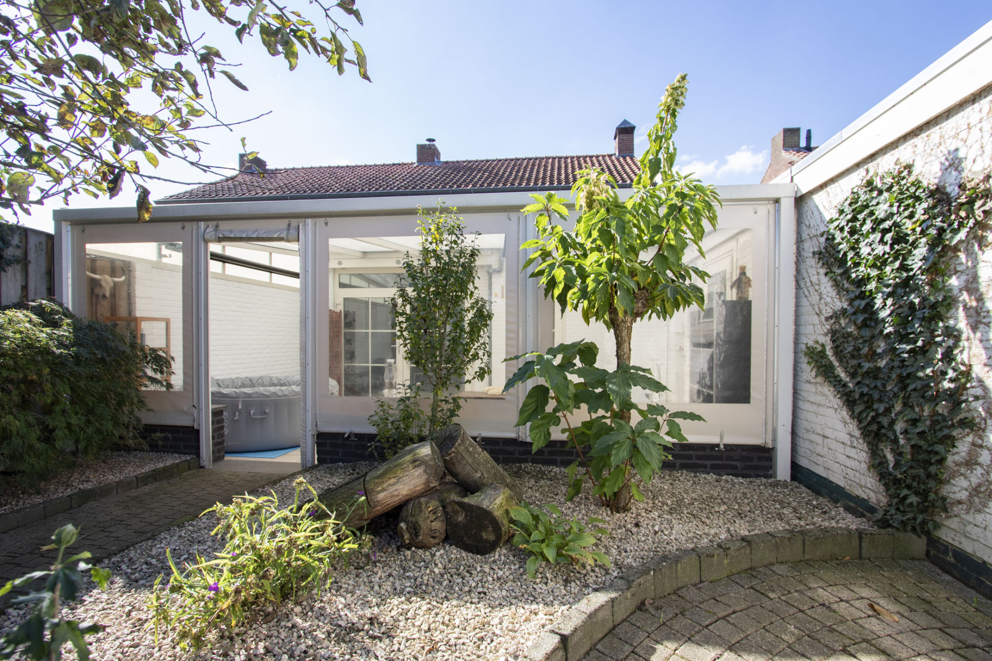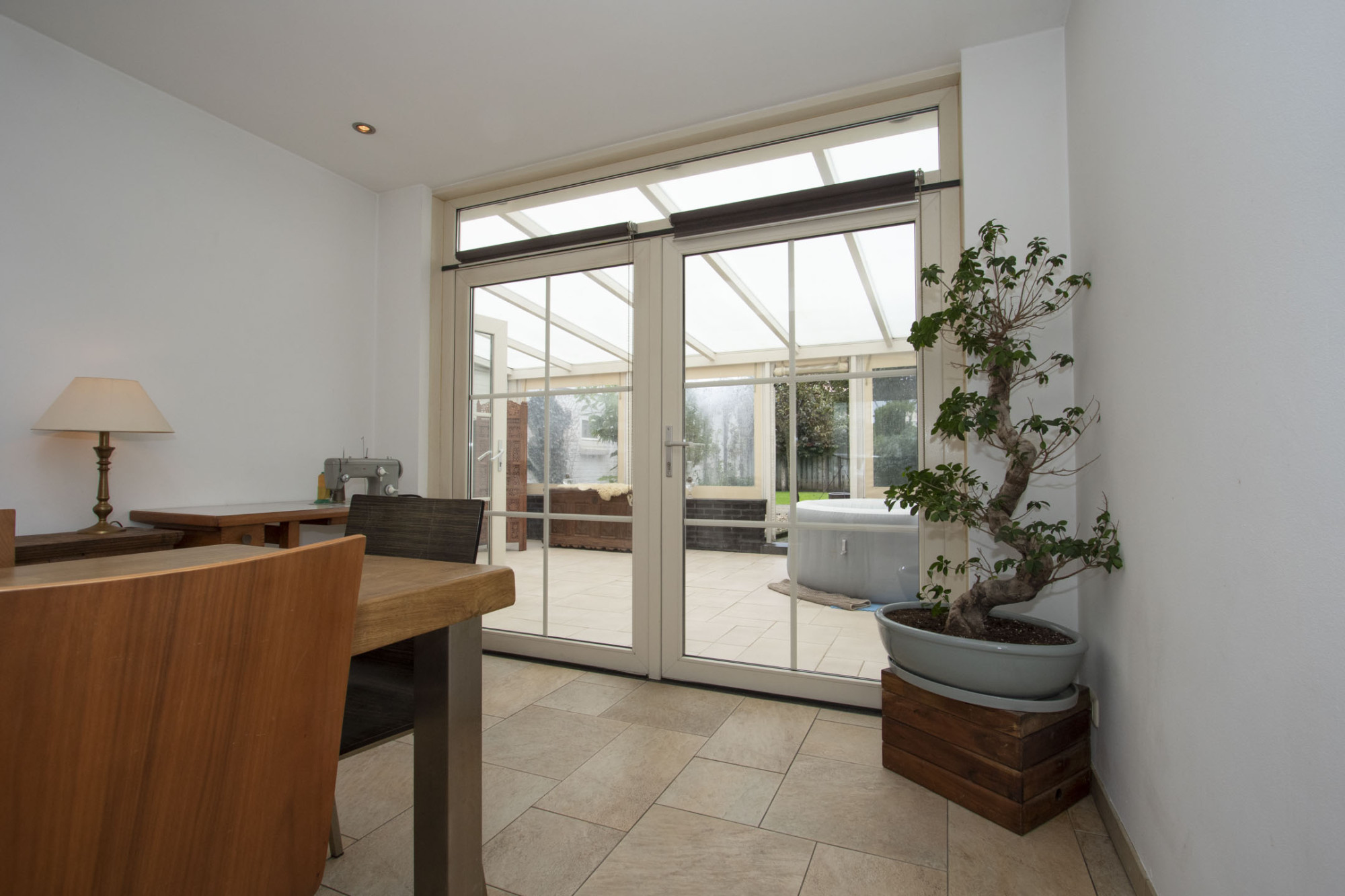 Een van de grote pluspunten van deze woning is de diepe, mooi aangelegde achtertuin met grote overkapping. Deze tuin biedt volop mogelijkheden om te genieten van het buitenleven. De overkapping, direct aan de woning, maakt het mogelijk om het hele jaar door beschut buiten te zitten. Of je nu wilt ontspannen, eten of spelen, deze tuin biedt de perfecte setting.