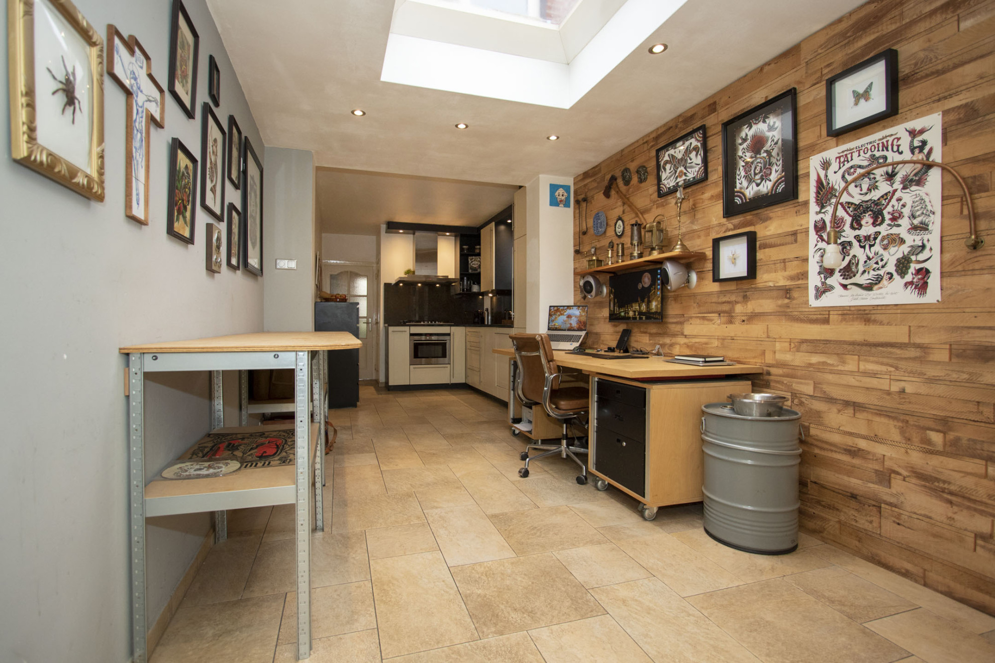 Bij binnenkomst merk je direct de royale opzet van de woning. De uitgebouwde woonkamer is ruim en licht, mede dankzij de openslaande deuren die toegang geven tot de overkapping en de tuin. Hier heb je genoeg plek voor een grote zithoek én eethoek. De keuken is praktisch ingericht met een nette hoekopstelling (2004), afzuigkap, 5 pits gasfornuis, combi-oven en een koelkast . De keuken biedt zicht op de naastgelegen speelkamer/kantoor, wat ideaal is voor gezinnen.