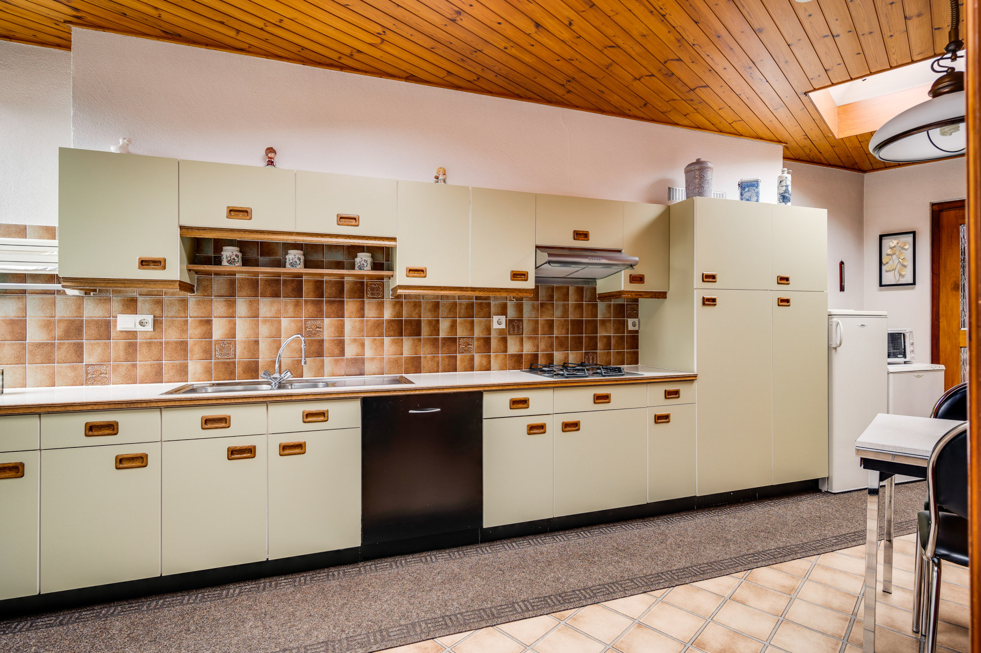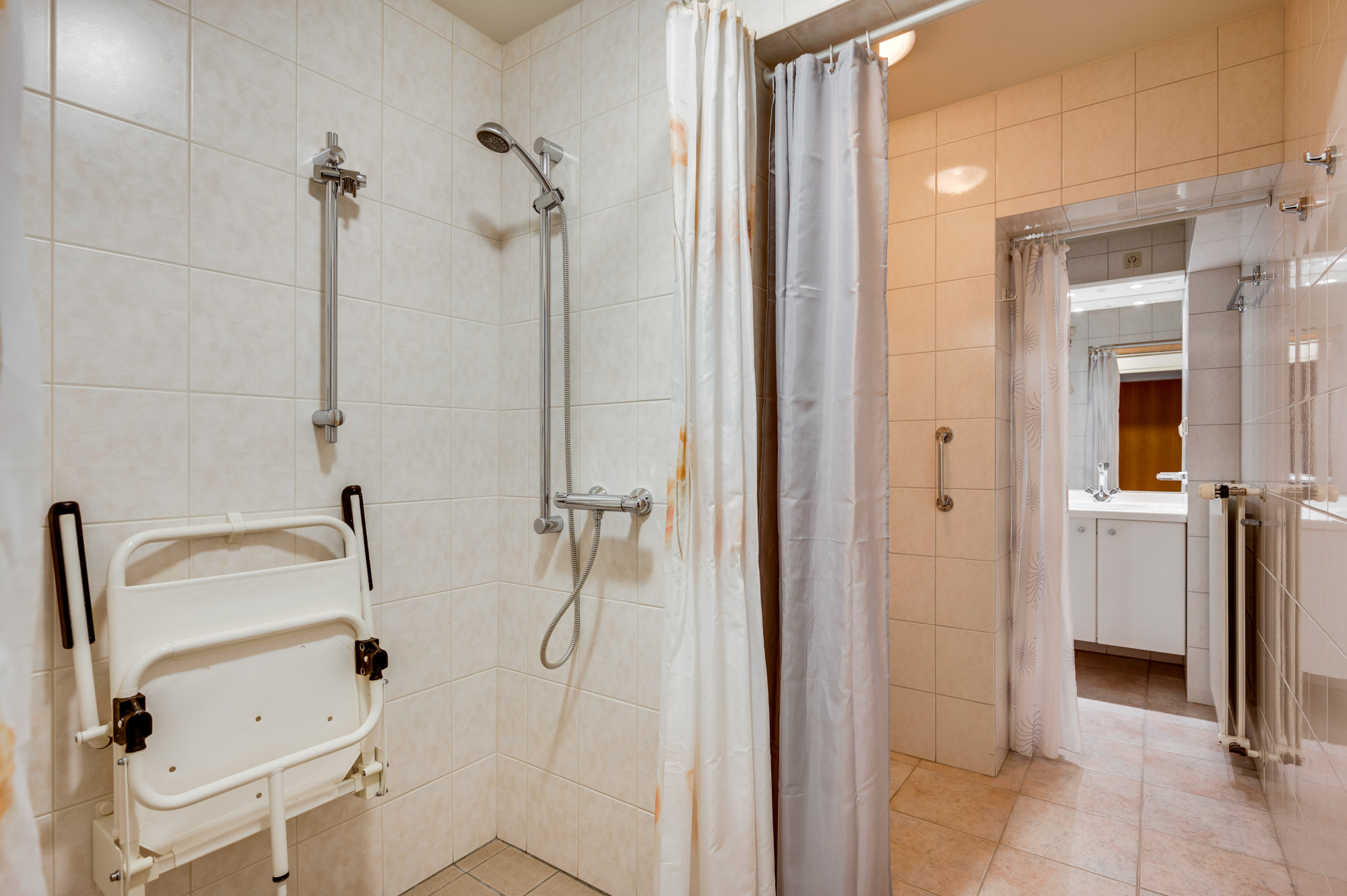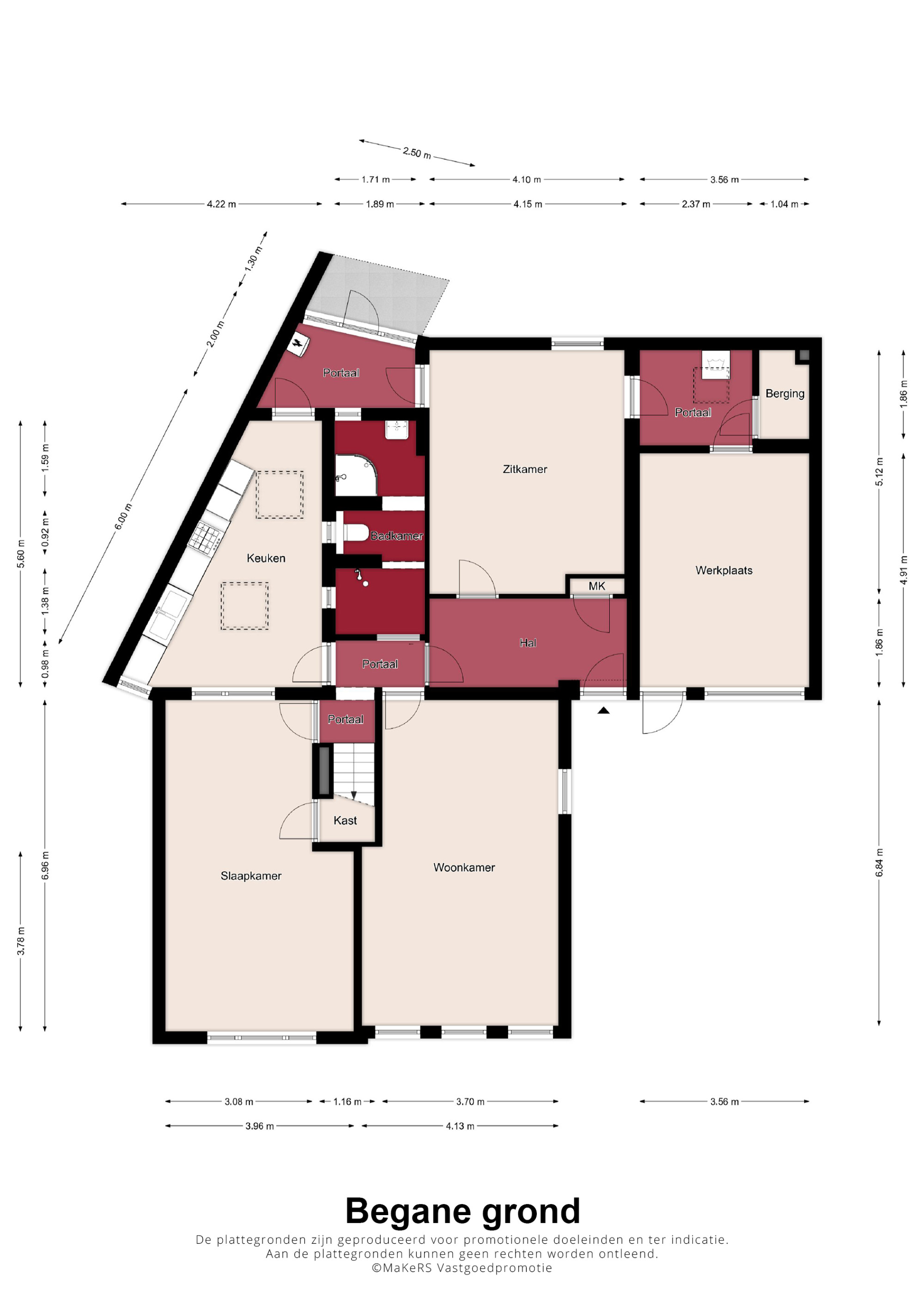 Bij binnenkomst betreedt u een ruime hal met toegang tot diverse vertrekken, waaronder een lichte woonkamer, een 2e woon/zitkamer (ook als extra slaapkamer te gebruiken) en een praktische, ruime keuken. De keuken is eenvoudig van opzet maar netjes afgewerkt en voorzien van een gasfornuis, afzuigkap en vaatwasser. Vanuit de keuken bereikt u het portaal en biedt verder toegang tot de achtertuin. Op de begane grond vindt u daarnaast verder nog een royale slaapkamer met een handige trapkast én een gelijkvloerse badkamer, uitgerust met een inloopdouche én een 2e douche met cabine, een toilet en wastafelmeubel. De extra zitkamer kan ook gebruikt worden als extra 2e gelijkvloerse slaapkamer en geeft toegang tot twee handige portalen: 1 met de opstelling van de cv-ketel (Nefit Topline HR, eigendom, ca. 2009) en de ander met de aansluitingen voor witgoed, een berging en toegang tot een multifunctionele extra ruimte; een garage/werkplaats, doch kan eveneens dienen als extra (slaap-/hobby)kamer op de begane grond.