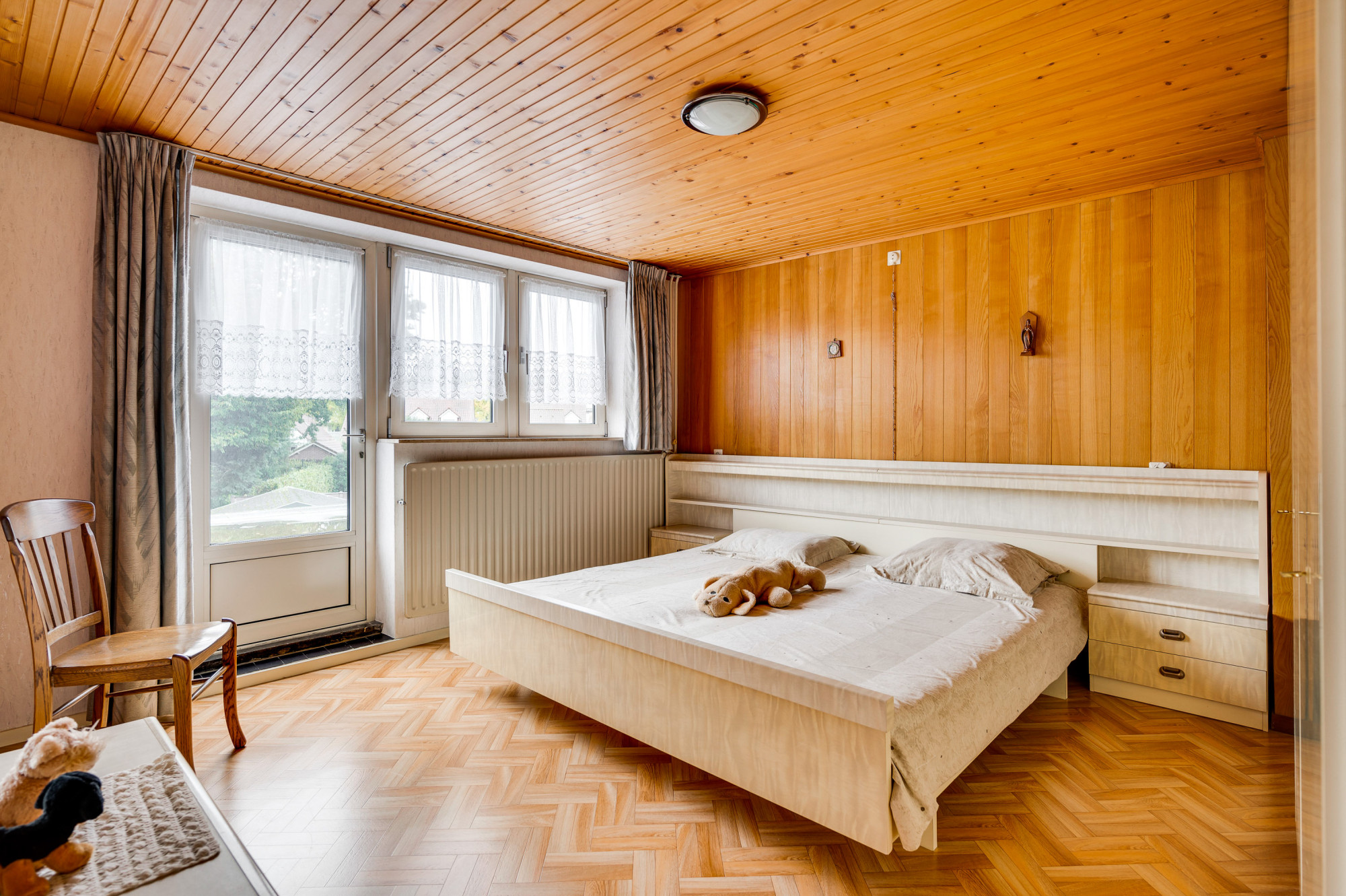 De eerste verdieping biedt maar liefst vier extra slaapkamers, elk voorzien van praktische inbouwkasten. Een van de slaapkamers beschikt over een eigen wastafel.