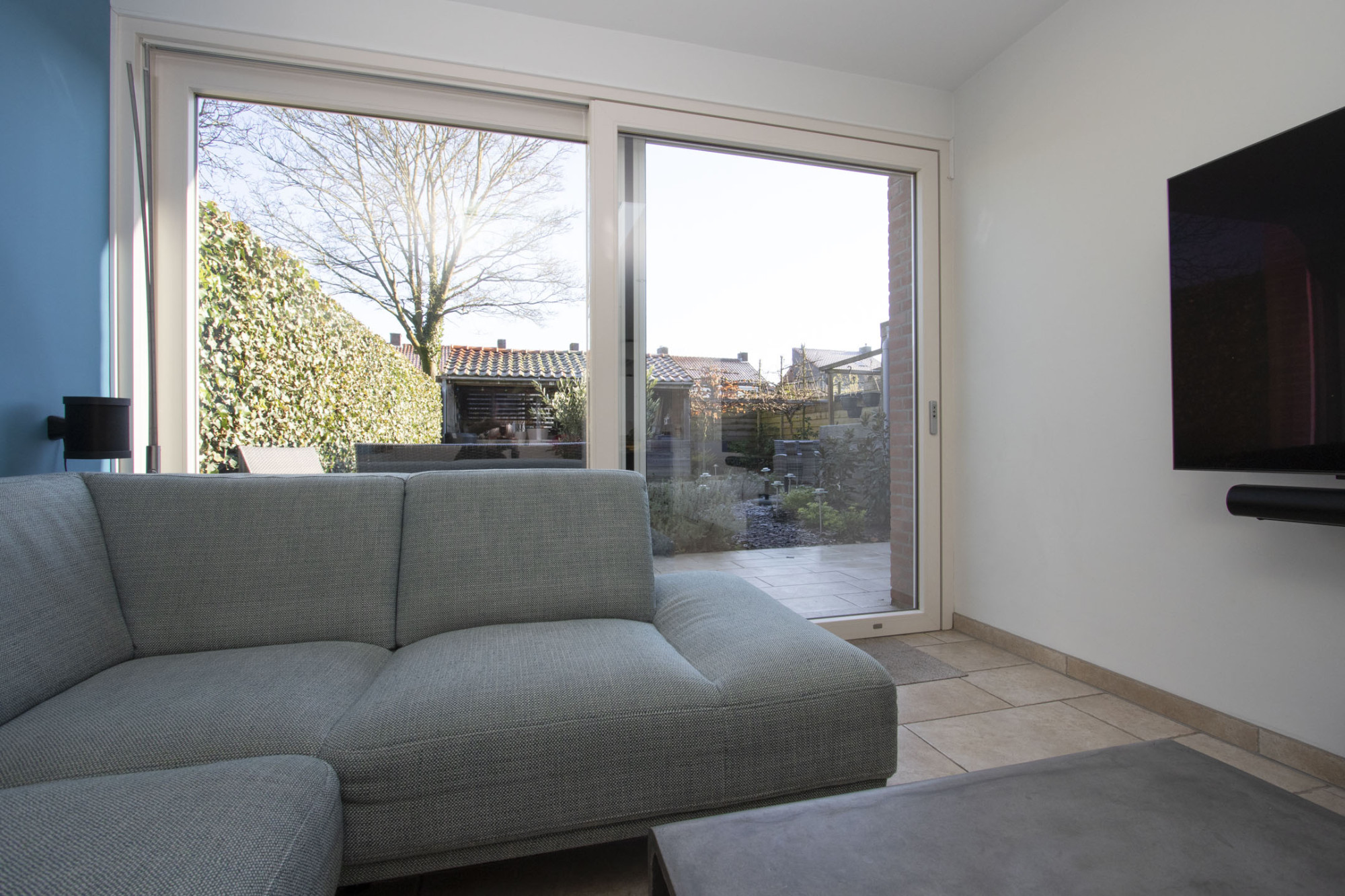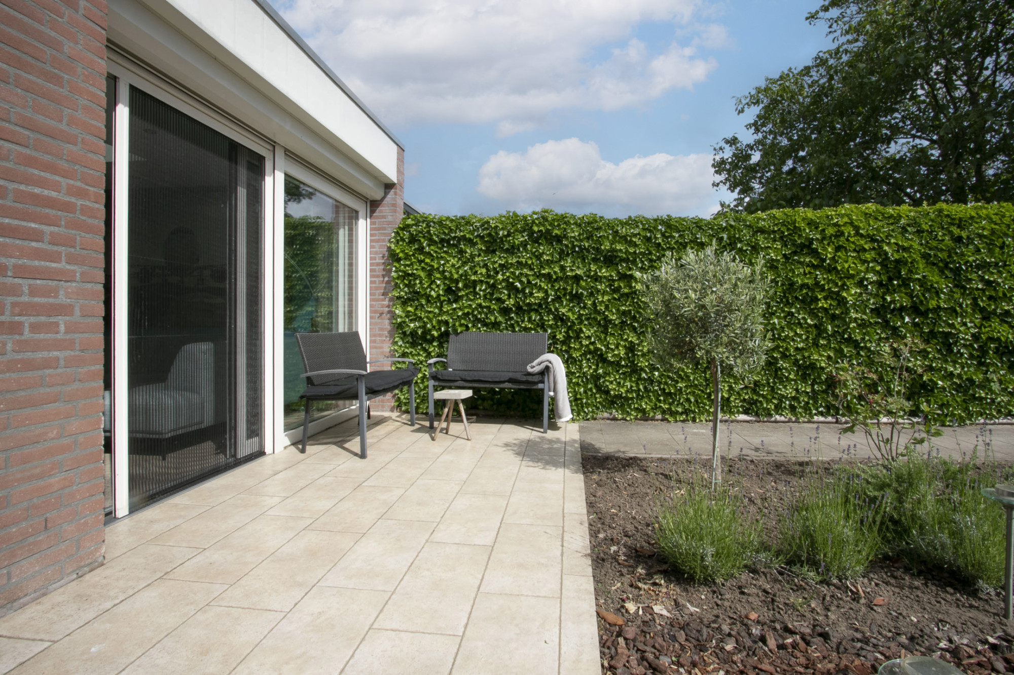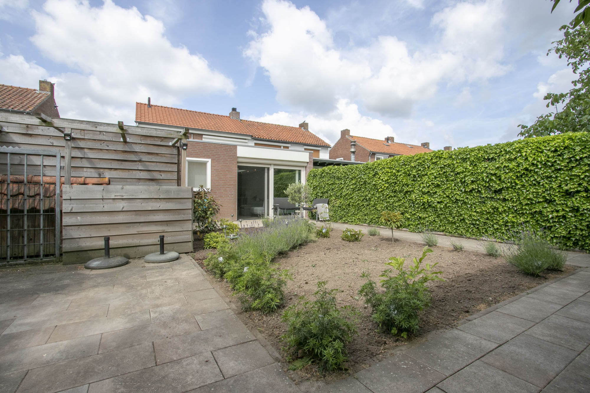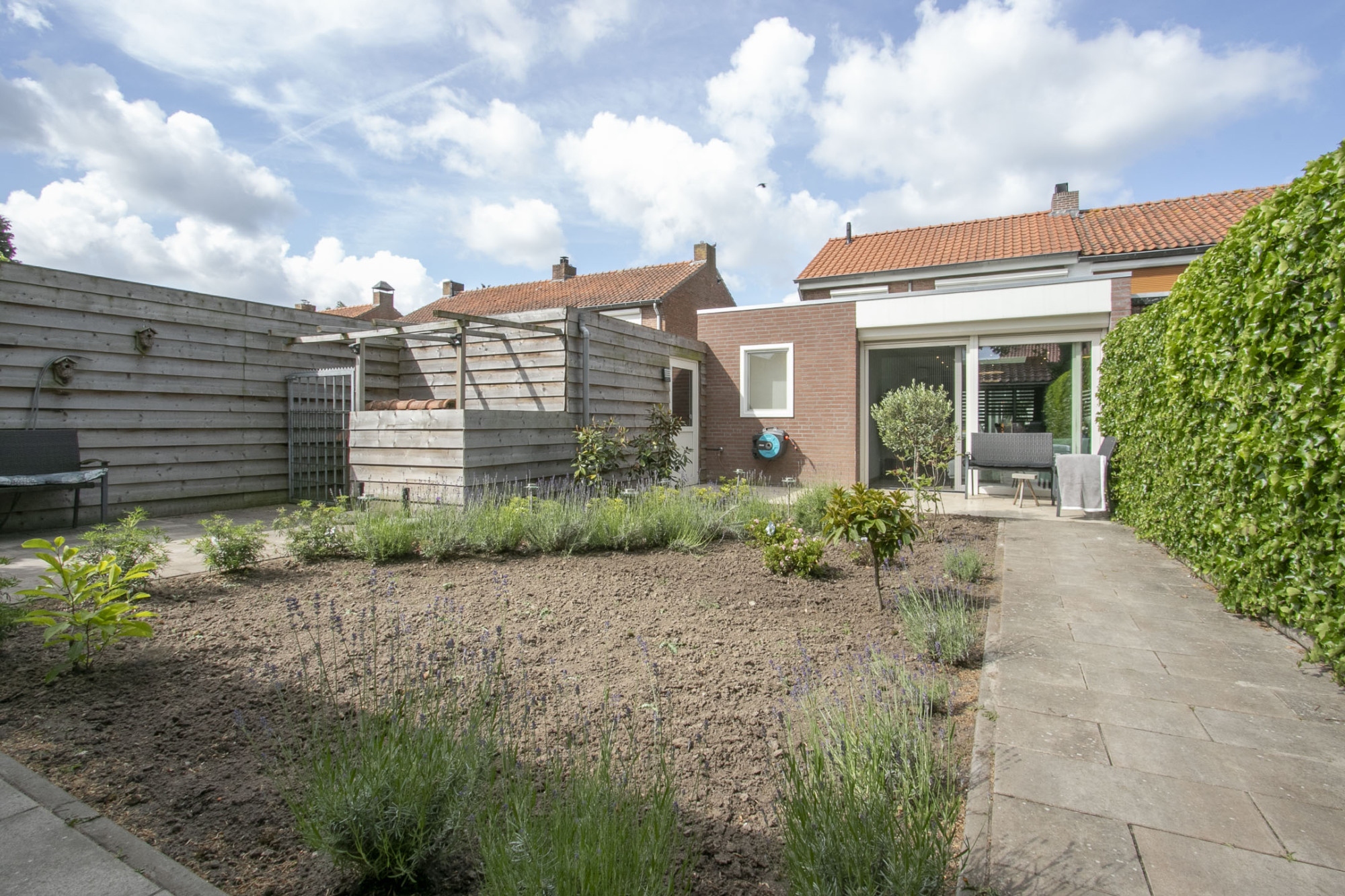 De achtertuin is bereikbaar via de garage of de schuifpui en biedt heerlijke gelegenheid om te ontspannen.