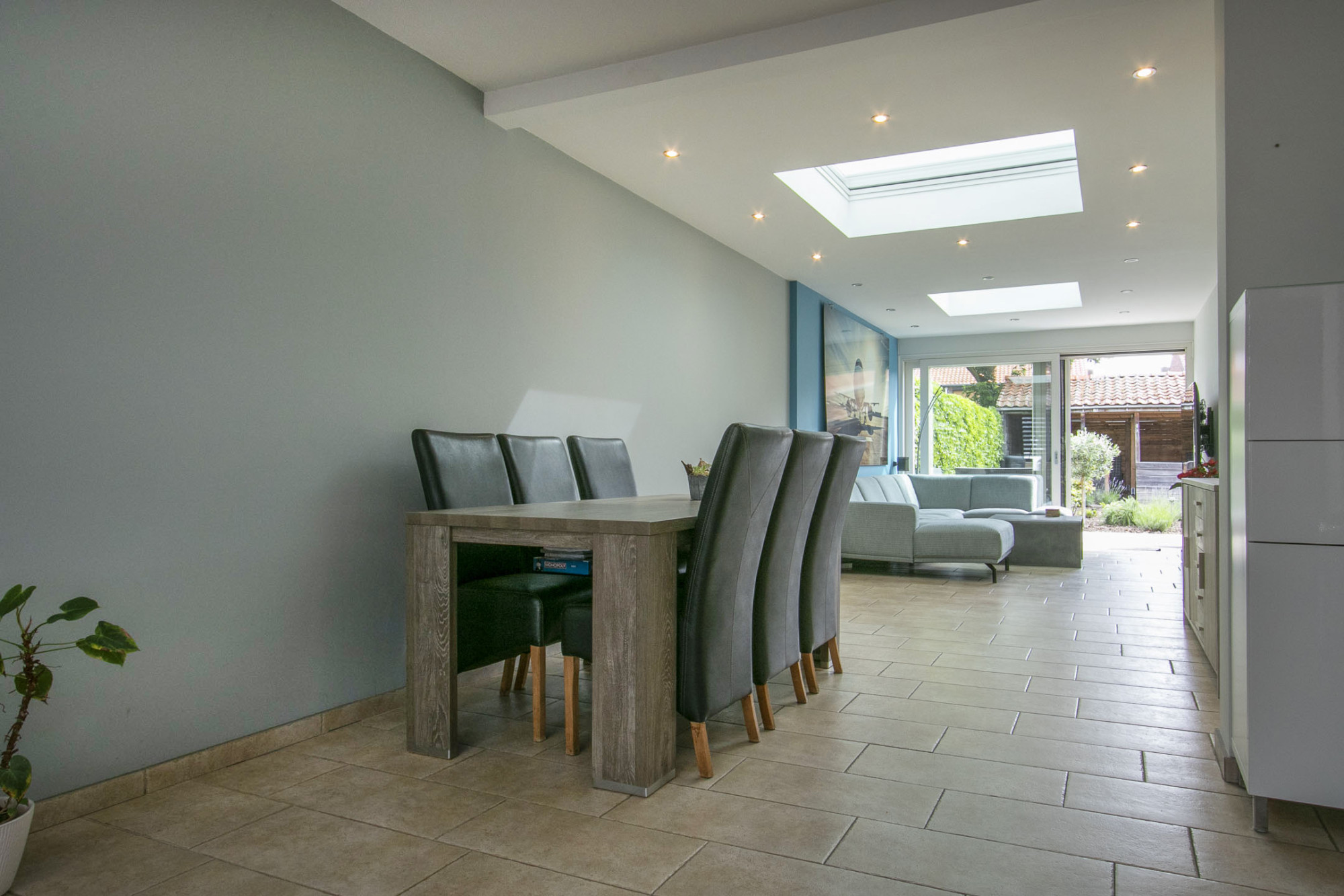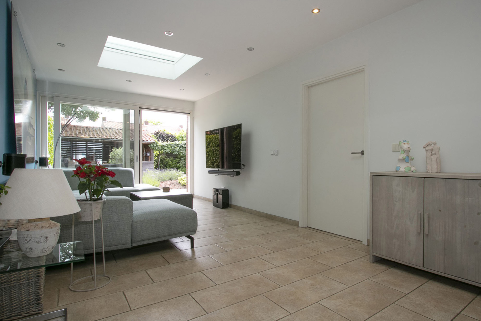 Een viertal lichtkoepels zorgen voor een optimale daglichttoetreding in de aanbouw en zijn voorzien van zonwering en ventilatiemogelijkheden.