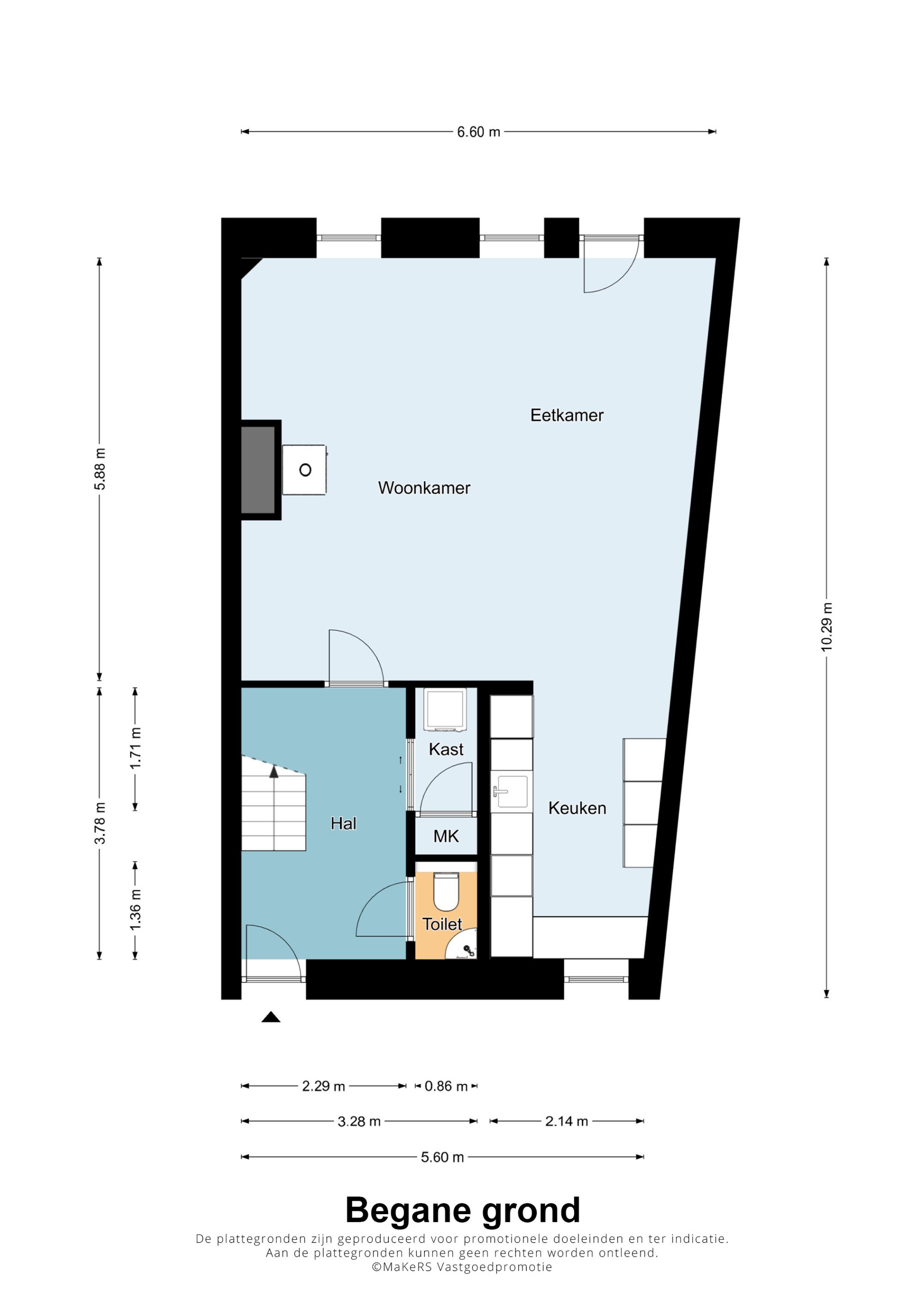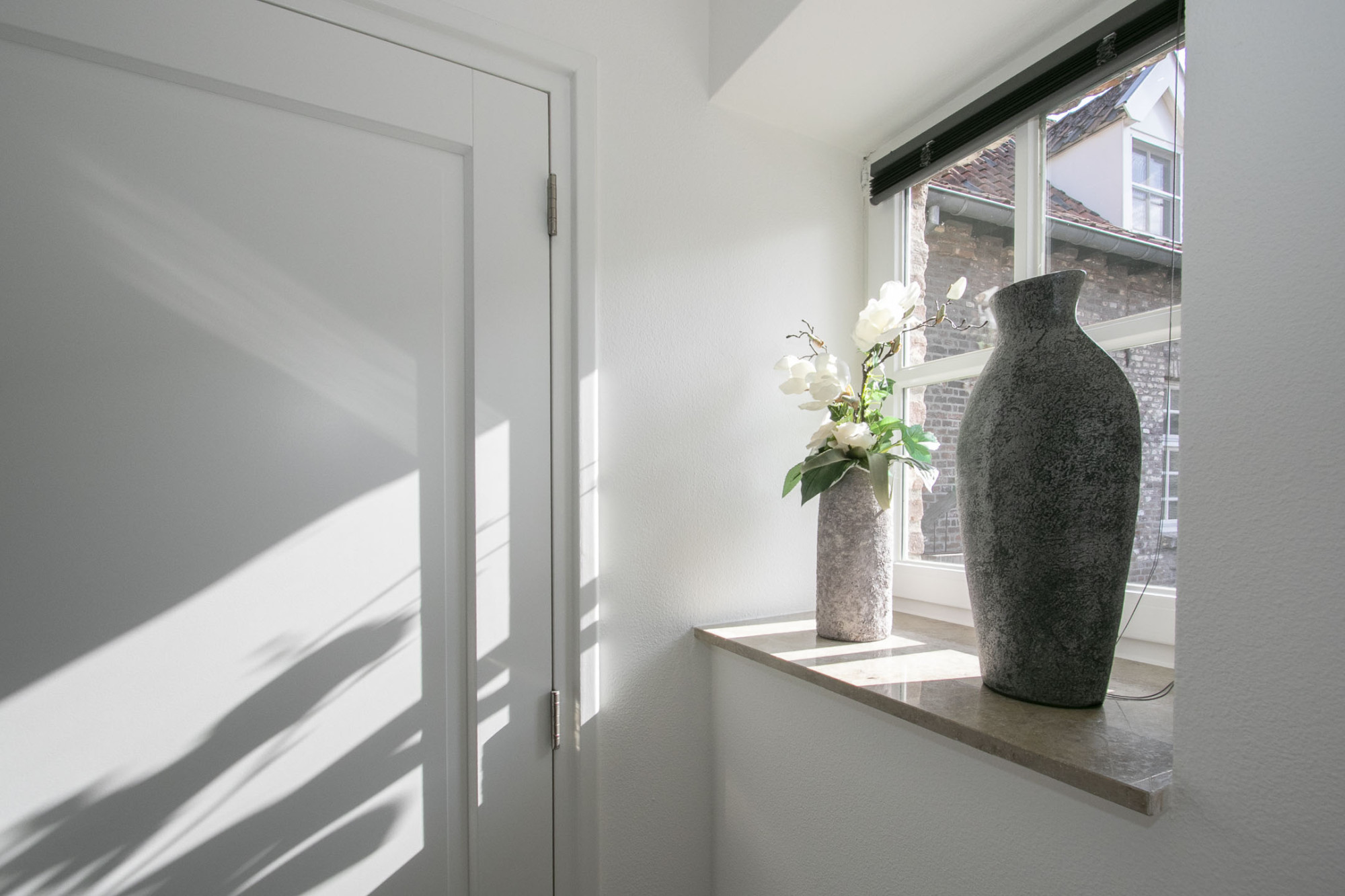 Via de centrale binnenplaats bereik je de voordeur van de woning. Bij binnenkomst stap je in de hal, die is voorzien van een meterkast, een toilet, de trap naar de eerste verdieping en een bergkast met wasmachine-aansluiting en een fraaie schuifdeur.