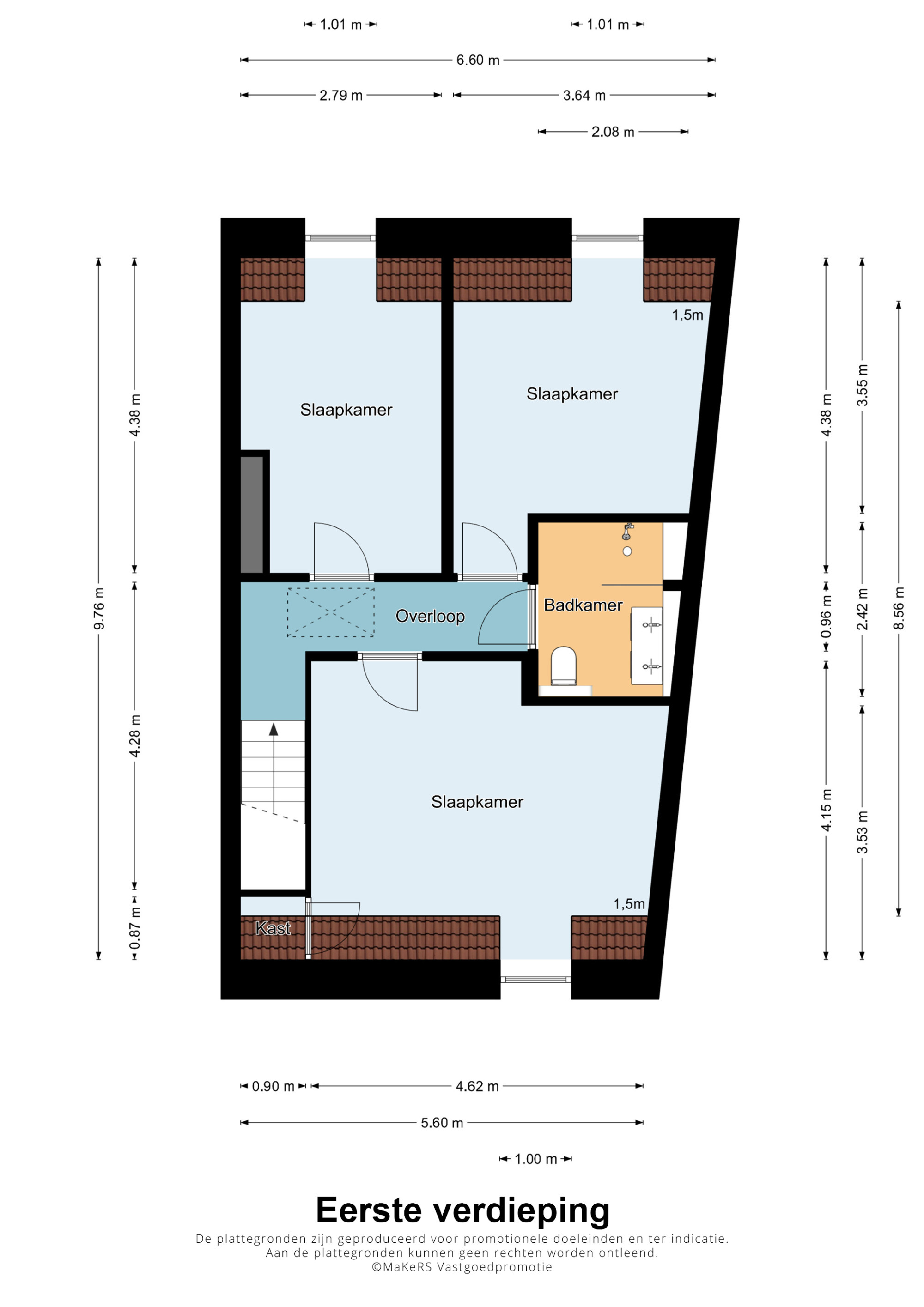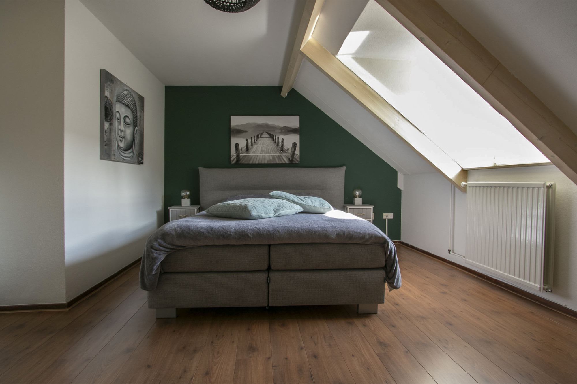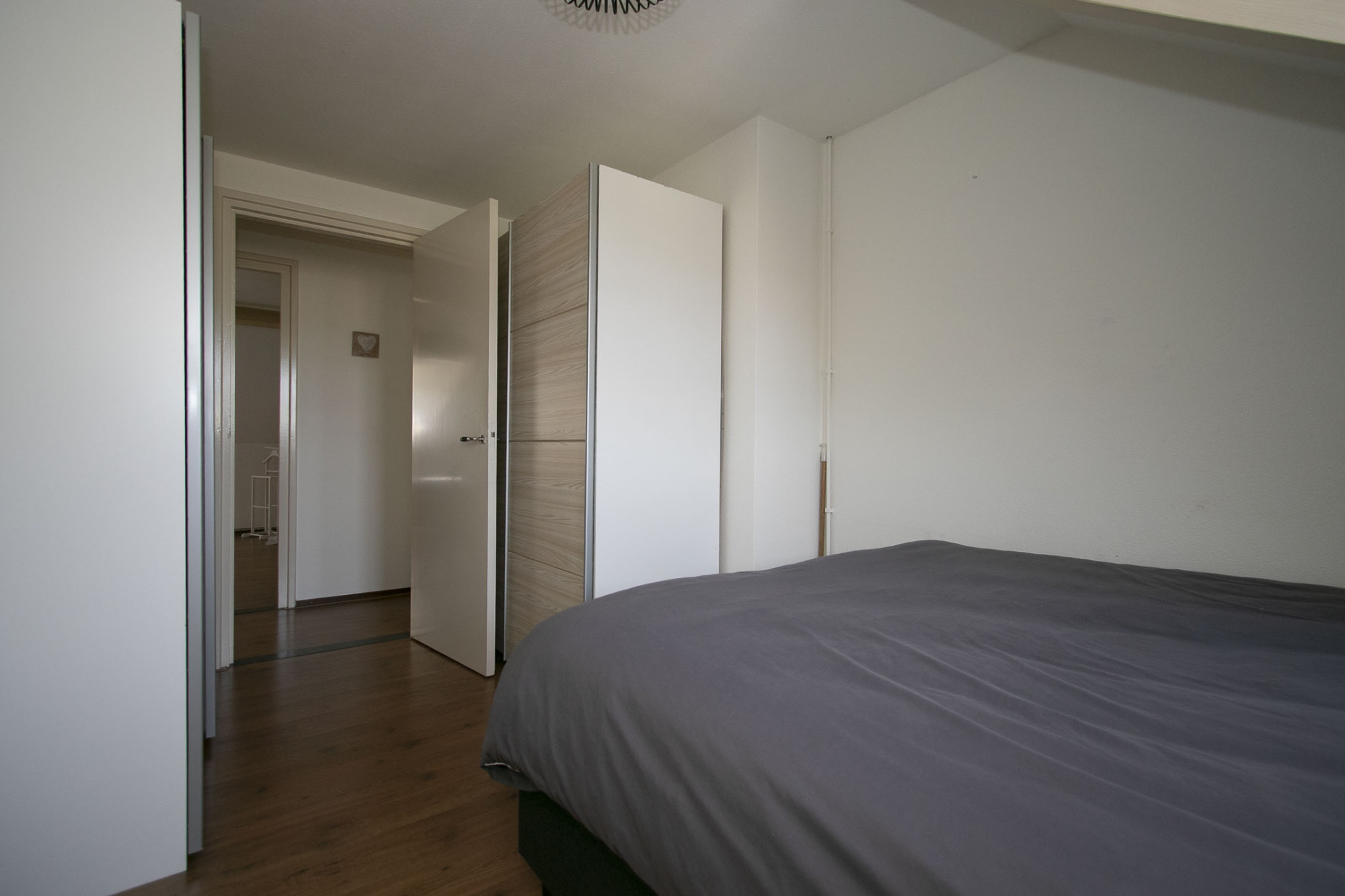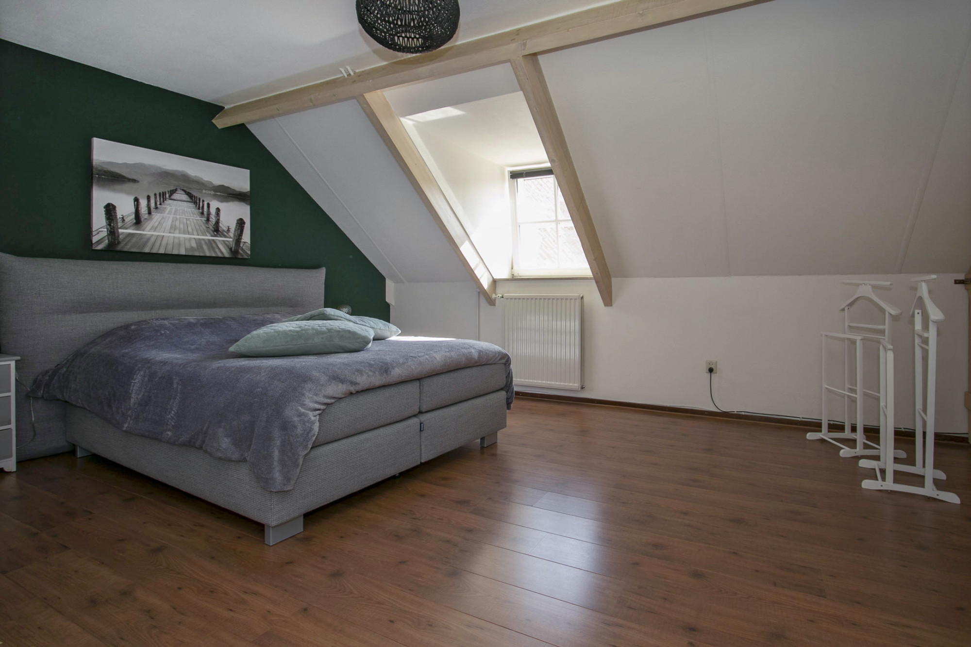 Via de trap in de hal kom je op de eerste verdieping, waar je drie ruime slaapkamers vindt. Alle kamers zijn voorzien van een laminaatvloer, hardhouten kozijnen en dubbel glas. Eén van de slaapkamers beschikt bovendien over een praktische bergkast.
