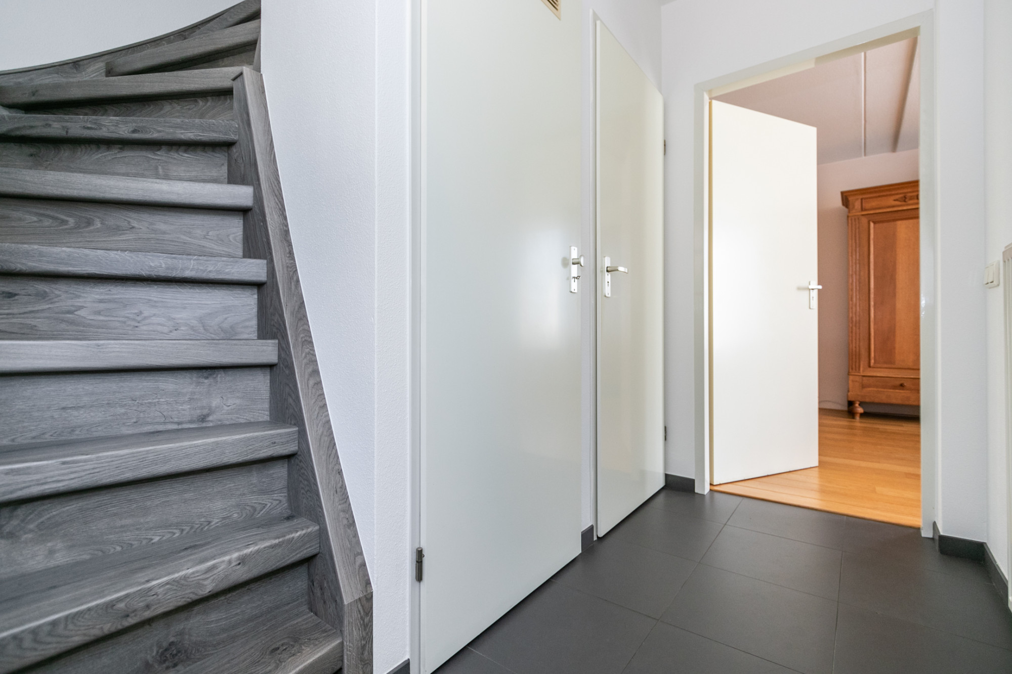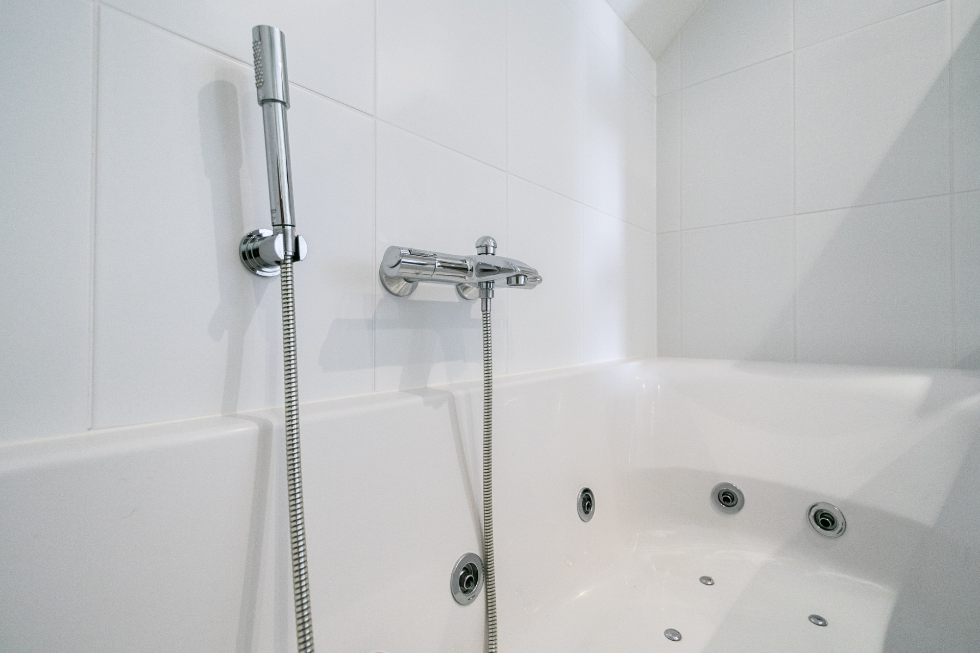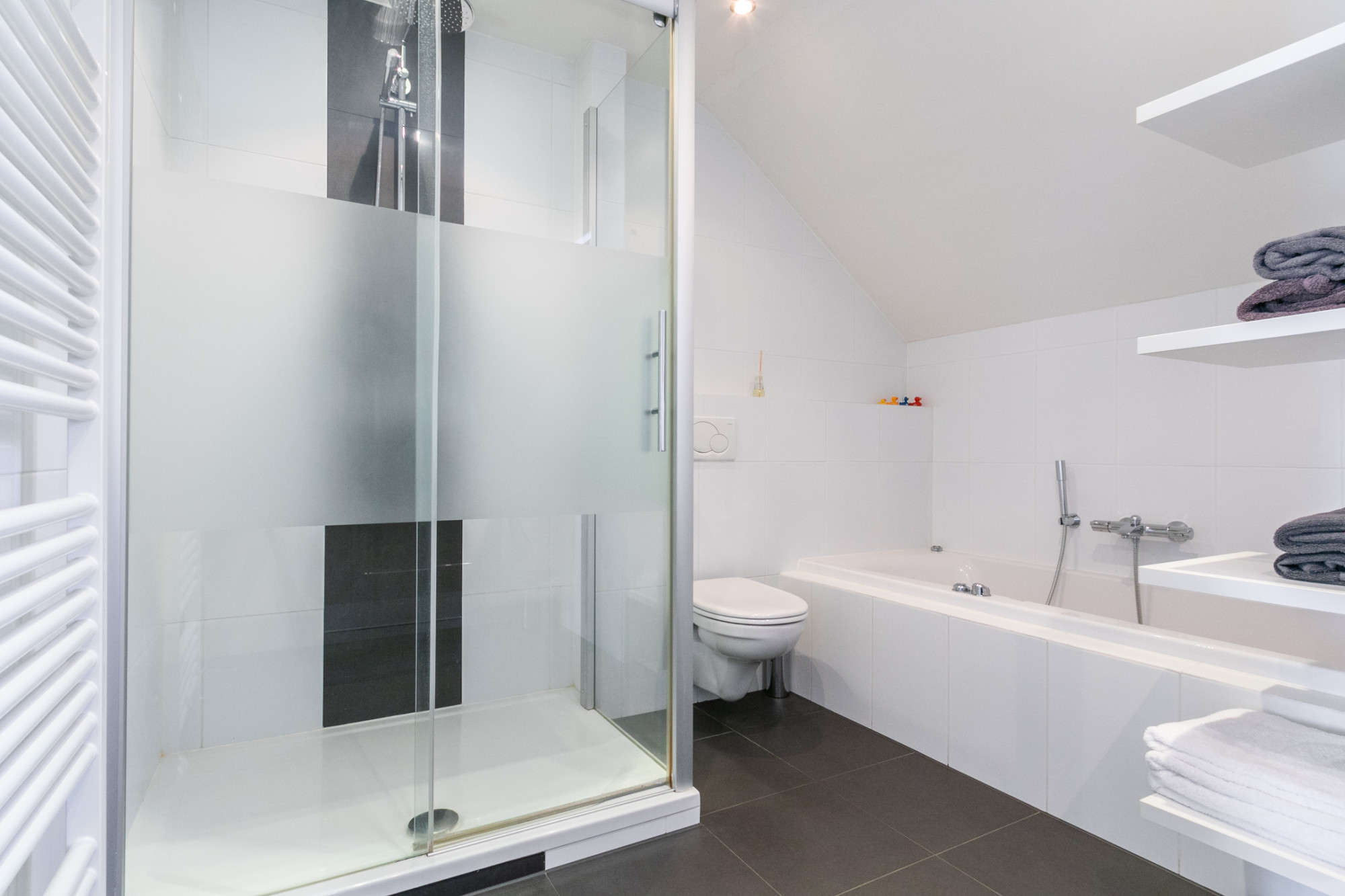 Op de eerste verdieping treft u een ruime overloop met tweede Daikin airco, drie royale slaapkamers, elk voorzien van rolluiken. De luxe badkamer biedt optimaal comfort met ingebouwde spots, een wandcloset, wastafel met hangend meubel, een moderne douche, een whirlpool bubbelbad en mechanische afzuiging.