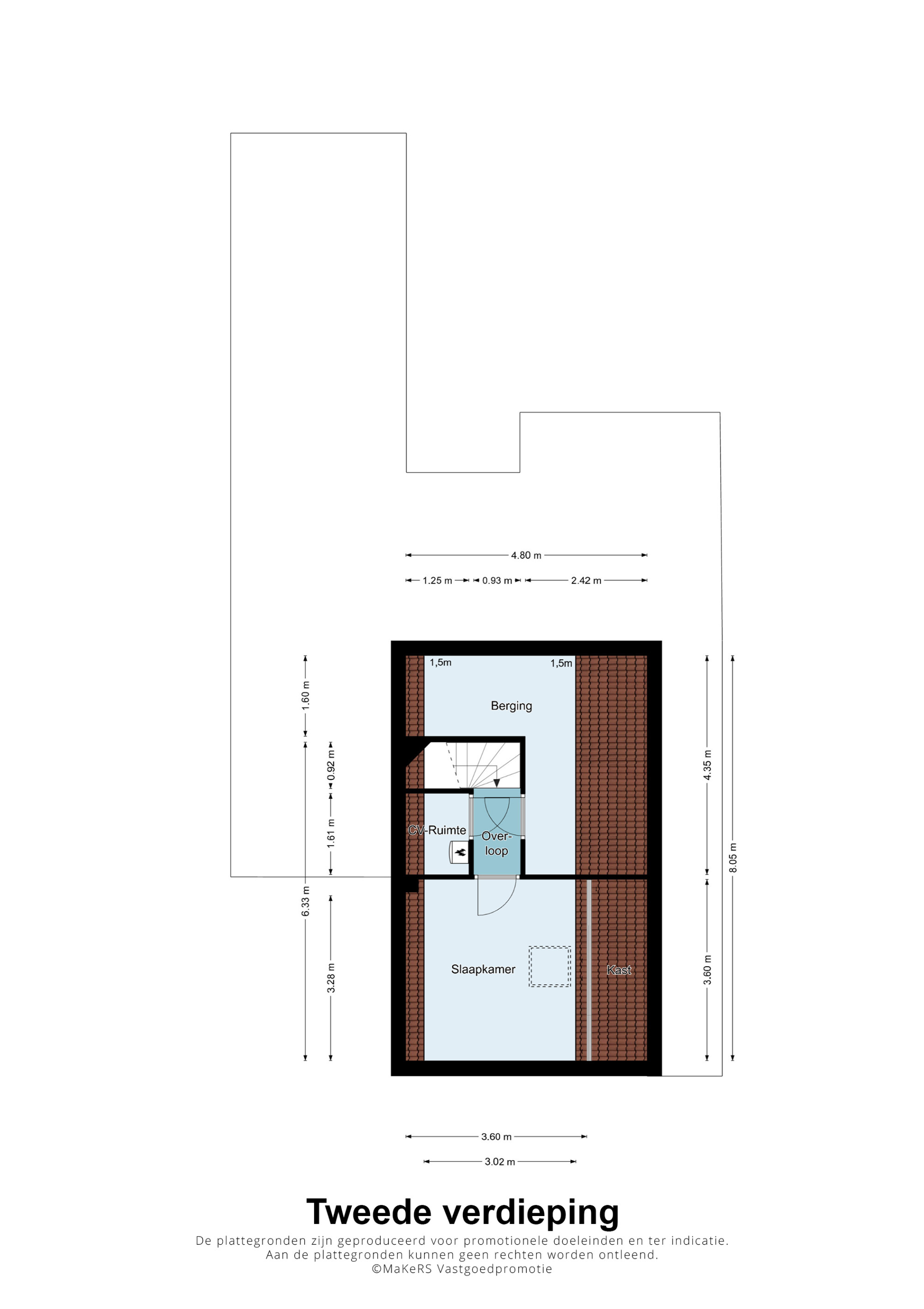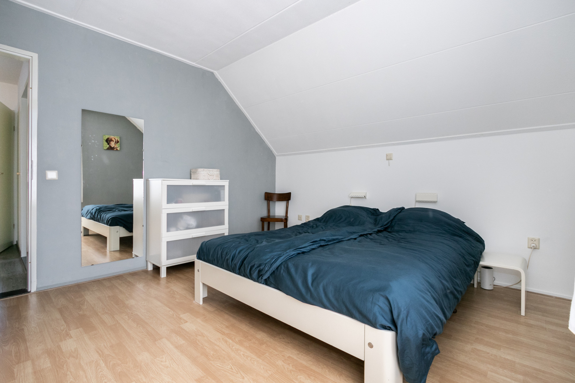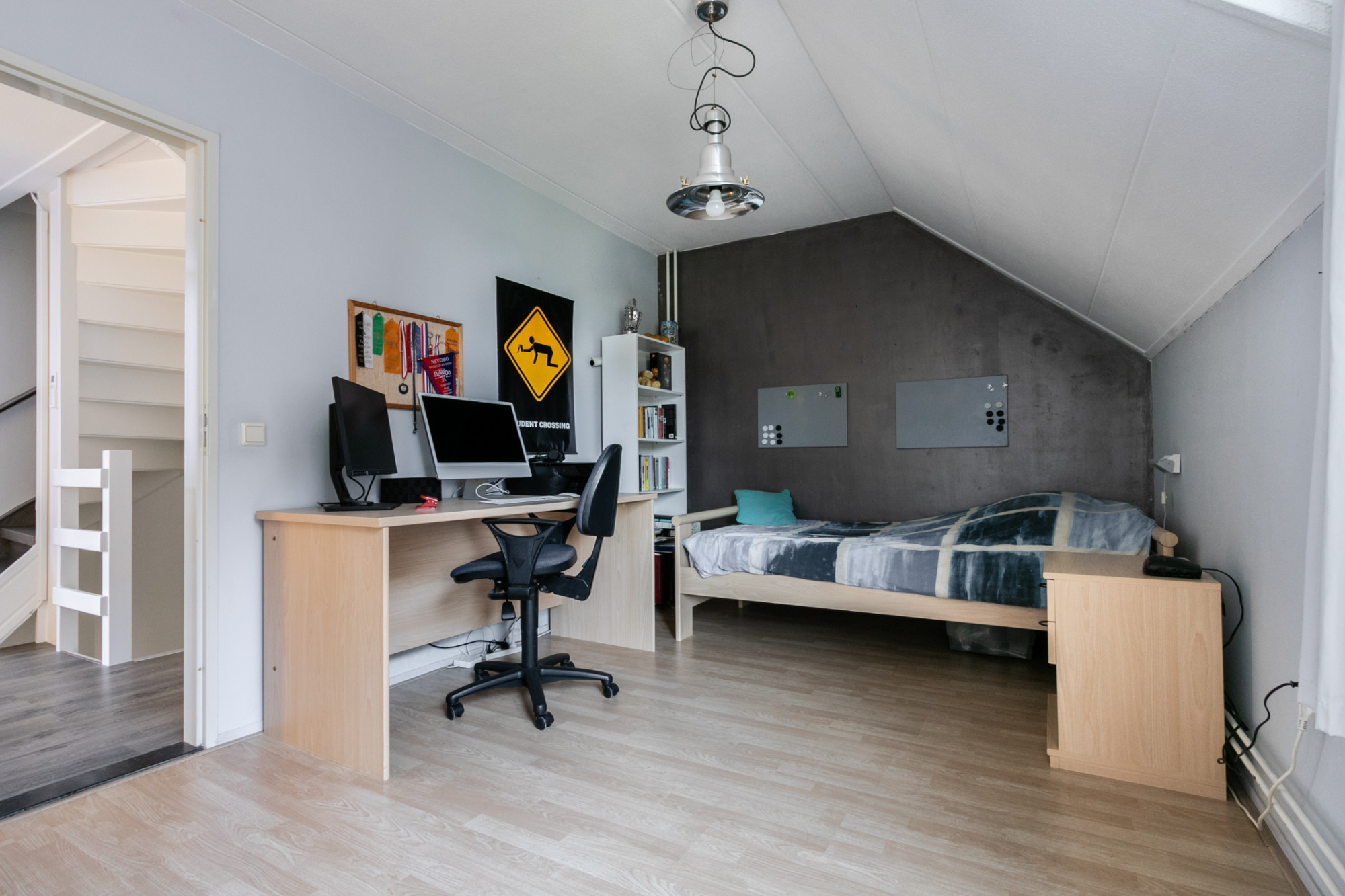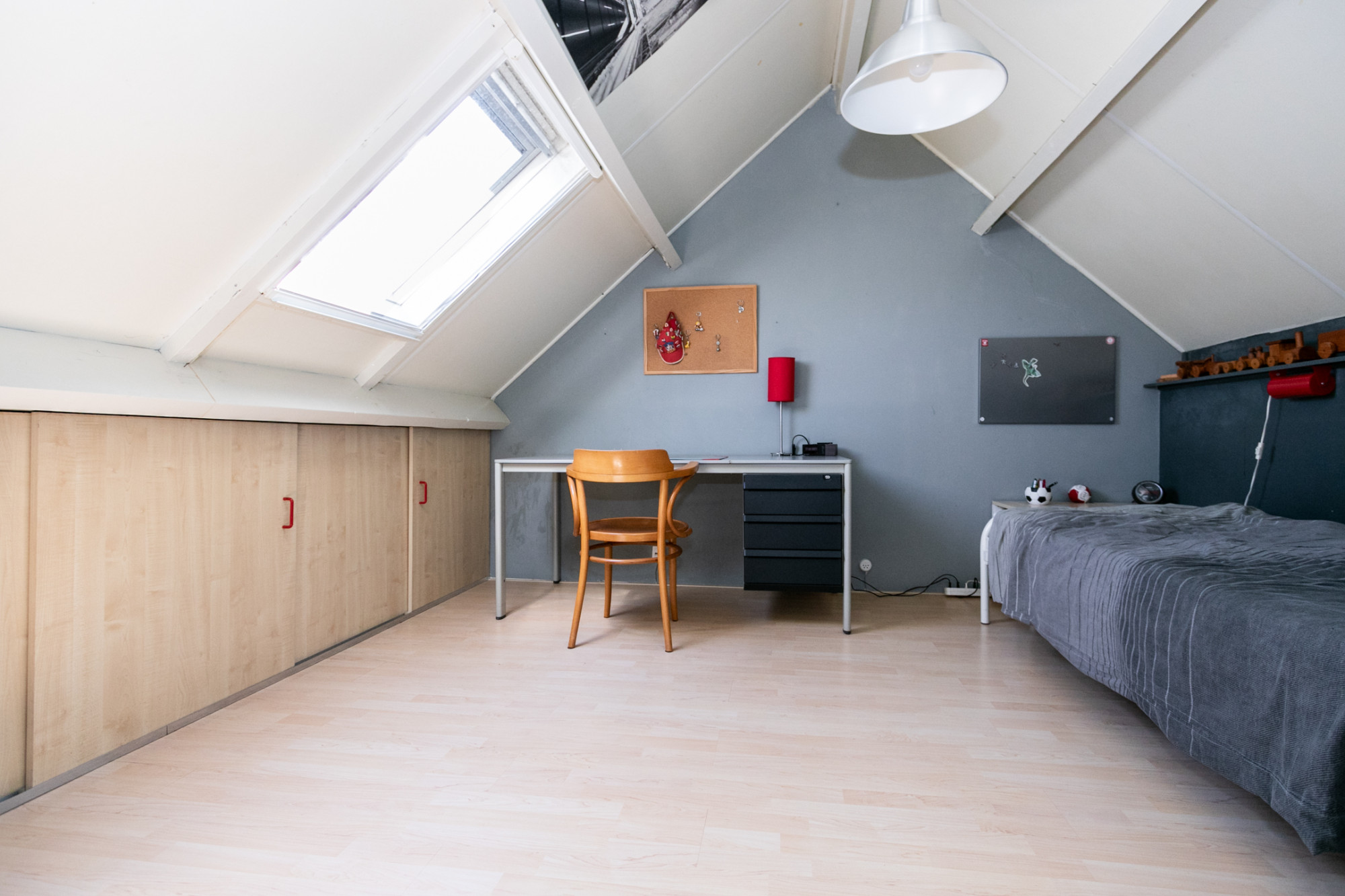 De zolder biedt extra ruimte en kan gebruikt worden als volwaardige slaapkamer met bergruimte onder het schuine dak en dakraam. Hier bevinden zich tevens, in een aparte ruimte, de HR Nefit cv-ketel uit 2016, eigendom van de woning en een aparte bergzolder.