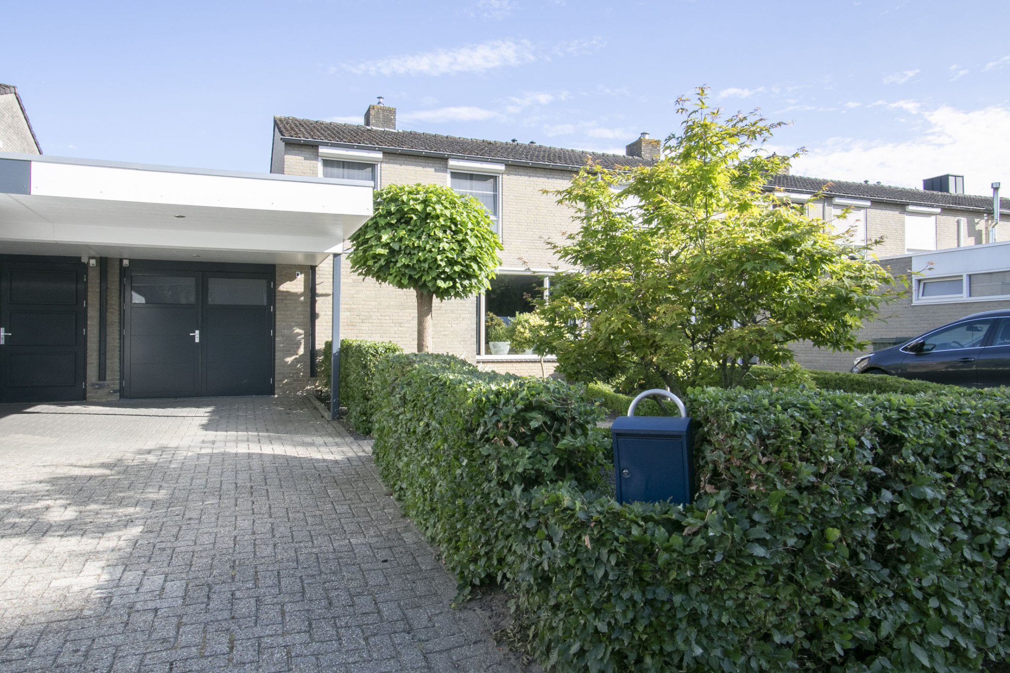 De parkeermogelijkheden bij deze woning zijn uitstekend. Met ruimte voor drie auto's op eigen terrein, hoef je je nooit zorgen te maken over parkeren. Daarnaast is er de aanpandige garage waar ook nog een auto in kan. Deze garage is recentelijk voorzien van twee grote houten openslaande deuren met granieten dorpel.