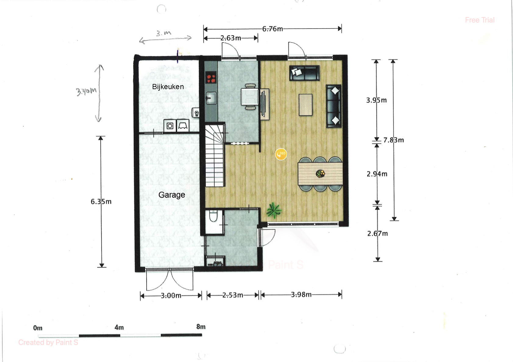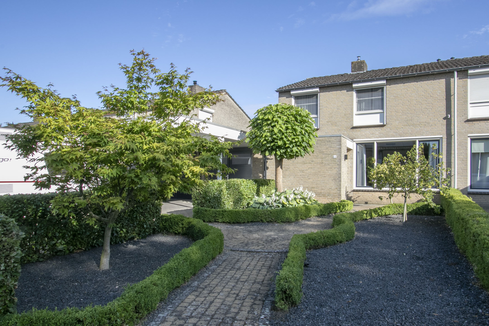 Parkeergelegenheid is er maar liefst voor drie auto's op eigen terrein en nog in de aanpandige garage.
