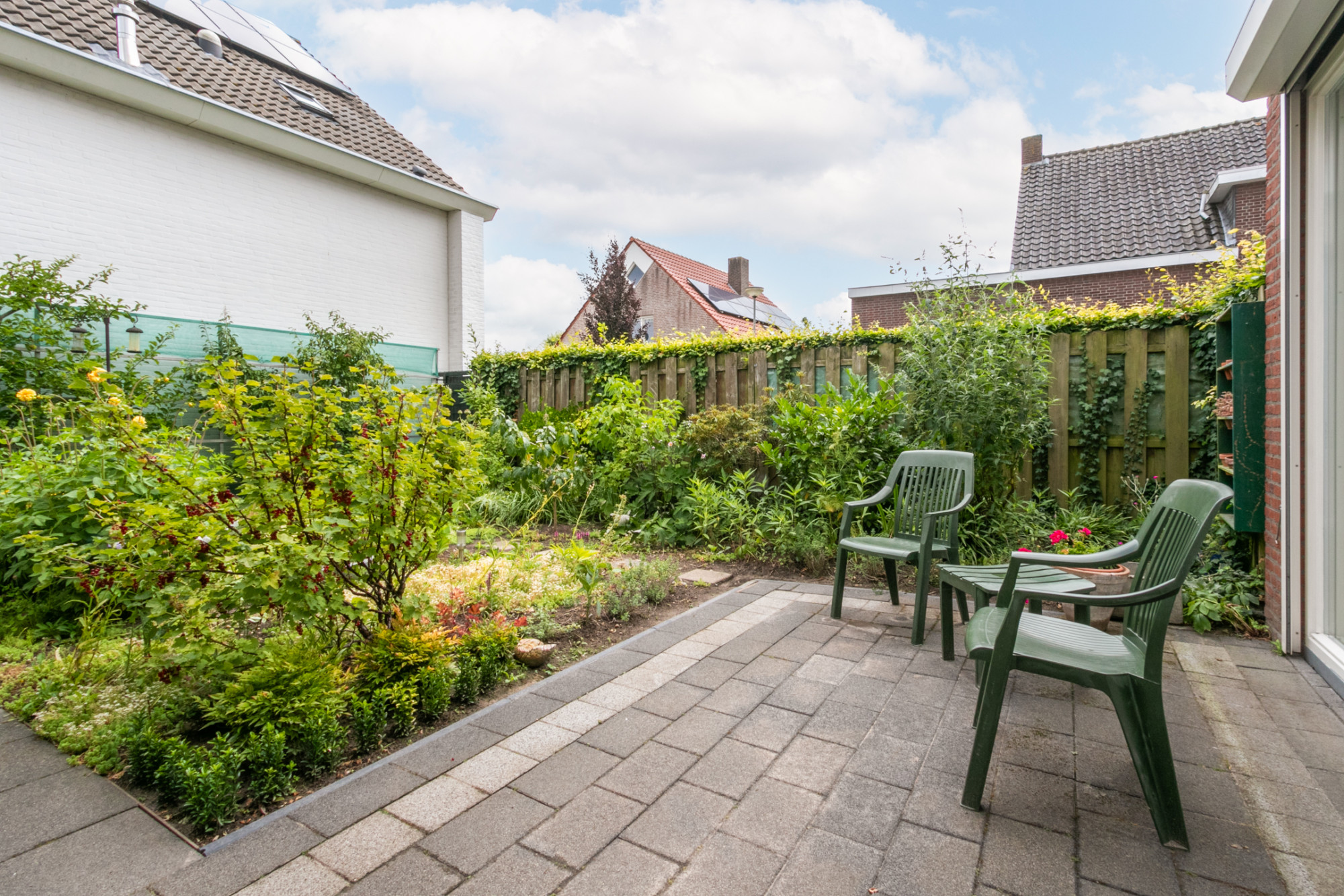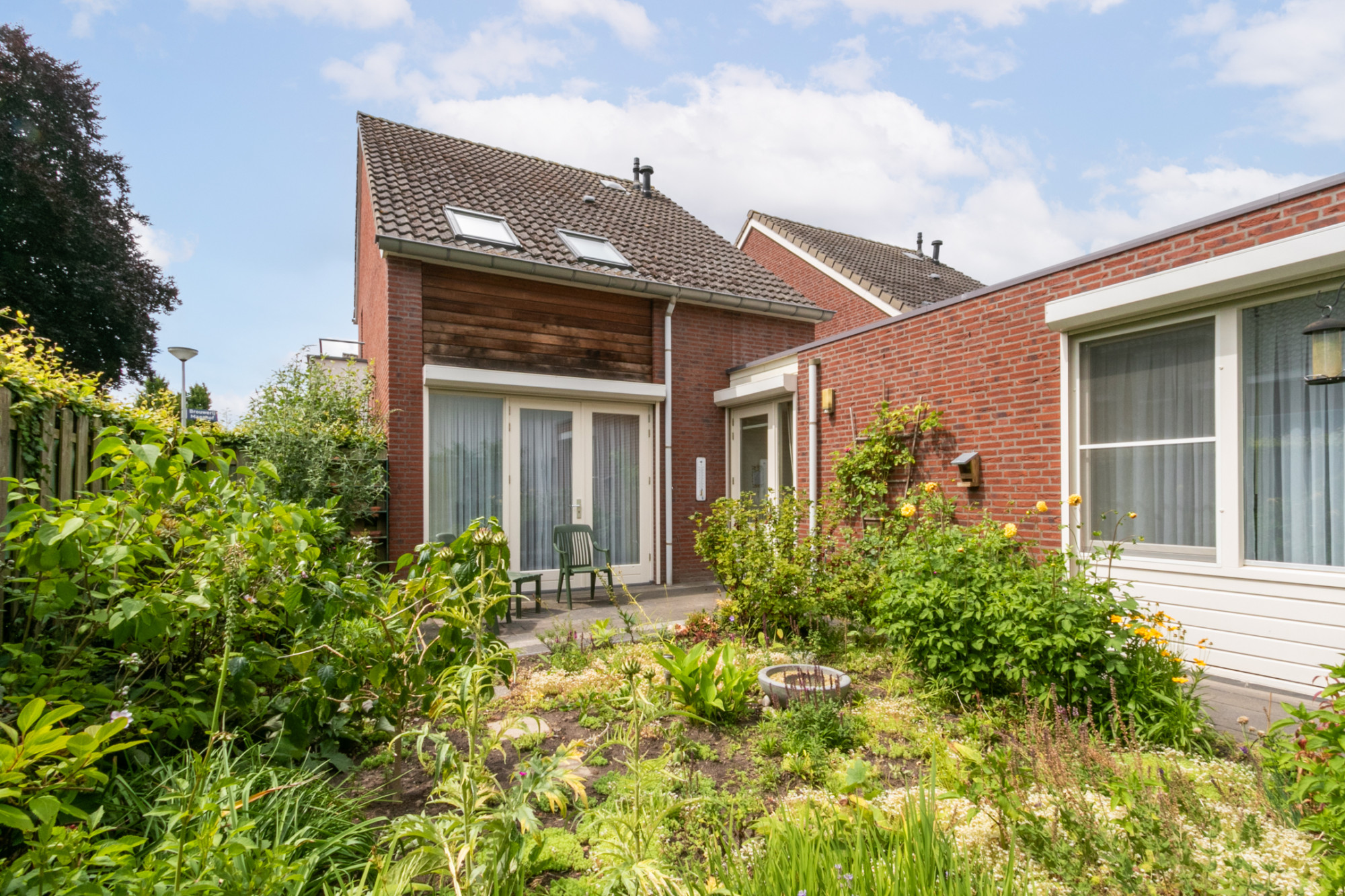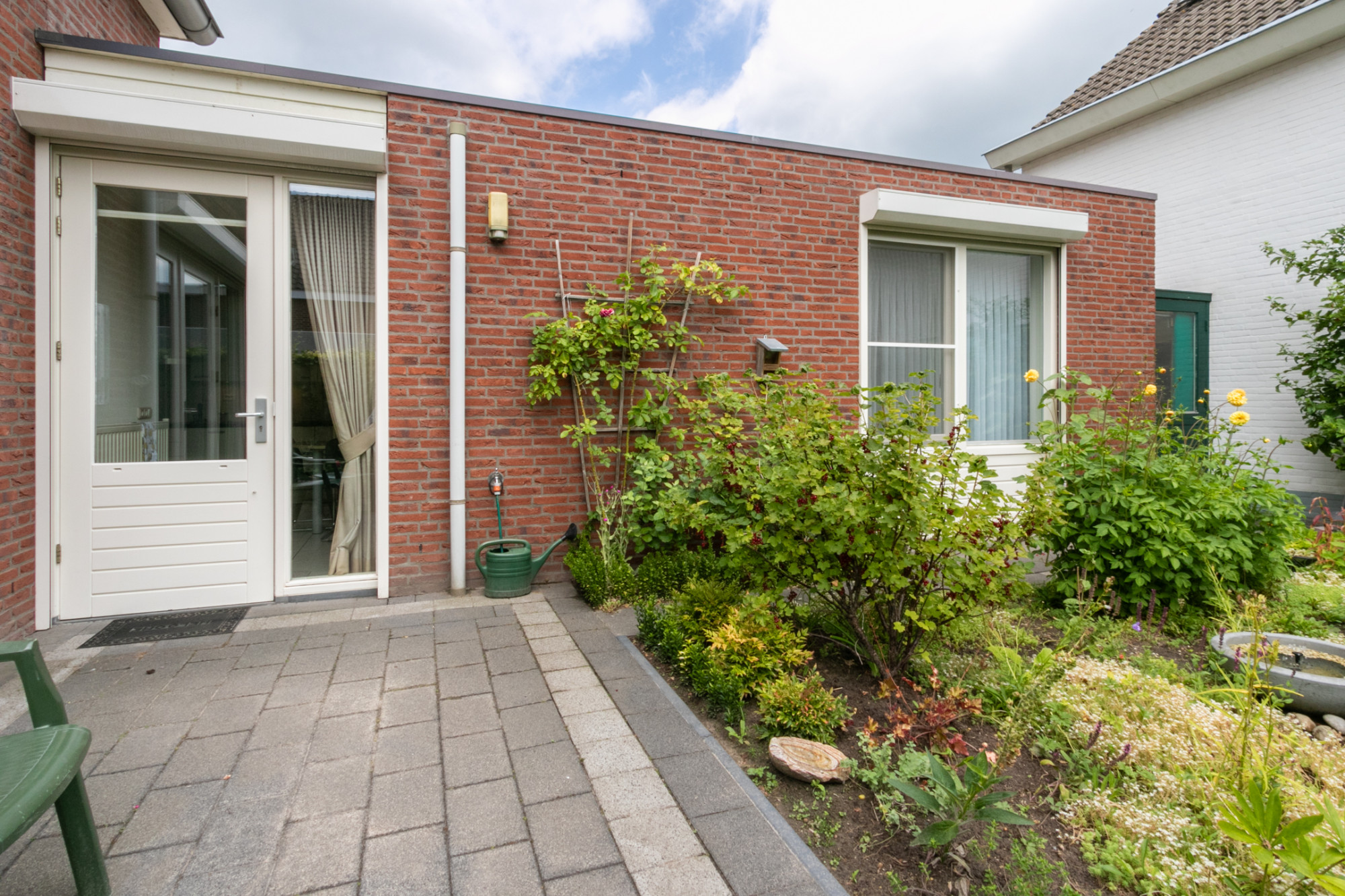 Buiten geniet je van een verzorgde voor-, zij- en achtertuin, waar je op elk moment van de dag in alle rust kunt ontspannen. Daarnaast beschikt de woning over een aangebouwde stenen garage met elektra en een eigen oprit met ruimte voor een tweede auto.