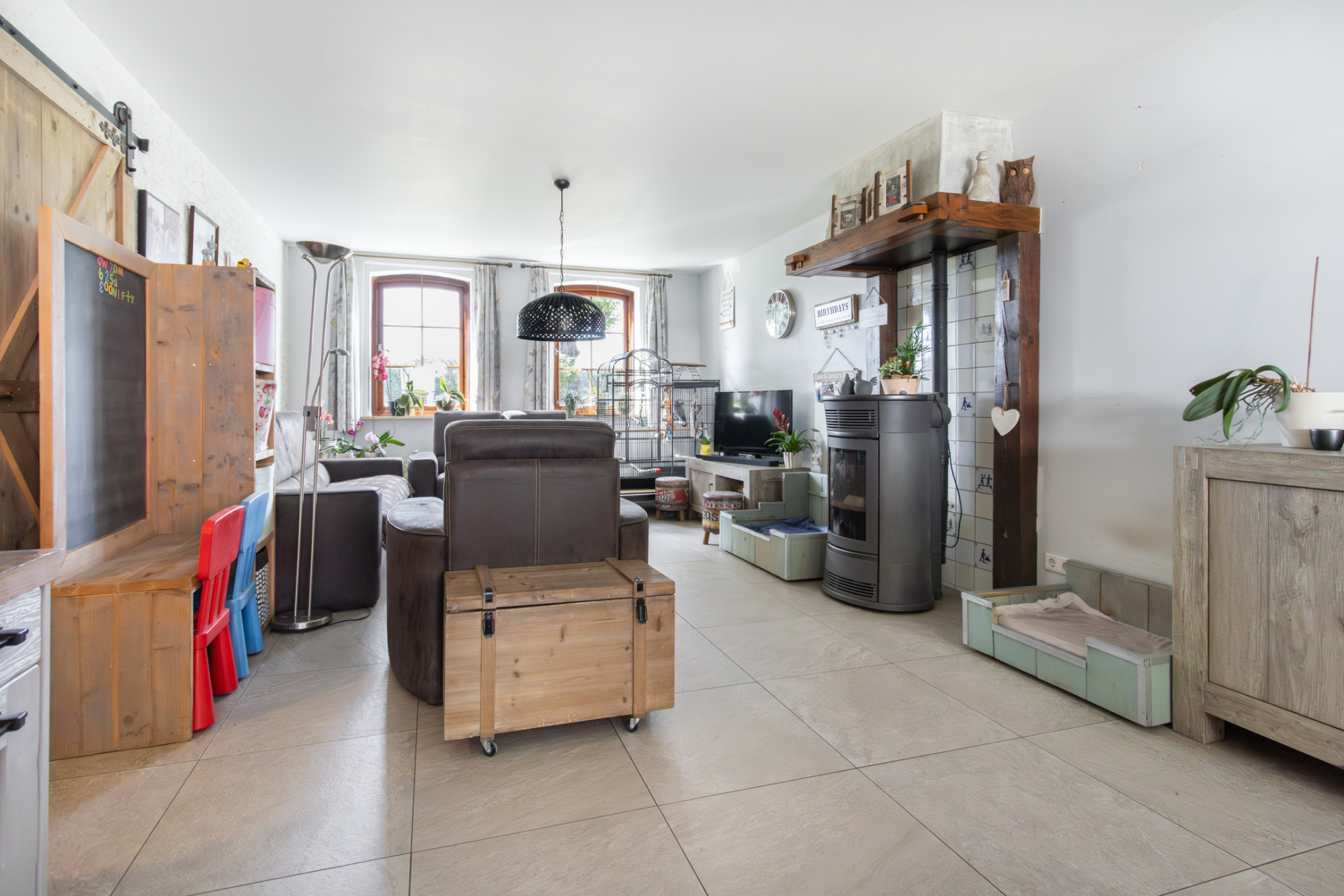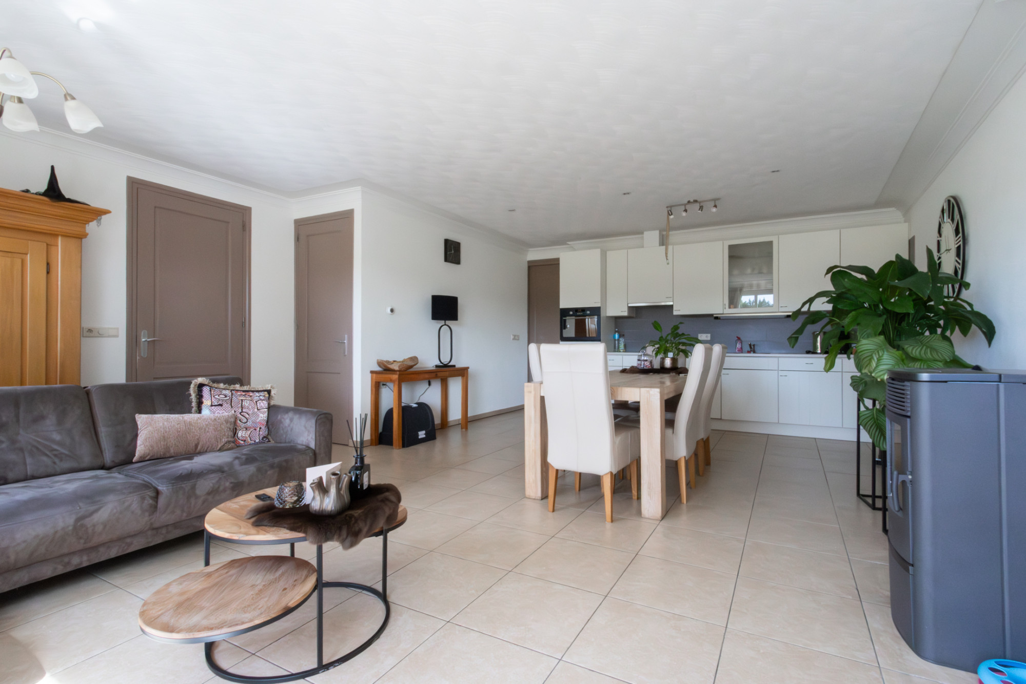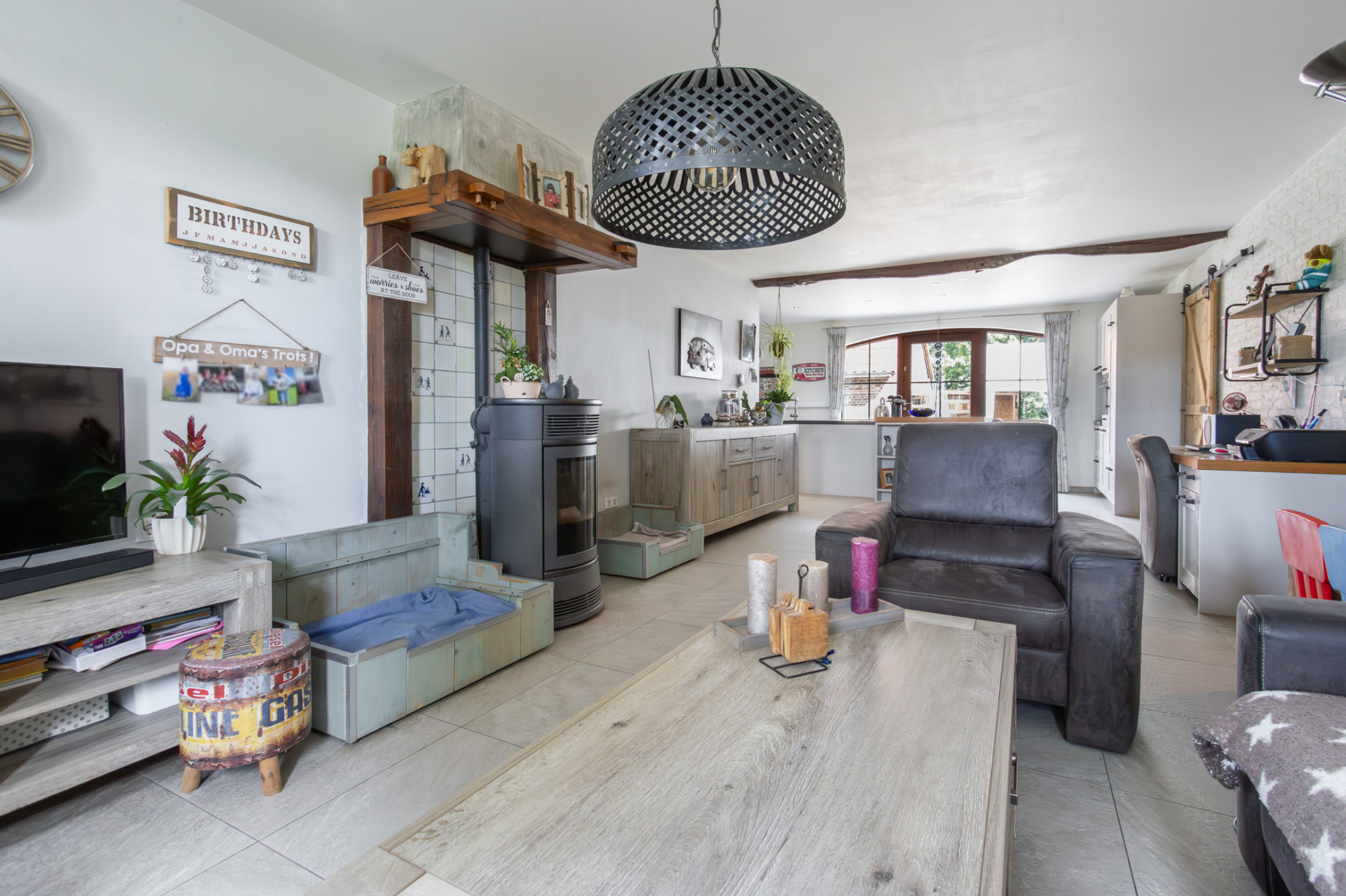 De woonkamer is ruim van opzet en is beschikt over een pellet kachel.