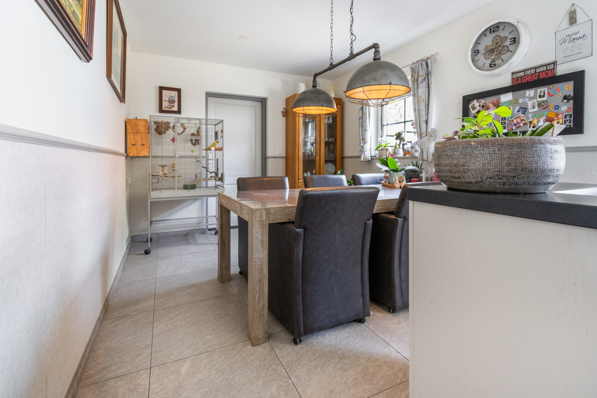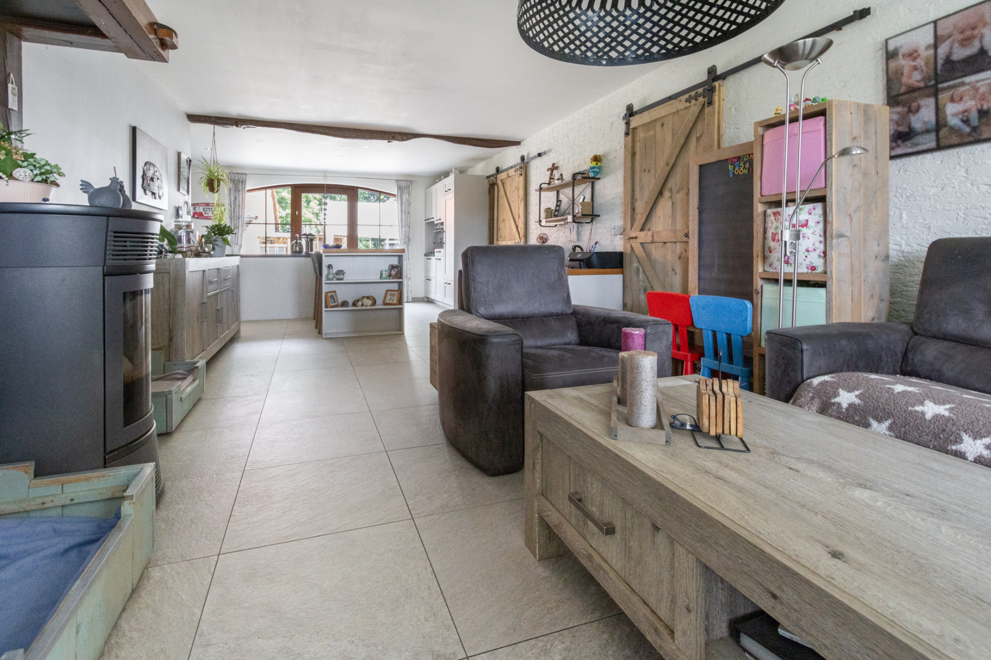 De woonkamer en keuken bevinden zich in een open ruimte. Er is voldoende ruimte voor een leuke zit en eethoek. De ruimte wordt extra verwarmd met een pellet kachel.