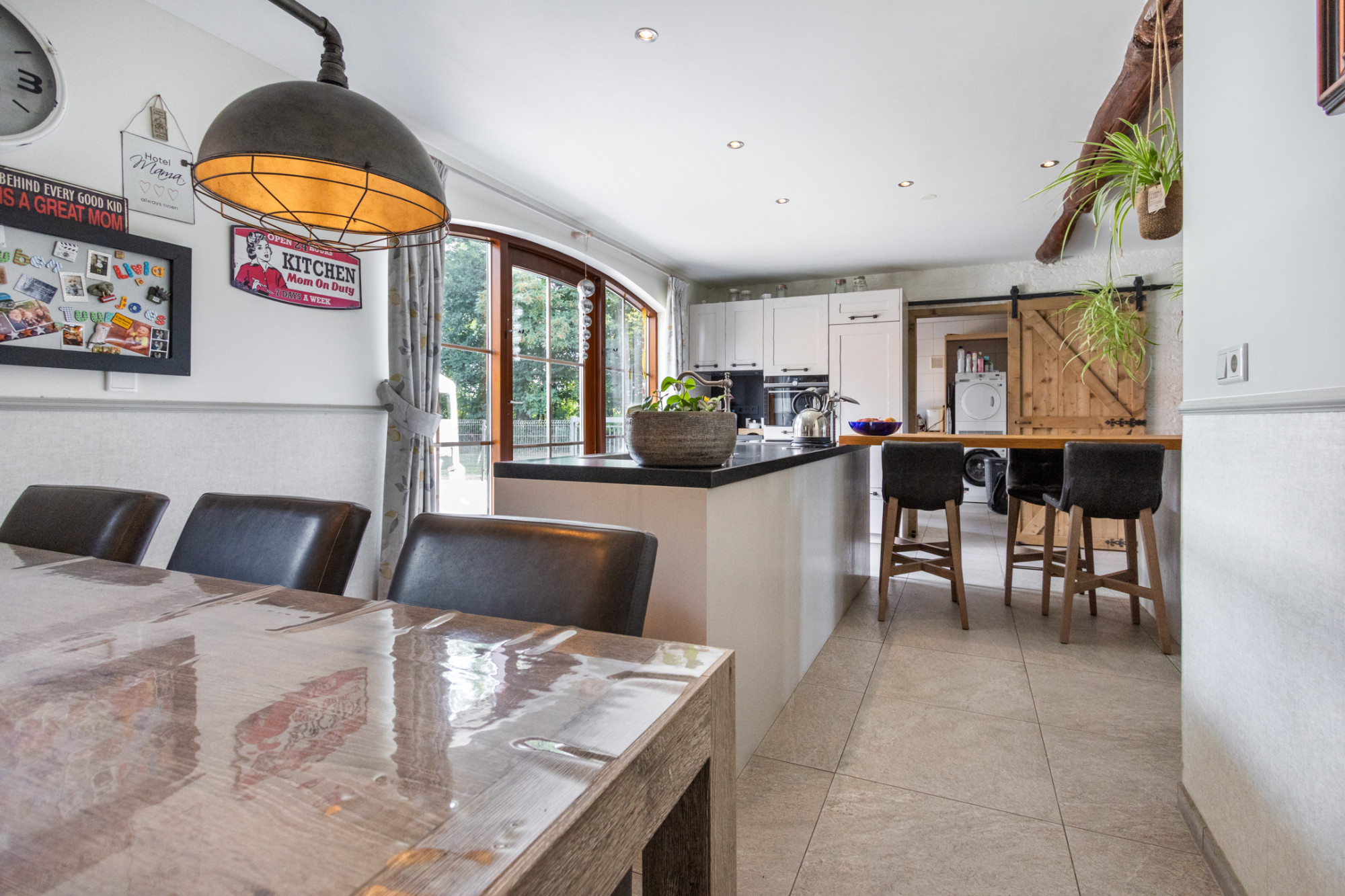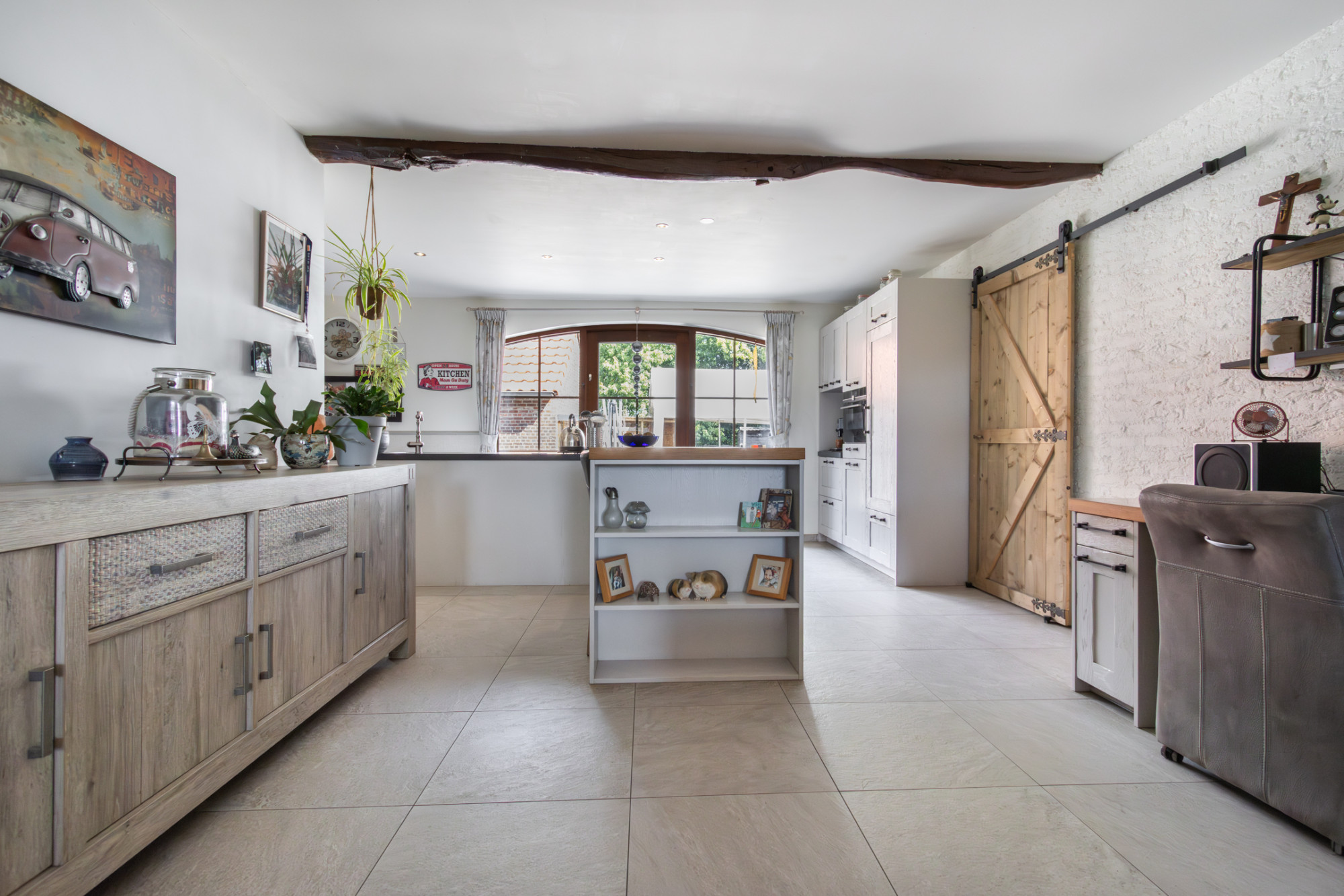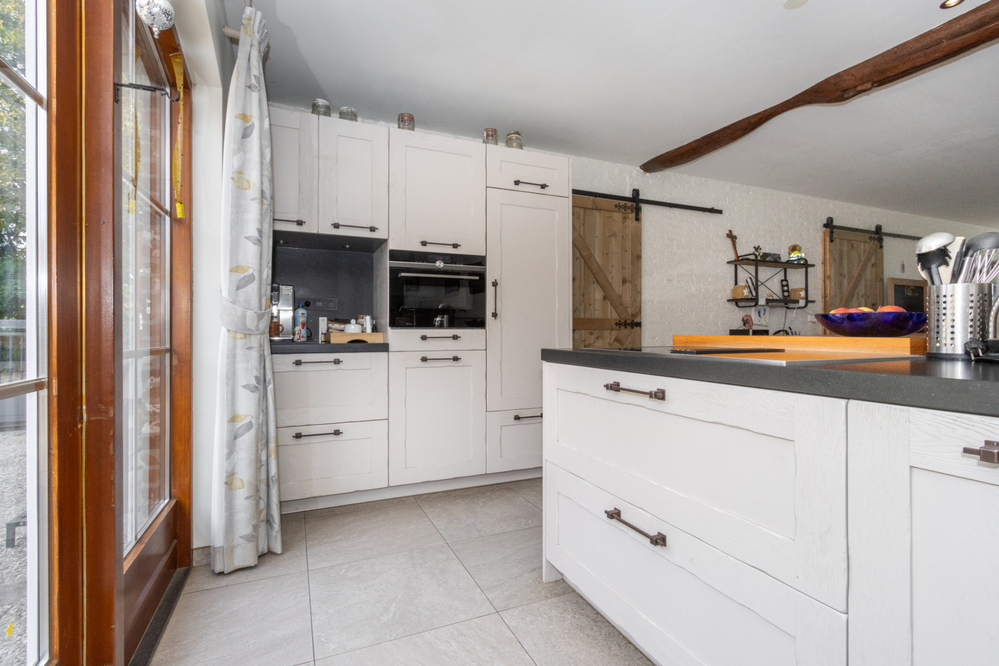 De keuken is in 2018 geplaatst en voorzien van een speelse opstelling met granieten werkblad. Er is gekozen voor diverse luxe inbouwapparatuur met o.a. koelkast, vaatwasser, inductiekookplaat met geïntegreerde afzuiging en een combi-oven.